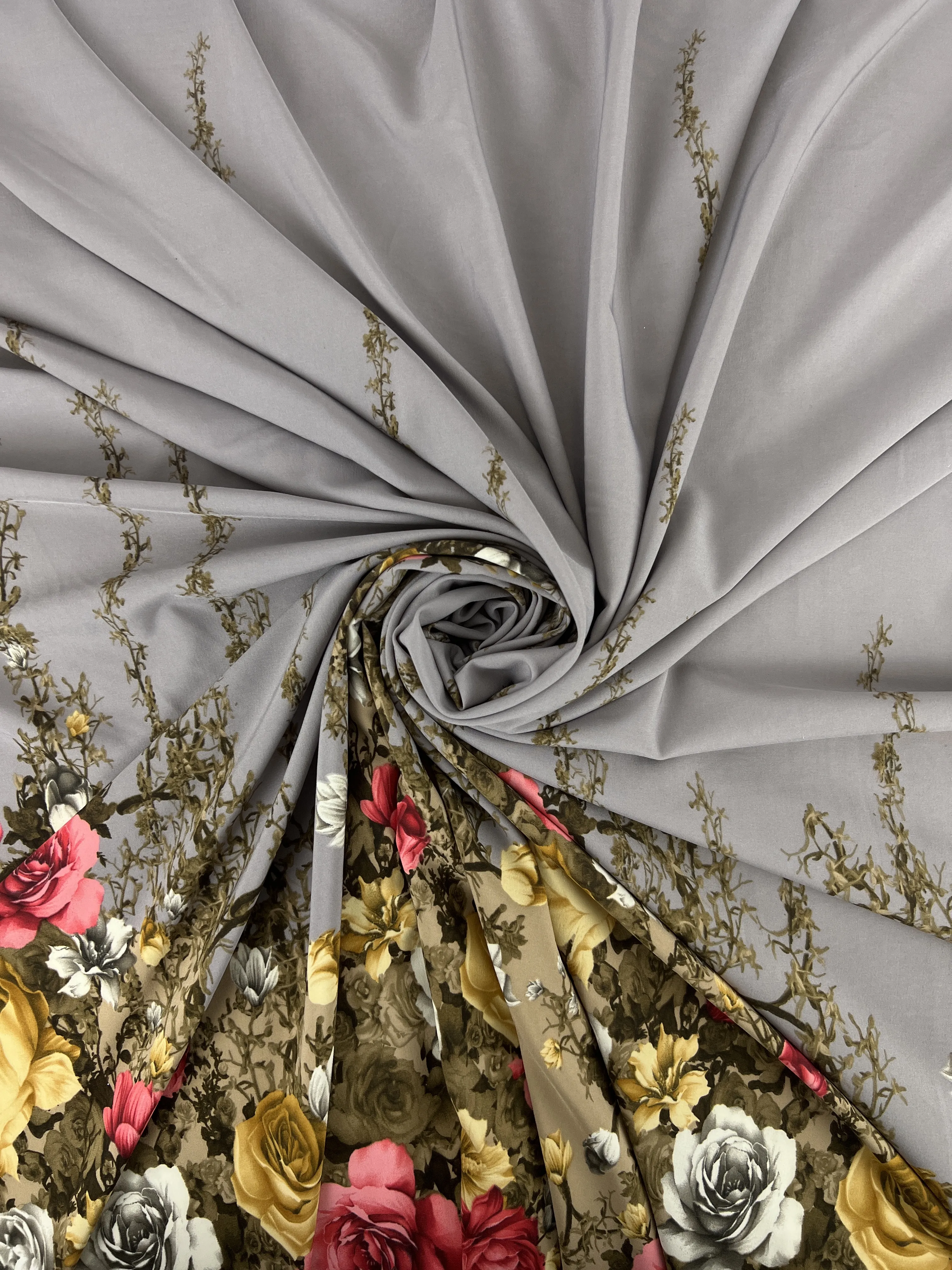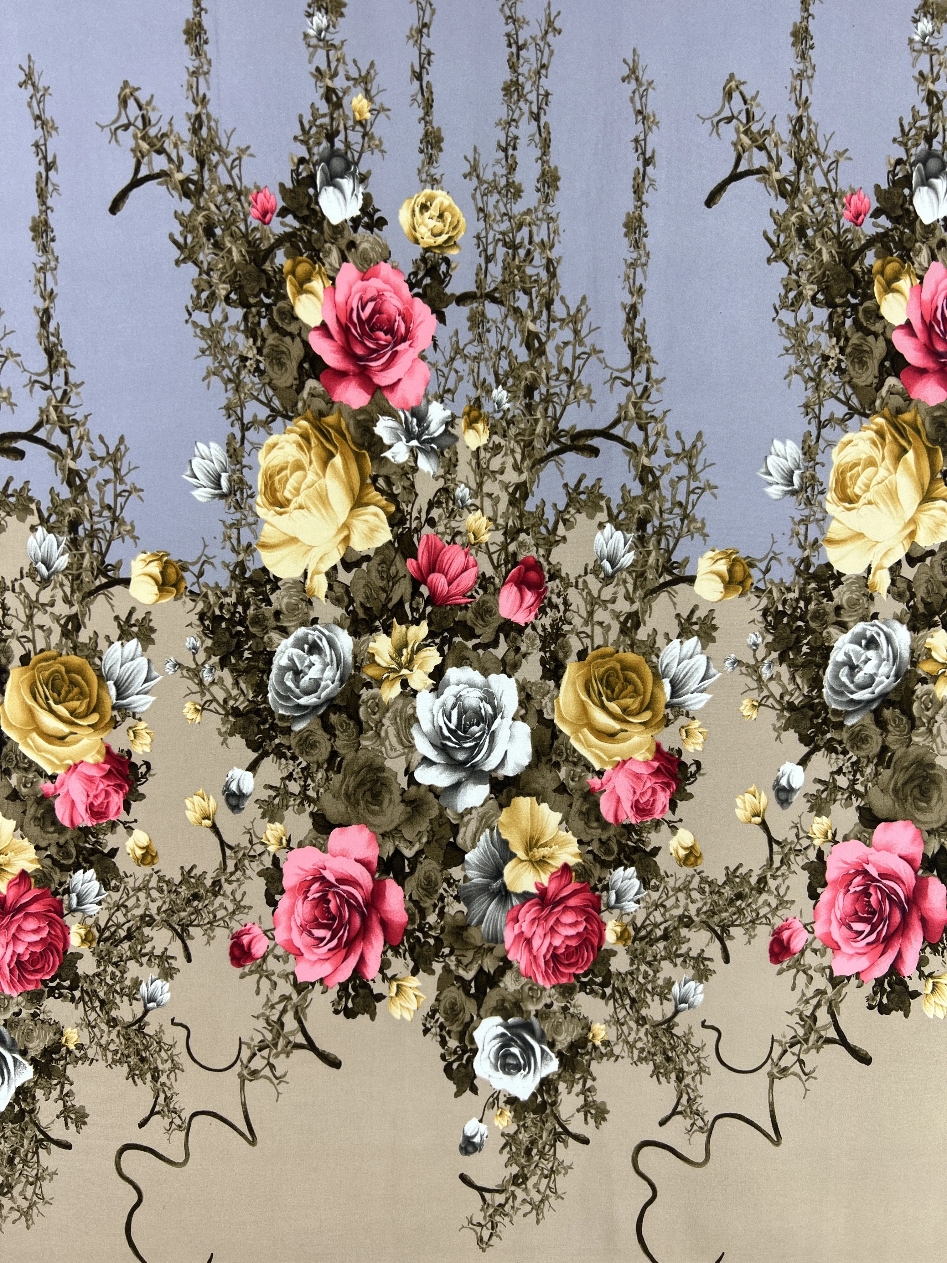 Ткань вискоза Эскада купон №1 Цветы цвет фона бодовый