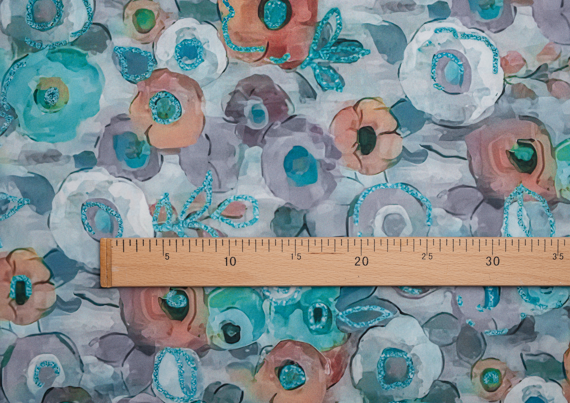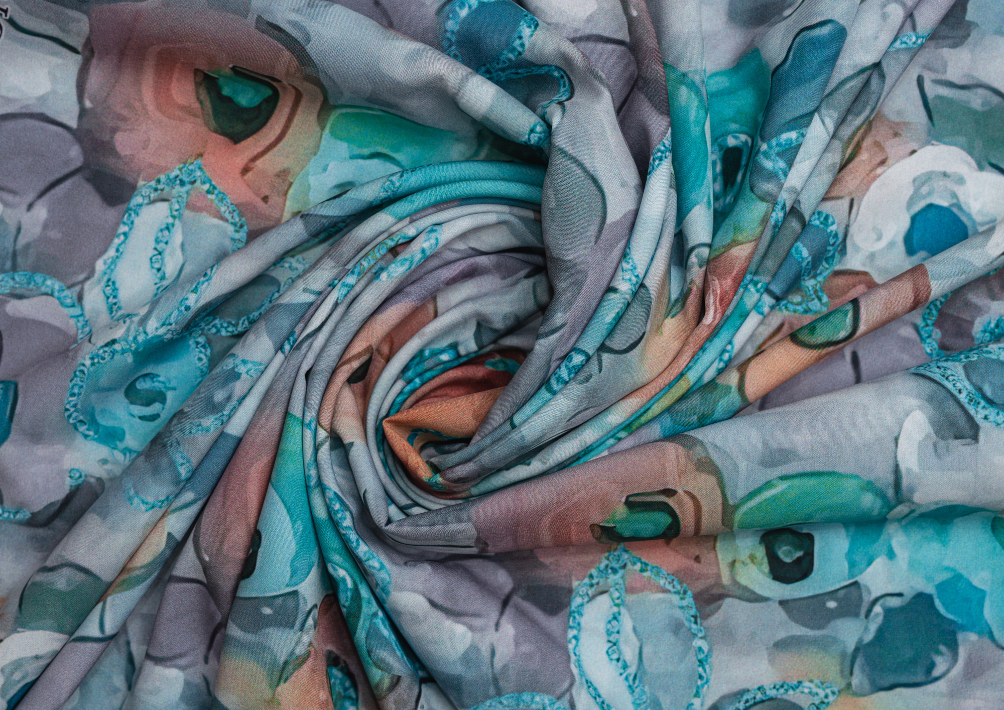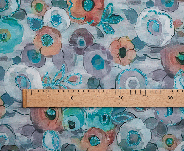 Ткань вискоза стрейч "Эскада " Акварельные цветы цв. бирюзово-желтый