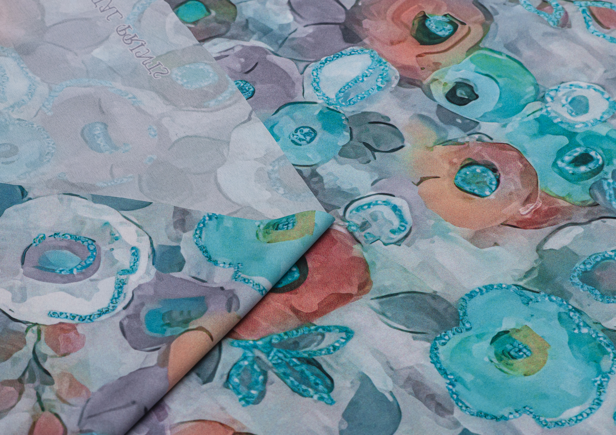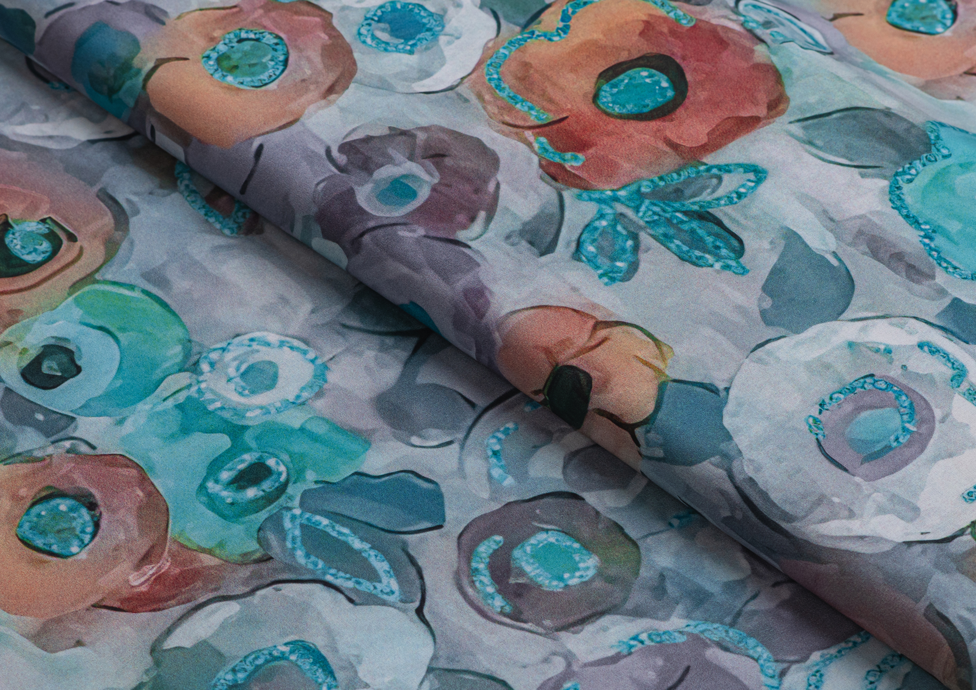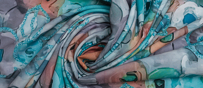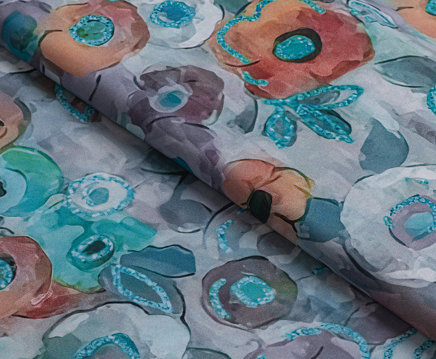 Тонкая легкая ткань с гладкой шелковистой поверхностью. На лицевой стороне полотна расположен Акварельные цветы. Материал мягкий, эластичный, хорошо драпируется. Данная ткань идеально подходит для пошива летних платьев, блузок, легких юбок.