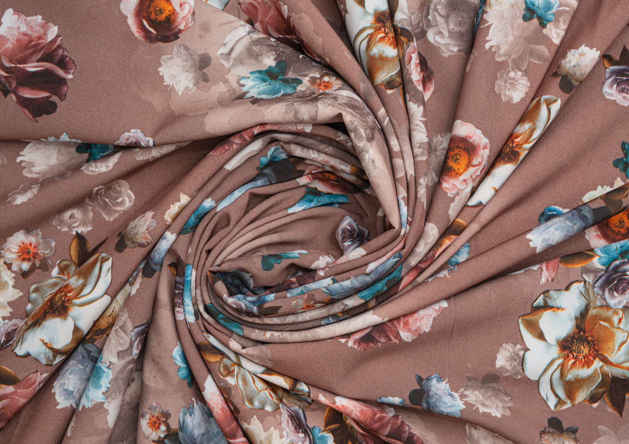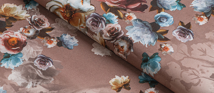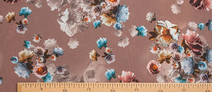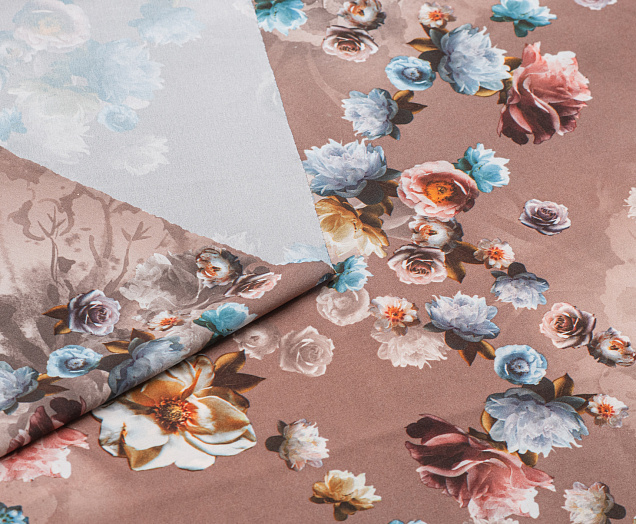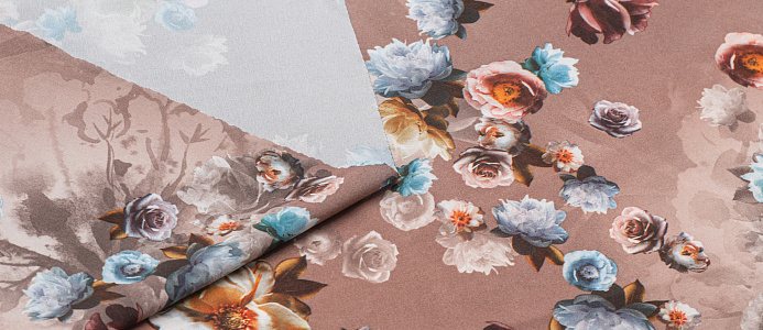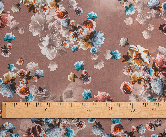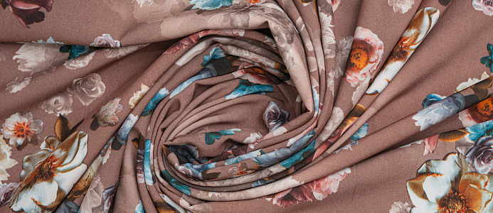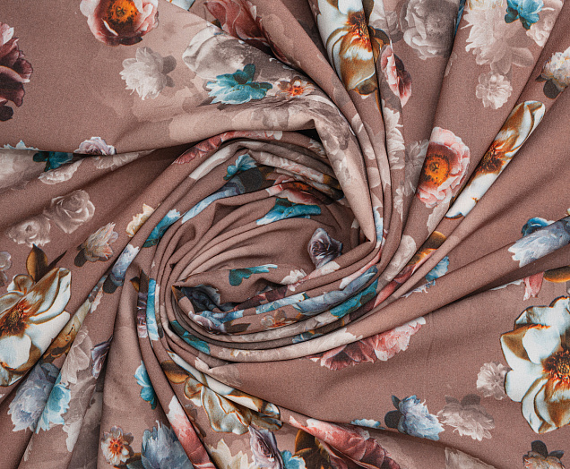 Ткань вискоза стрейч (супер софт) принт №1 Букет Роз кофейн.