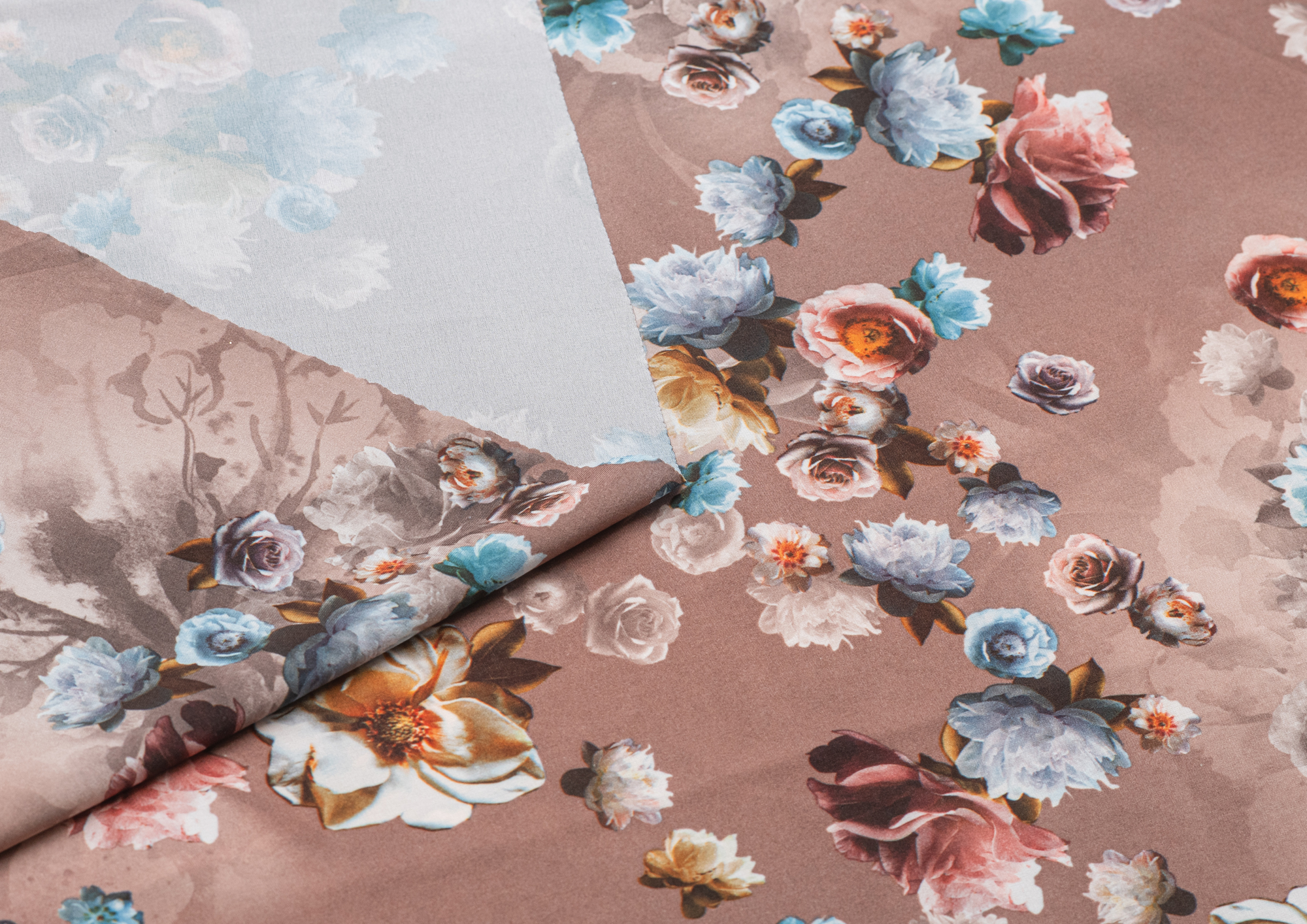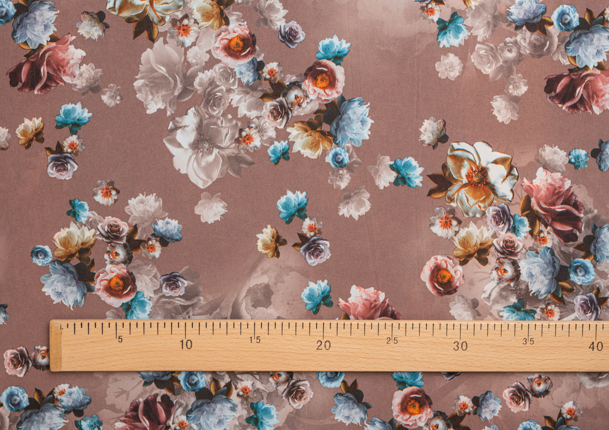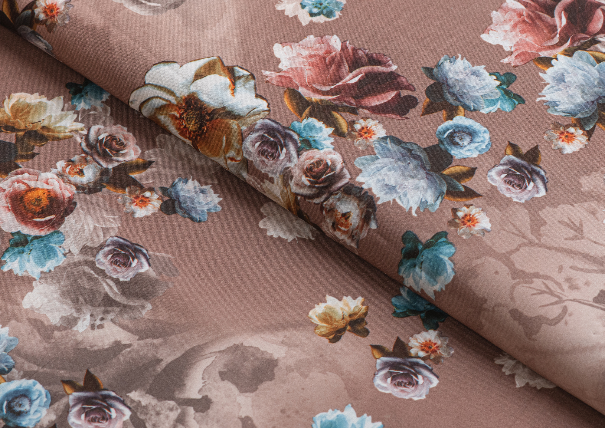Ткань вискоза стрейч (супер софт) принт №1 Букет Роз кофейн.