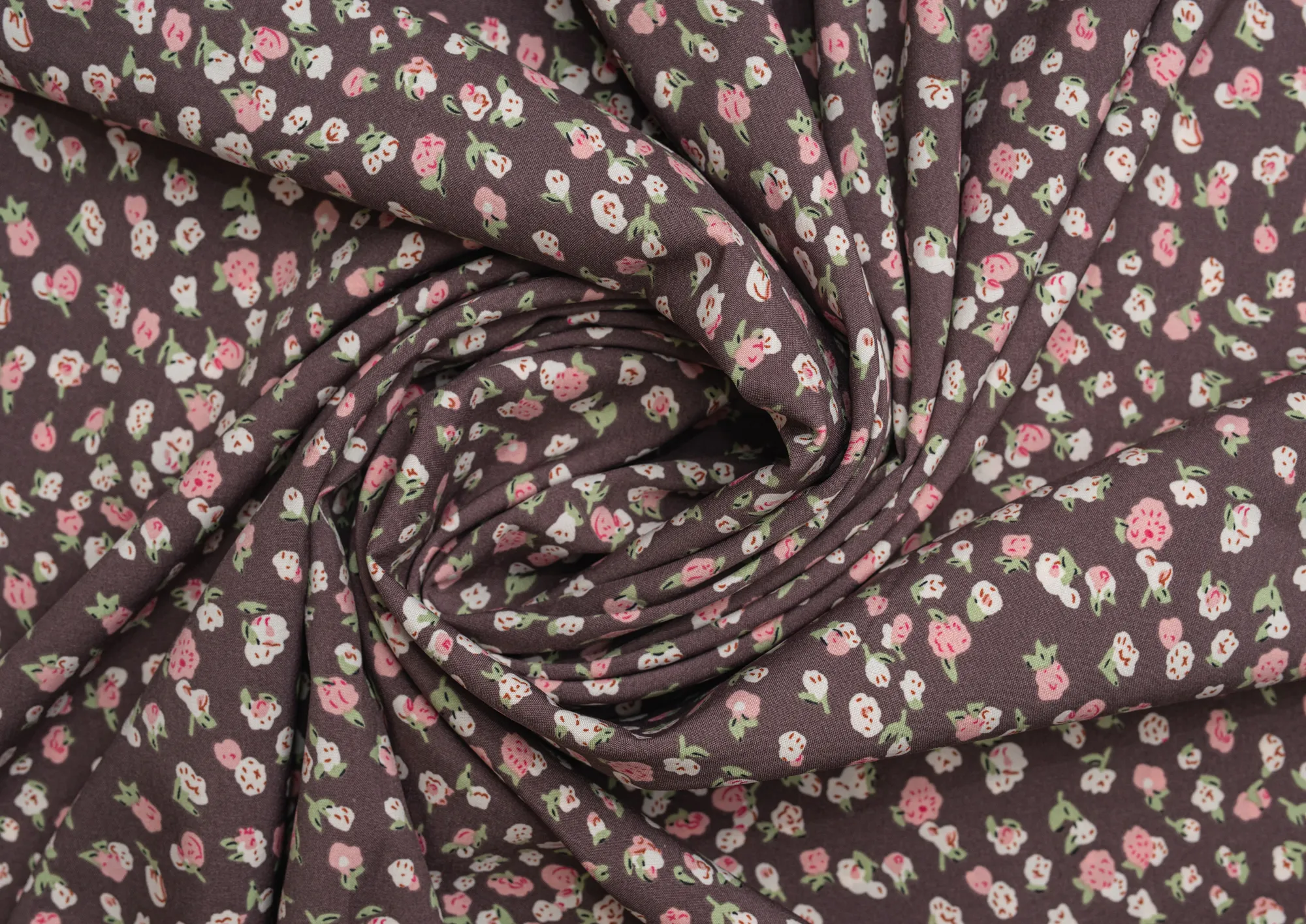 Ткань Вискоза стрейч (супер софт ) Розочки на бордовом