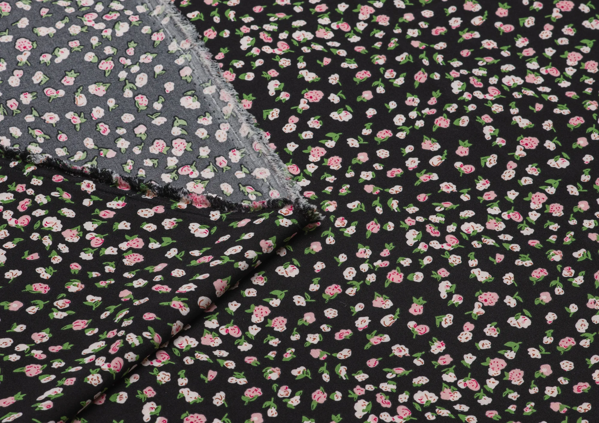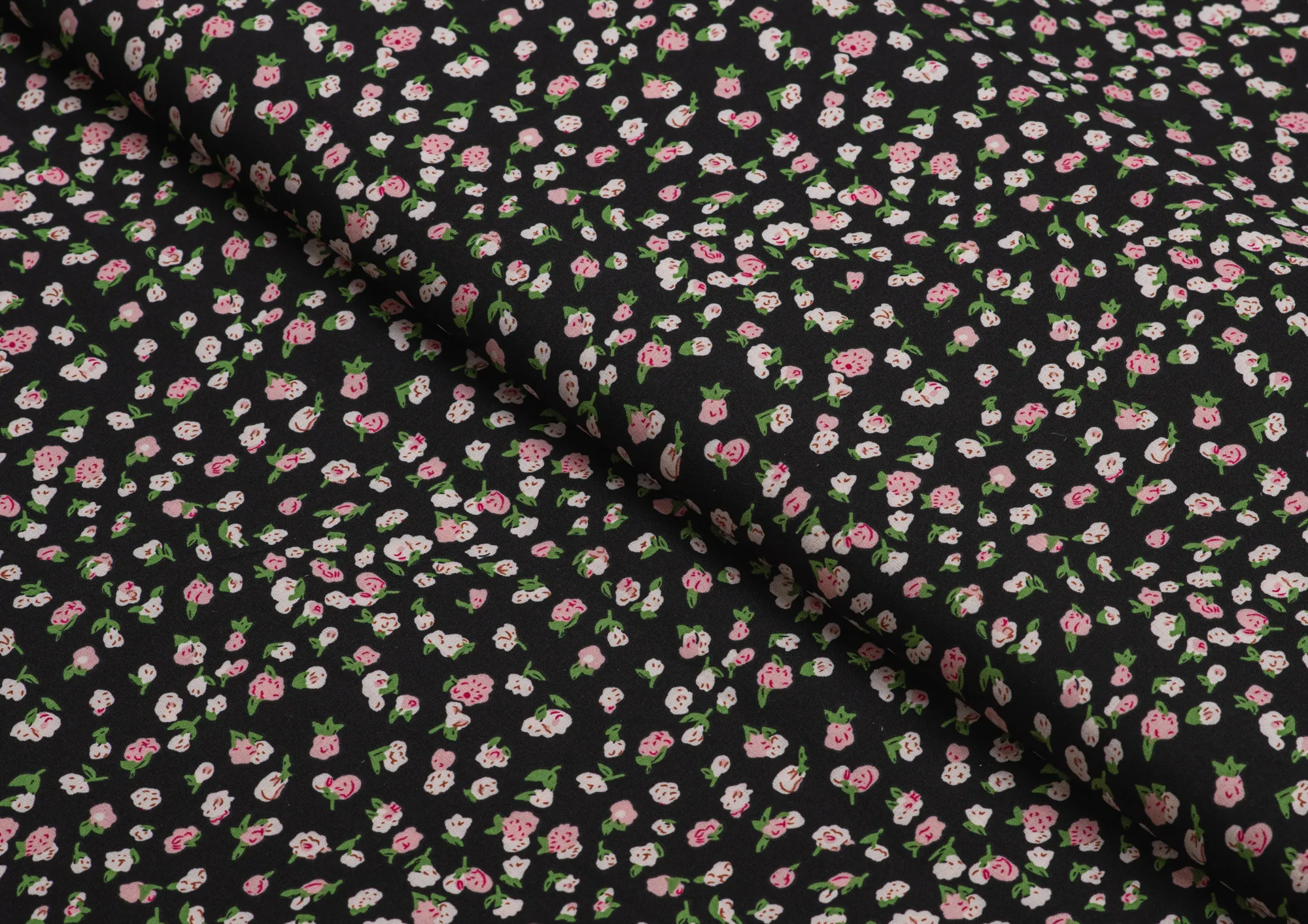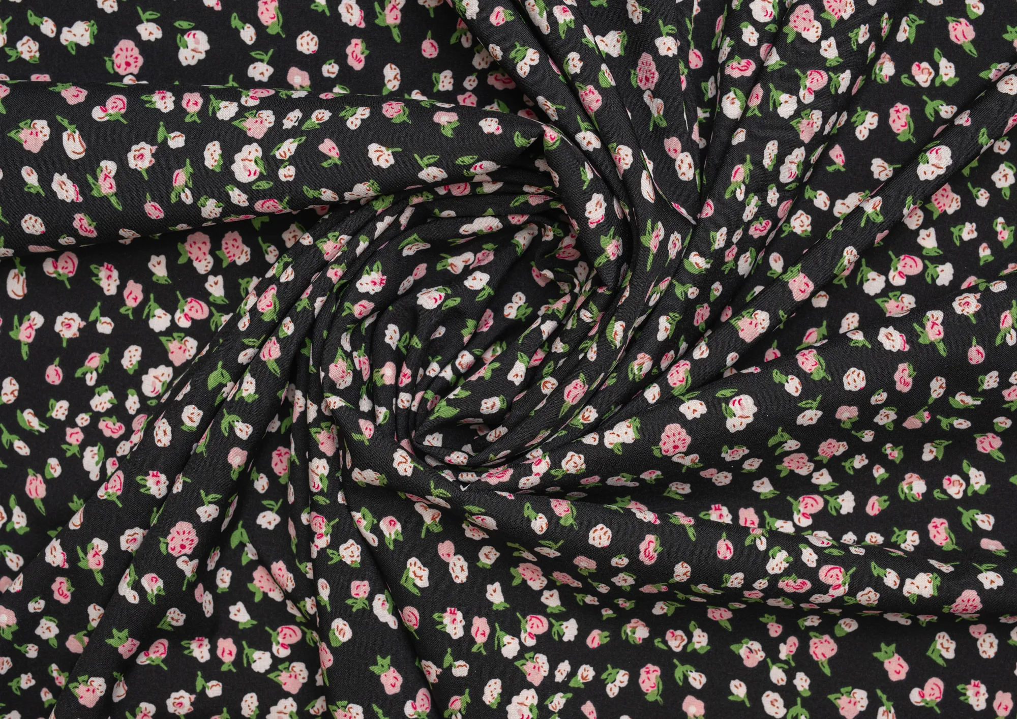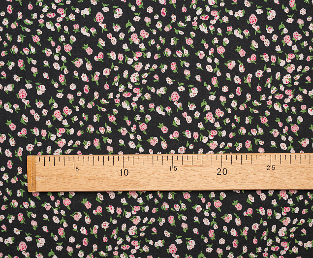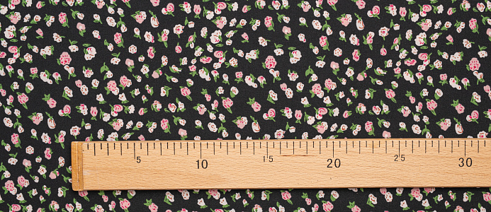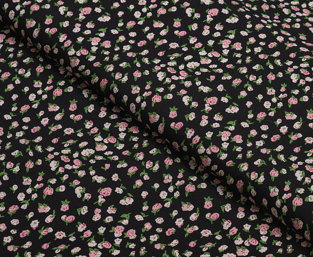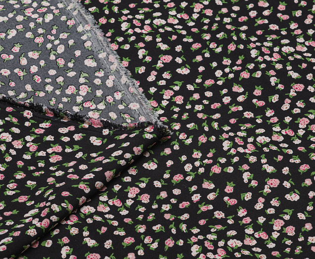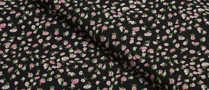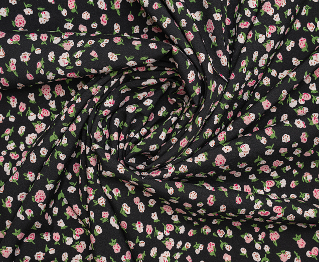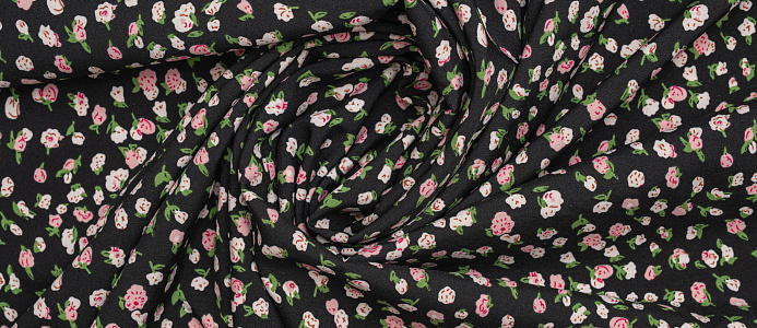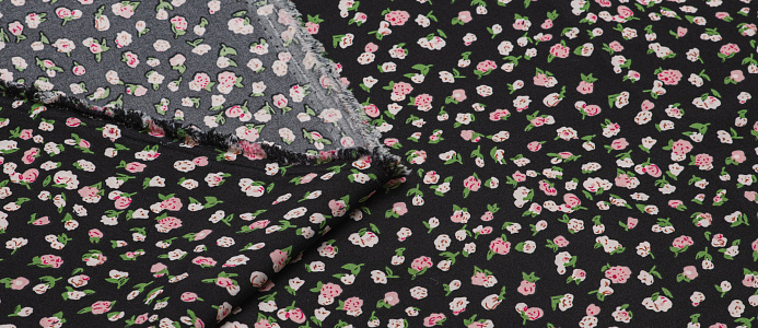 Ткань Вискоза стрейч (супер софт ) Розочки на черном