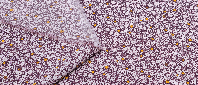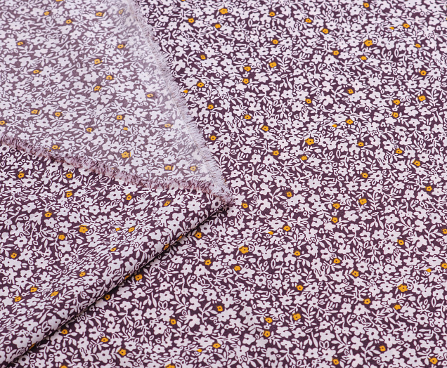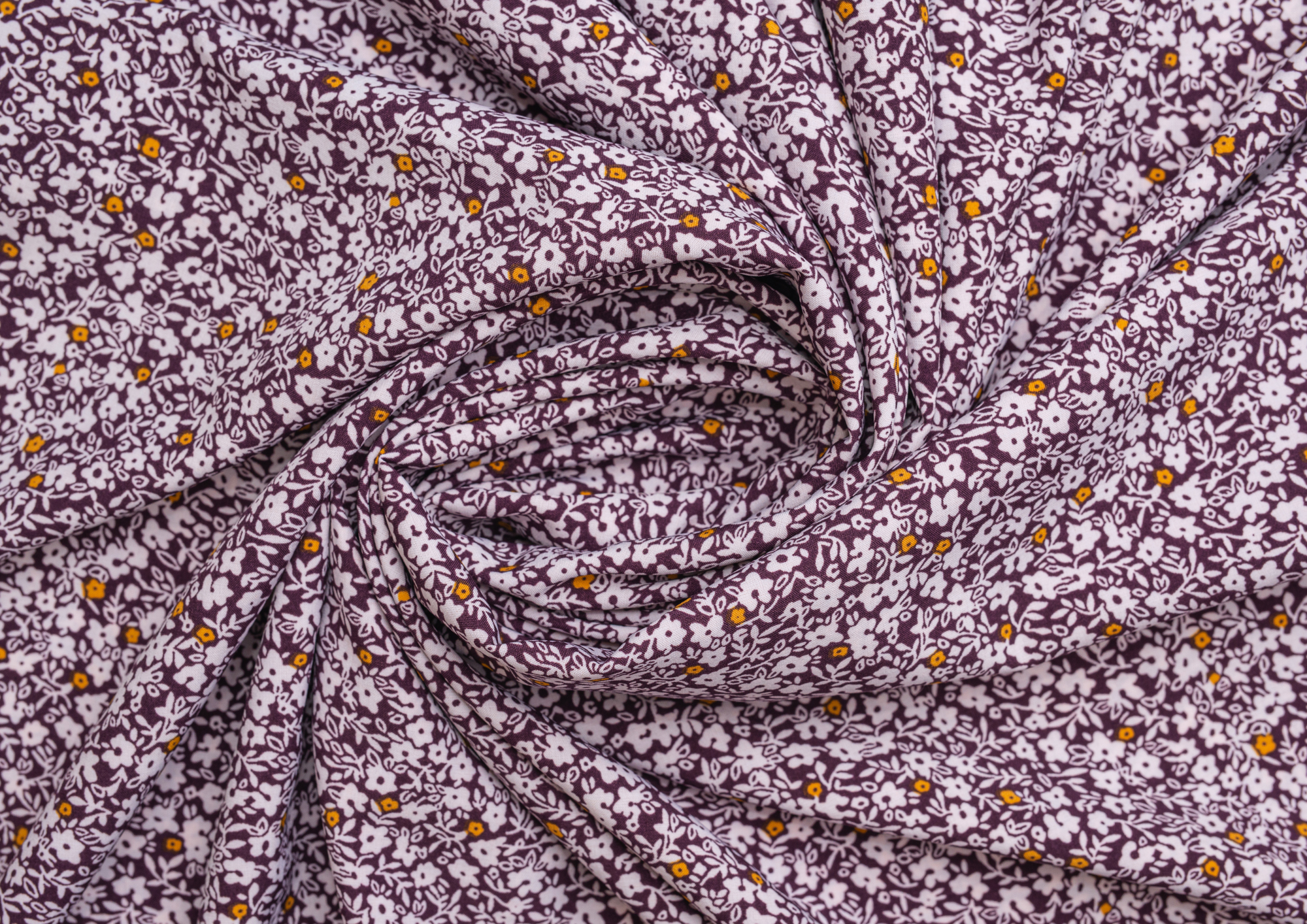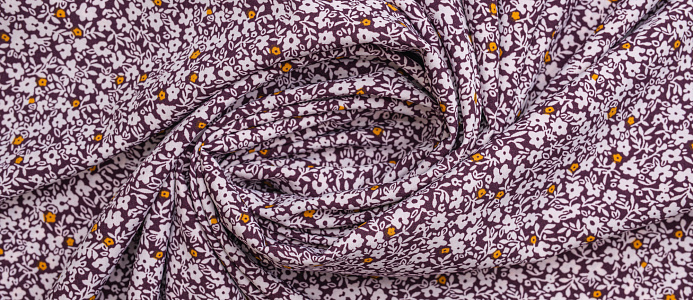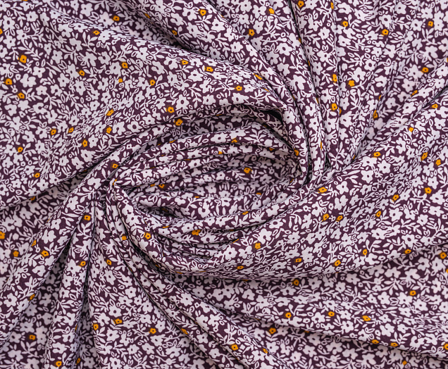 Ткань Вискоза супер софт № 2 белые цветы на вишневом