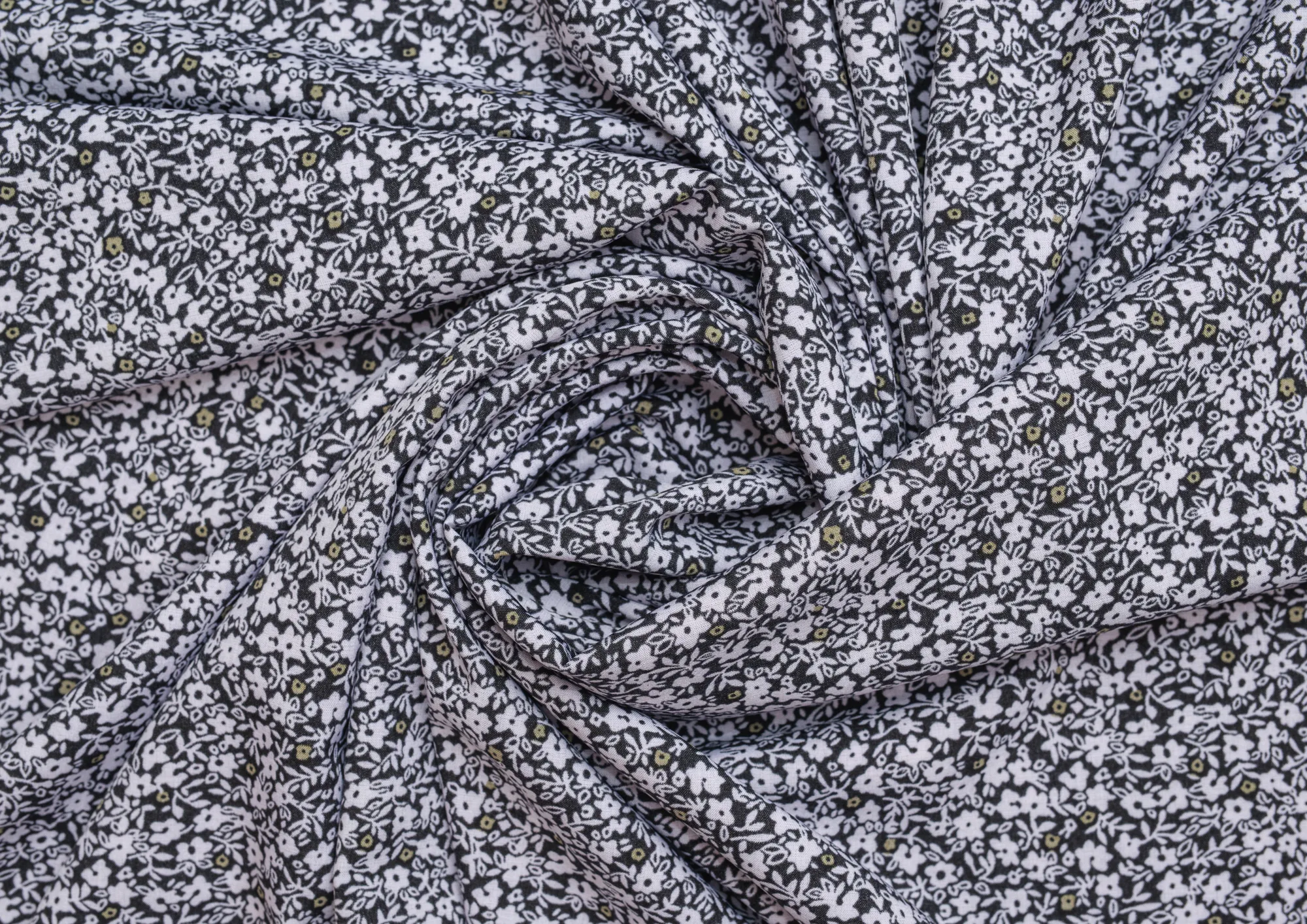 Ткань Вискоза супер софт № 3 белые цветы на черном