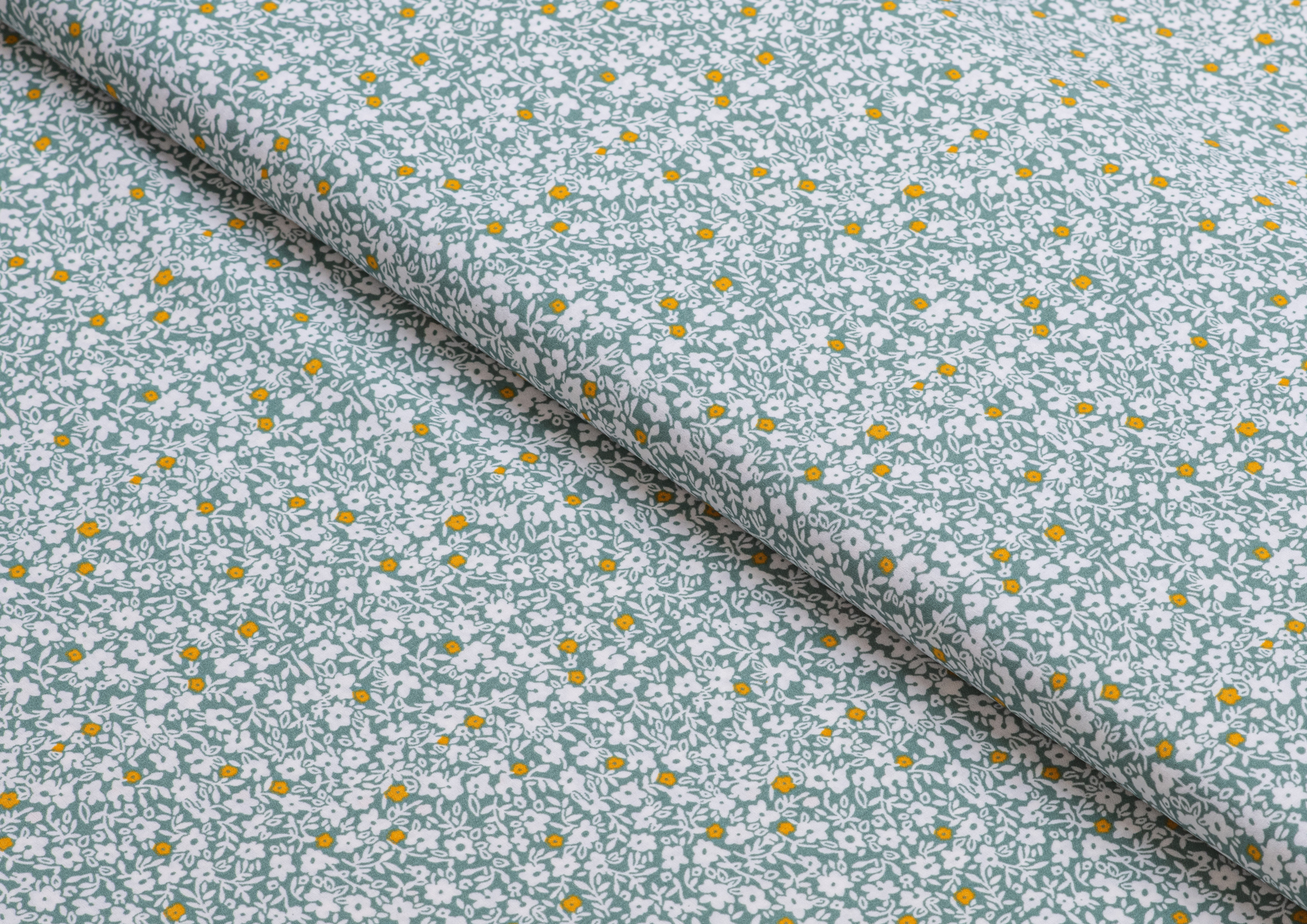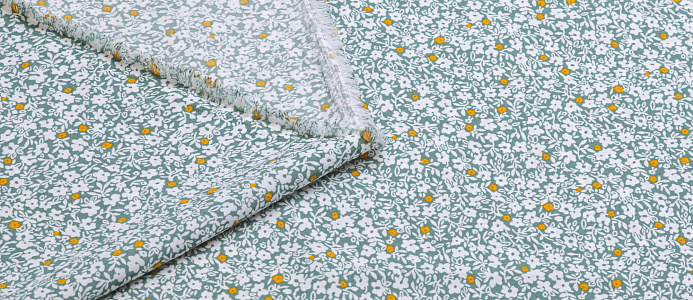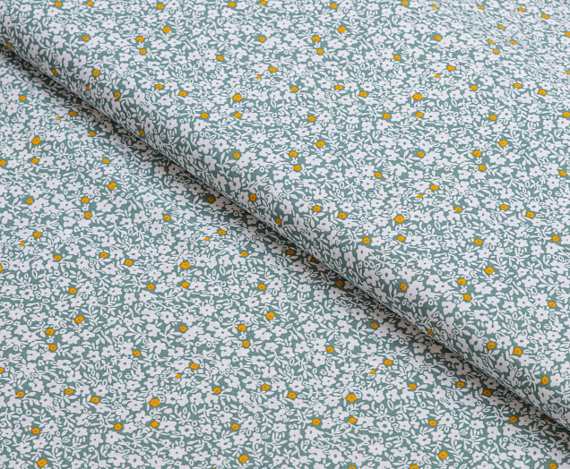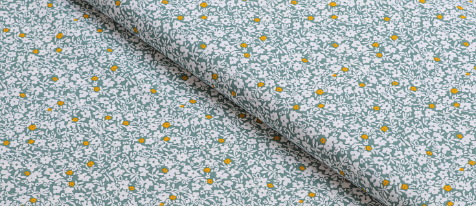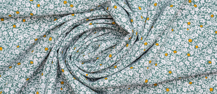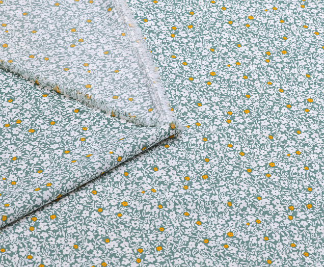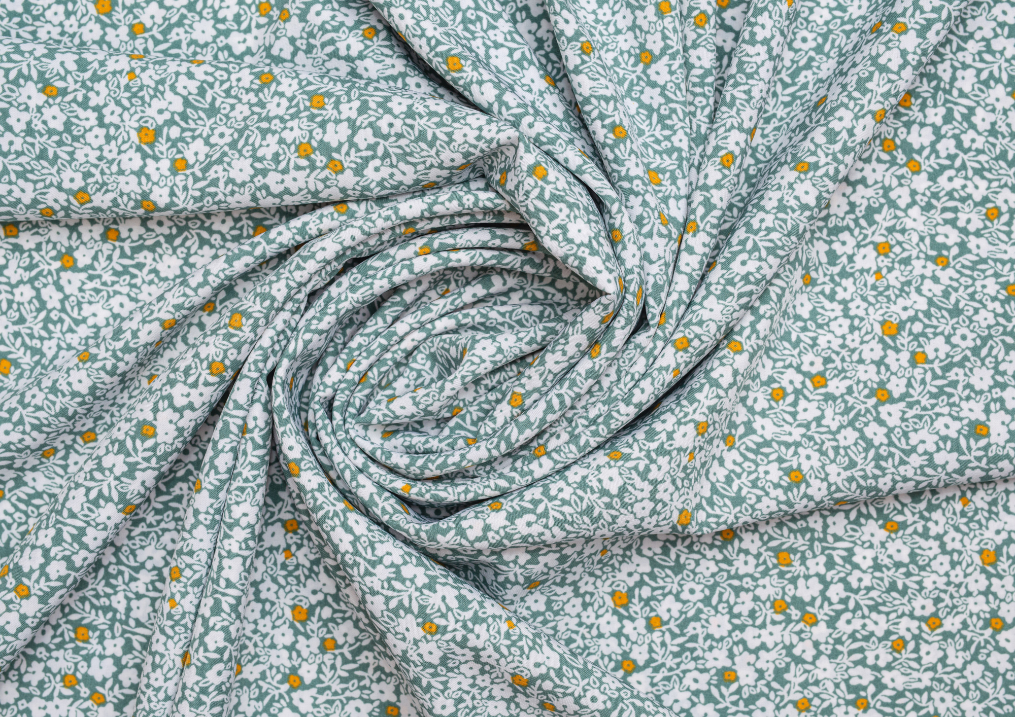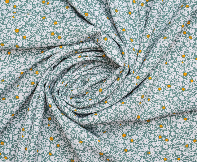 Ткань Вискоза супер софт № 5 белые цветы на мятном