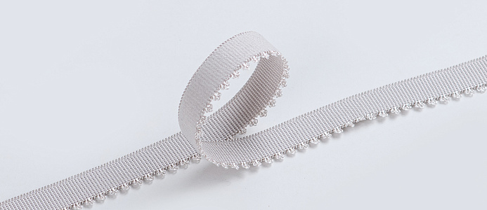 Эластичная лента для бретелей имеет гладкую блестящую лицевую сторону и бархатистую, приятную к телу, изнаночную сторону. Резинка применяется для изготовления бретелей бюстгальтера.