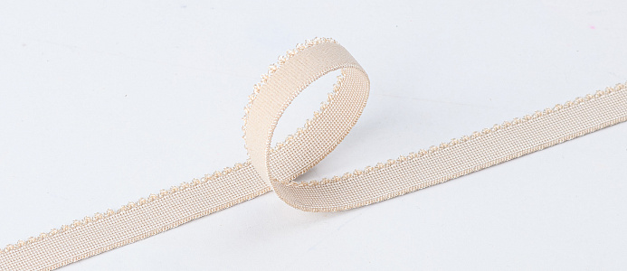 Эластичная лента для бретелей имеет гладкую блестящую лицевую сторону и бархатистую, приятную к телу, изнаночную сторону. Резинка применяется для изготовления бретелей бюстгальтера.
