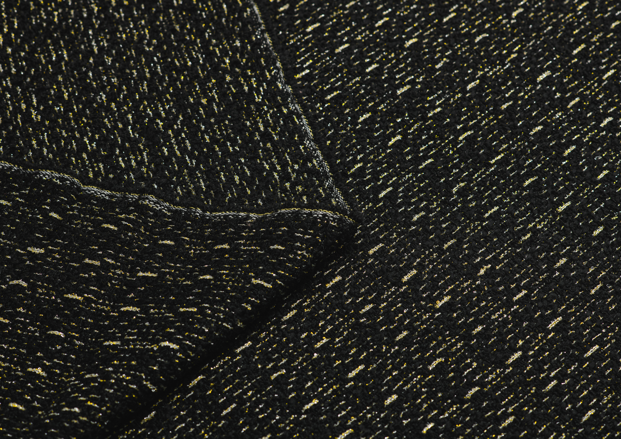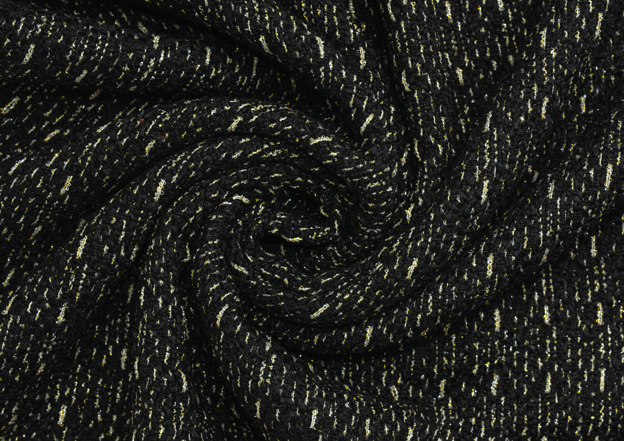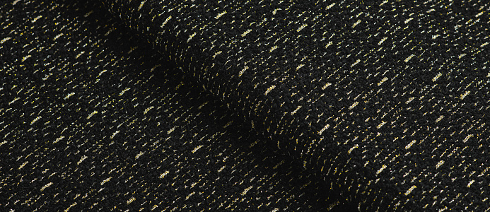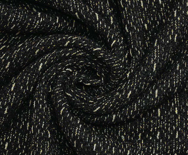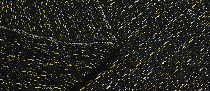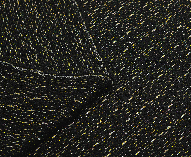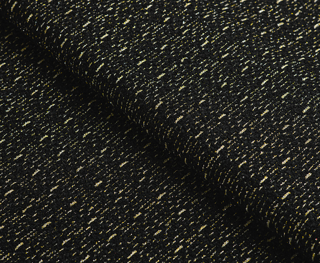 Мягкая ткань Букле Шанель, обладает высоким качеством. Не стрейч, малосминаема. По всему полотну золотой блеск. Наряды из этой ткани раскошны и элегантны. Ткань подходит для создания пиджаков, юбок и платьев, пальто.