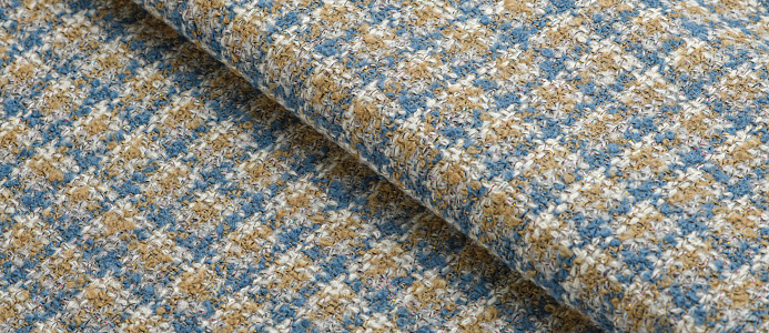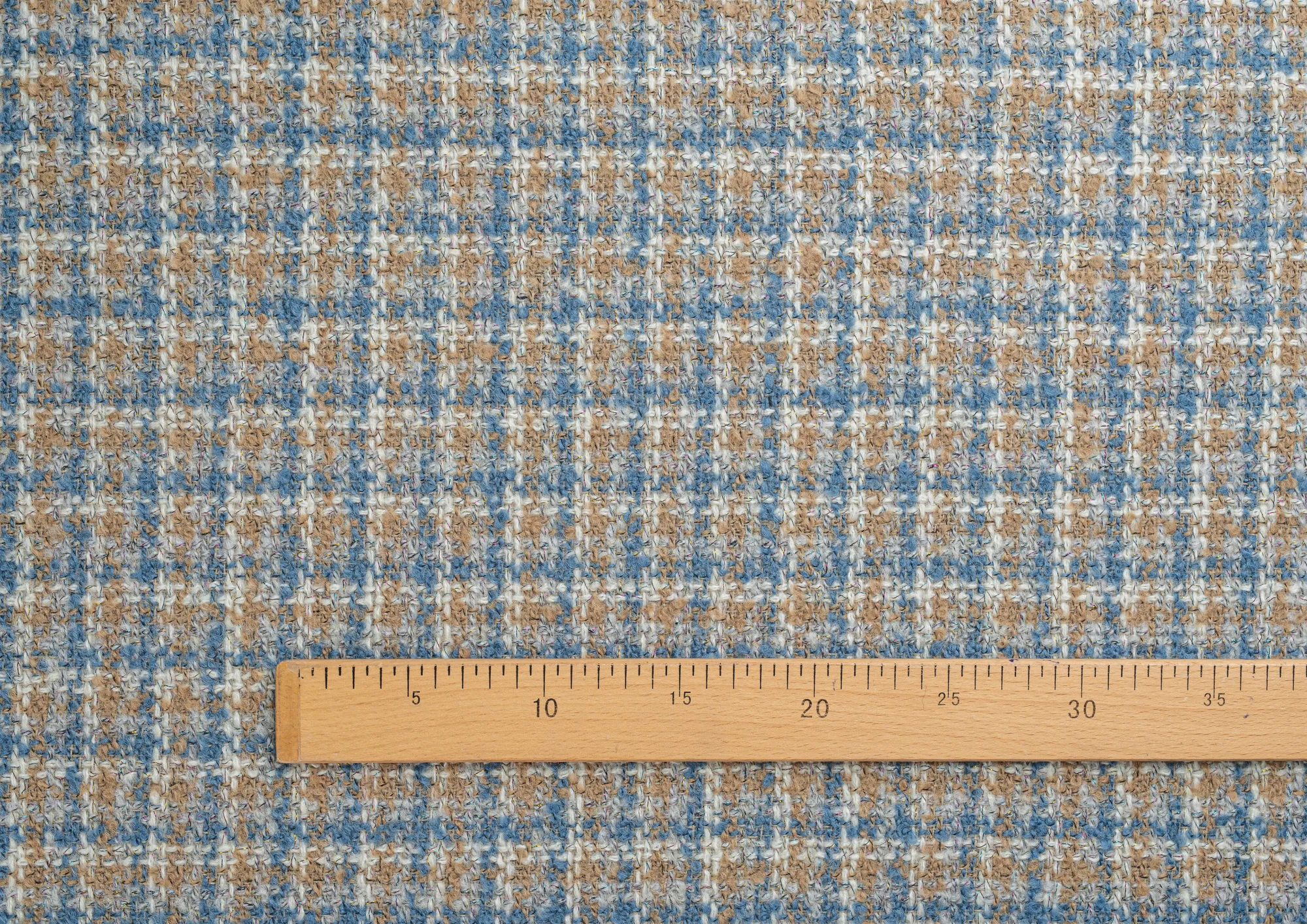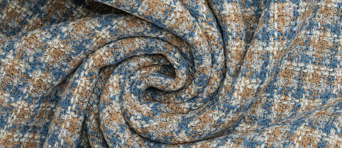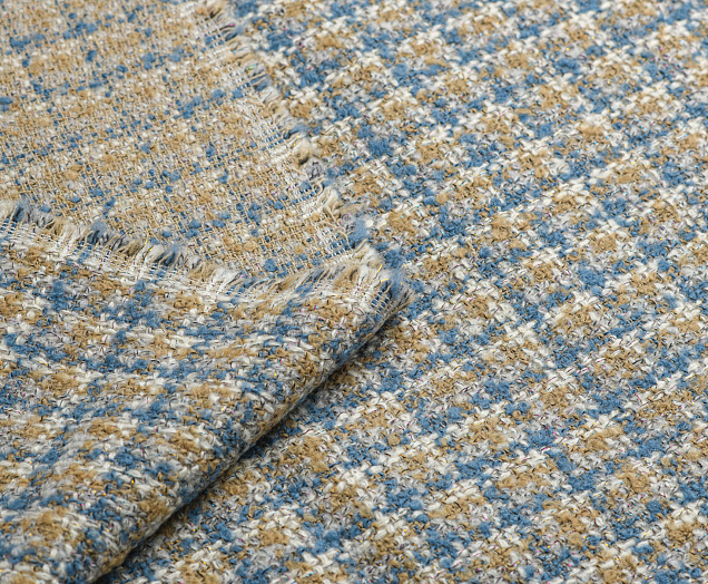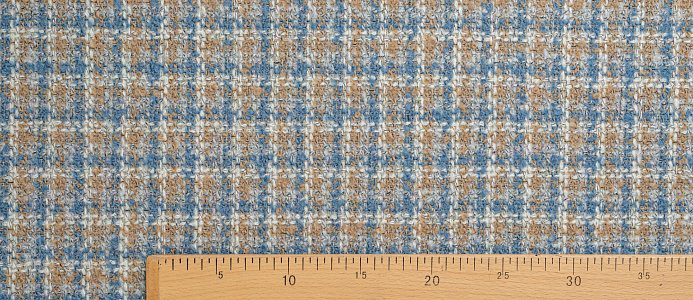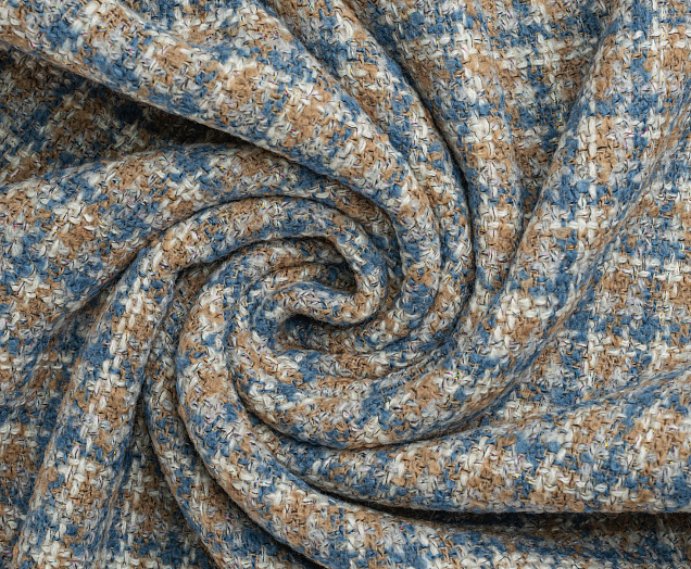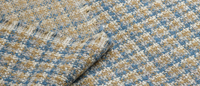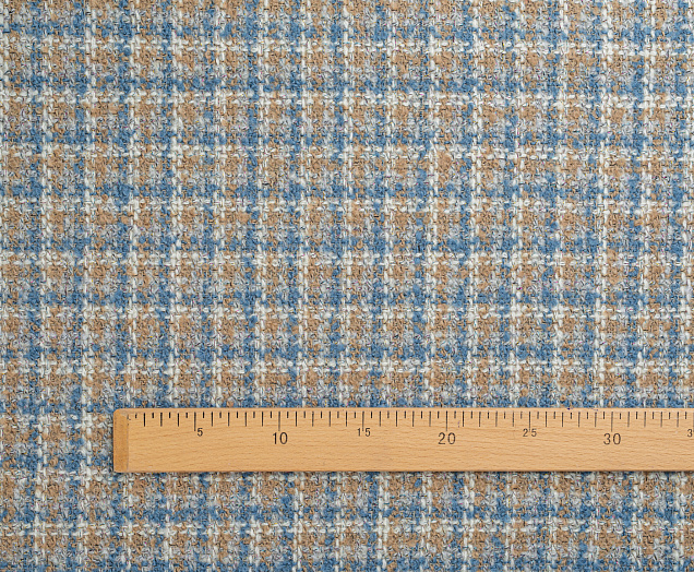 Ткань твид Шанель 3785 клетка с люрексом цв. бежево-синий