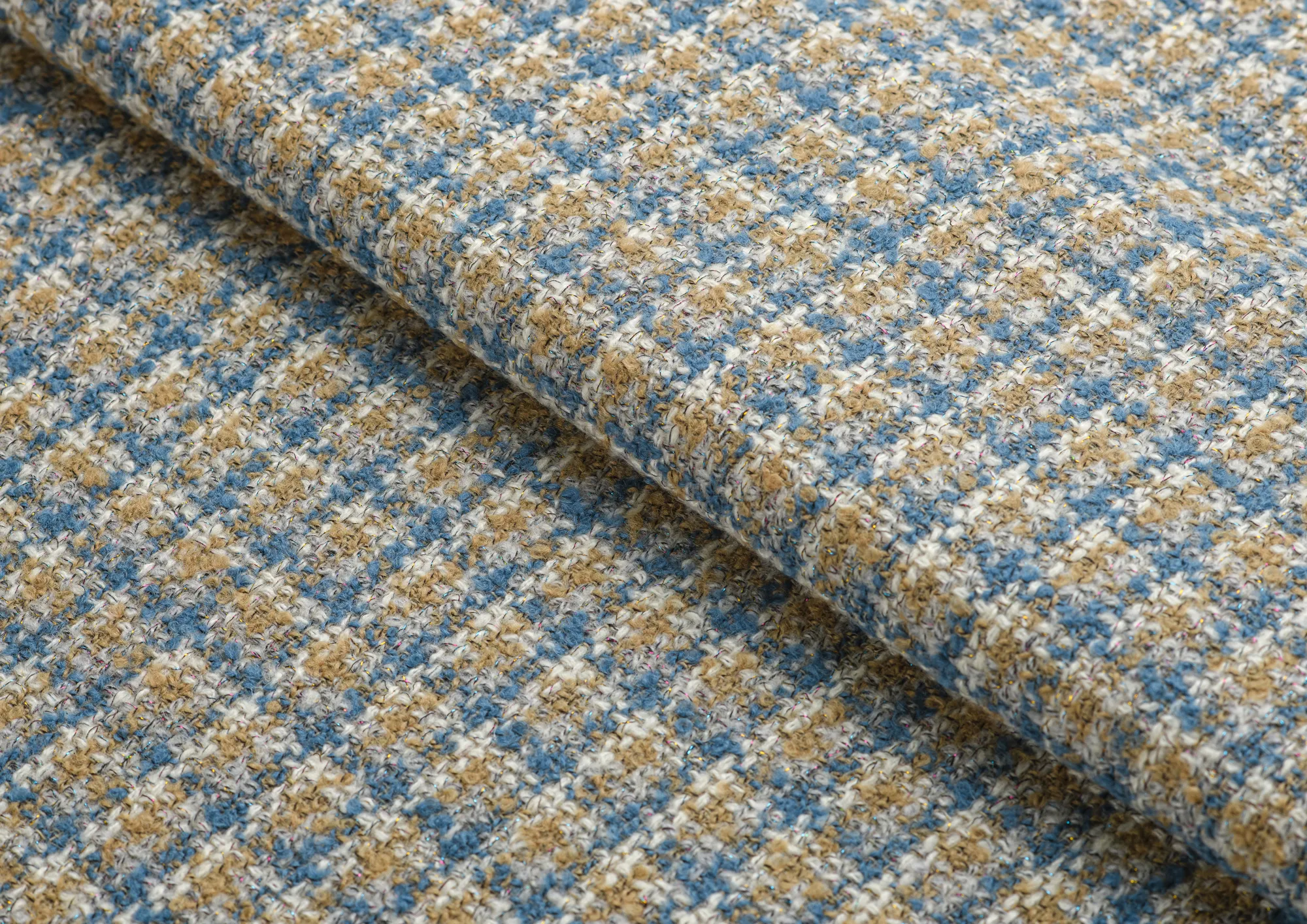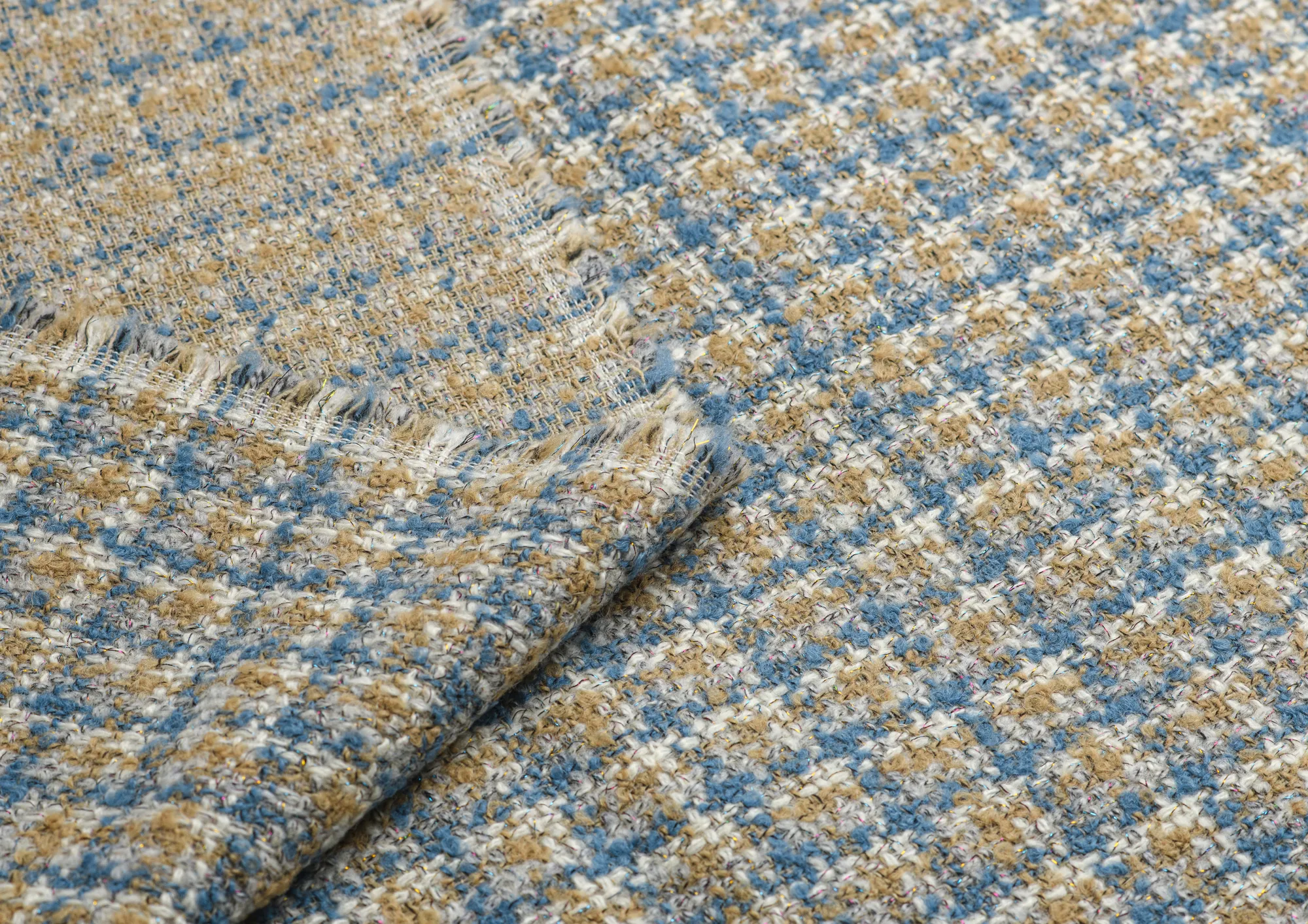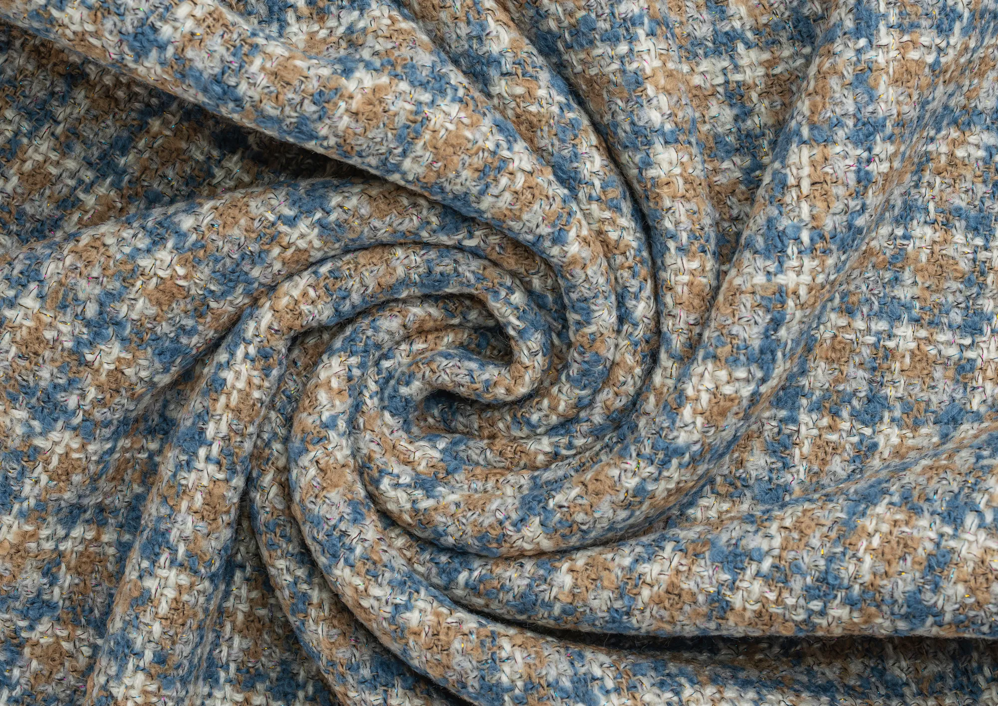 Ткань твид Шанель 3785 клетка с люрексом цв. бежево-синий