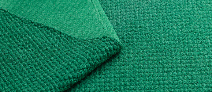 Объемный текстильный материал на мягкой трикотажной основе. Фактура на лицевой стороне образует завитки. Обладает достаточно хорошими теплоизоляционными свойствами. Широко используется в изготовлении верхней одежды, головных уборов, жакета и других изделий. Перед кроем натуральную ткань необходимо декатировать.