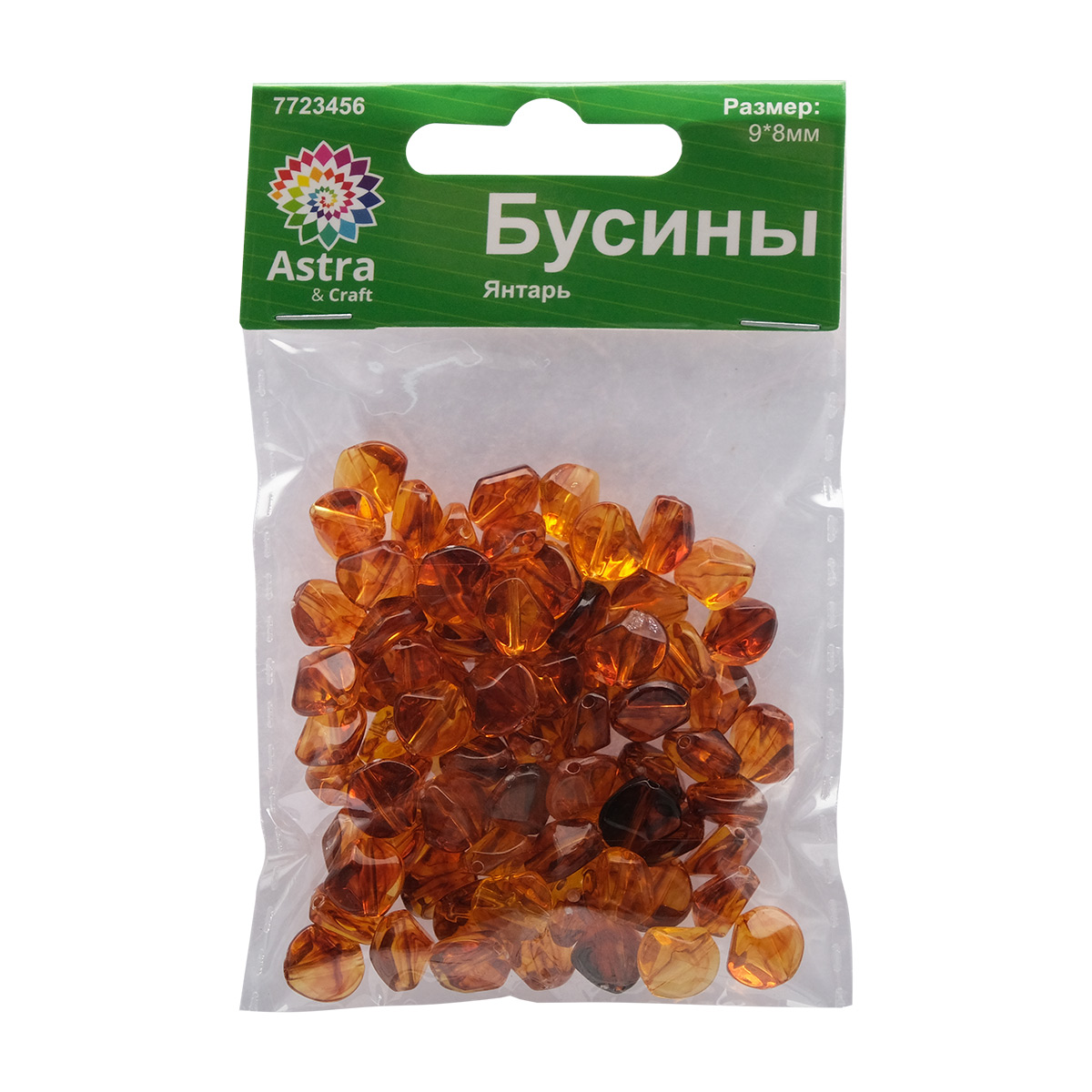 Бусины Astra&Craft с имитацией натурального янтаря – прекрасная основа для создания авторских украшений. Изготовлены из пластика, это легкий и недорогой материал. Из пластиковых бусин можно смело создавать авторскую бижутерию, различные поделки. Такие бусины удачно сочетаются с украшениями из акриловой смолы, стекла, камня или дерева.