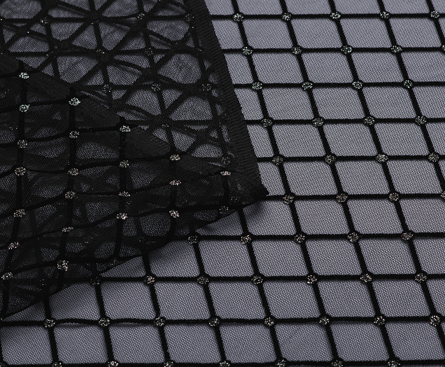 Мягкая, эластичная трикотажная сеточка.Н не мнется, приятная к телу, не колется. Размер ромбика примерно 40*30 мм. Используют как для декоративных вставок и аппликаций, так и для пошива изделий - блузки, водолазки, накидки, туники, праздничной и сценической одежды.