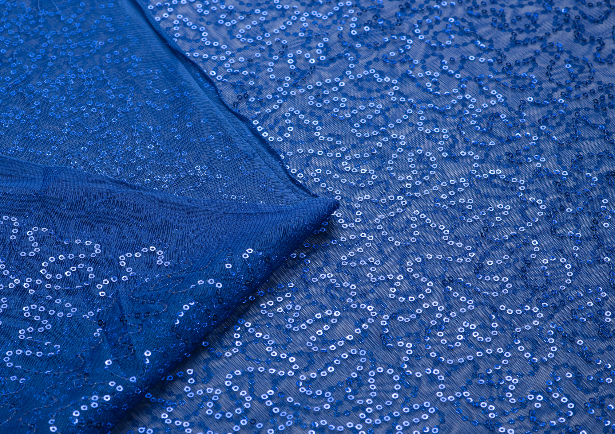 Ткань сетка с пайетками "Клякса "цв. № 1 электрик