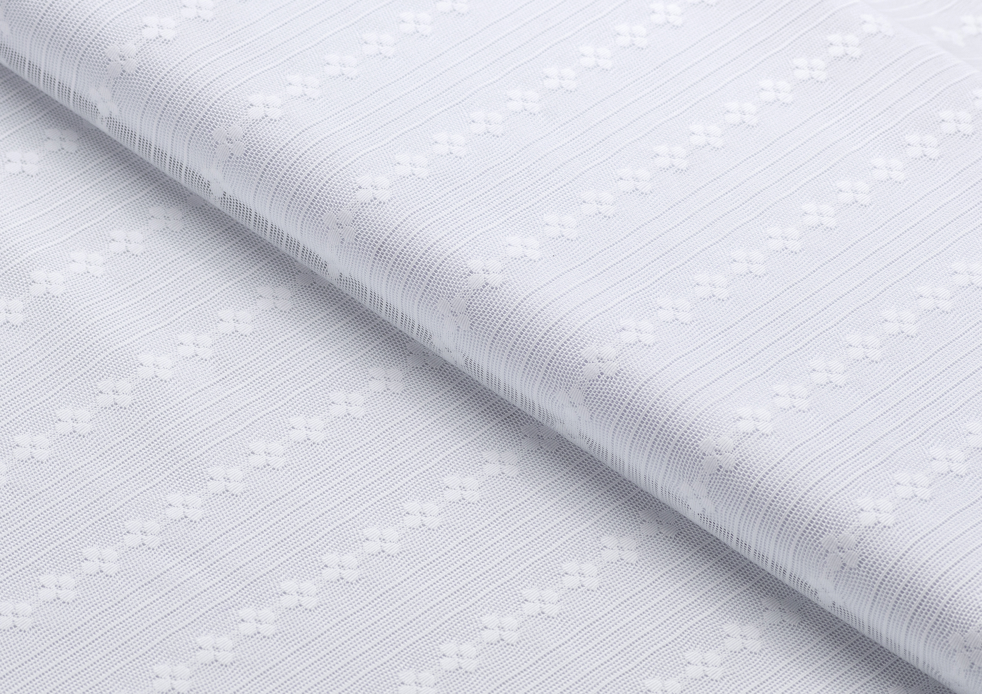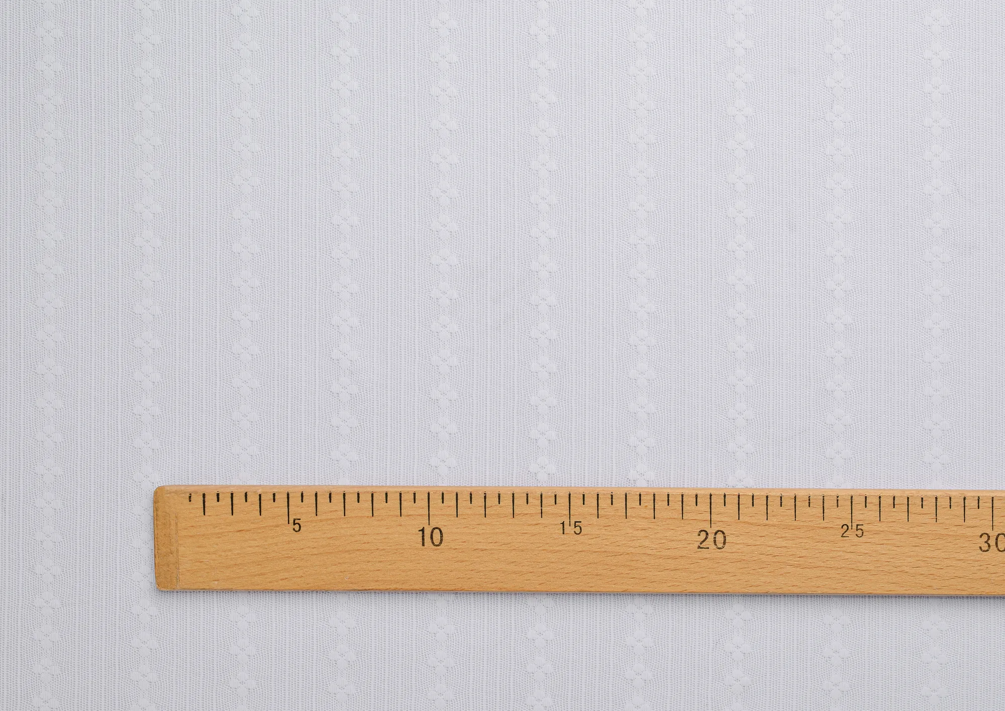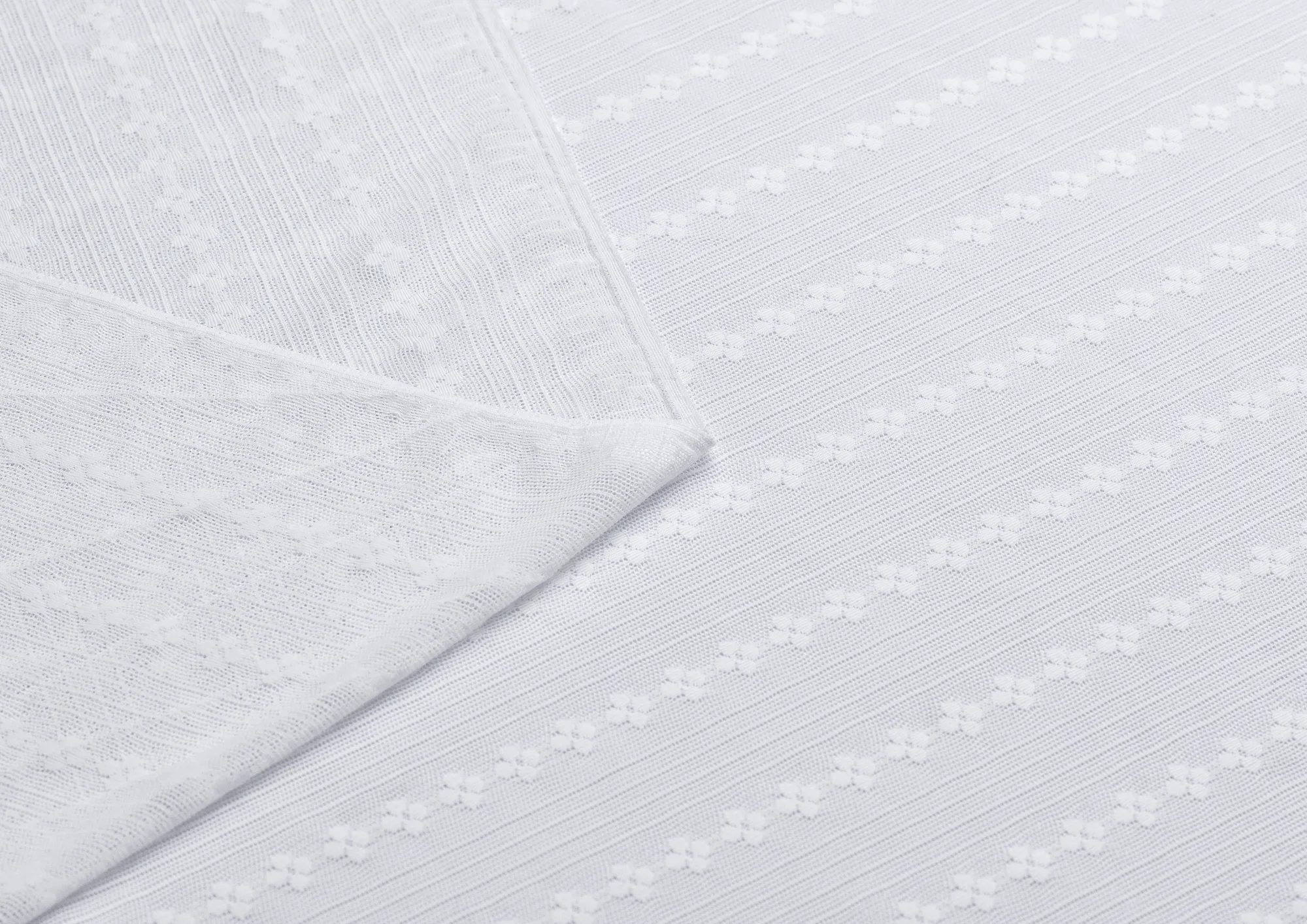 Тонкая эластичная сетка. Мягкая, приятная на ощупь. Сетка прекрасно драпируется. Полосы расположены вдоль длины полотна. Ширина между цветочными полосами 35 мм, между узкими 5 мм, d цветка 10 мм. Сетчатая ткань используется для рукоделия, пошива нижнего белья, нарядной одежды и аксессуаров.