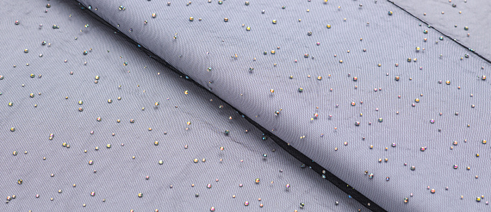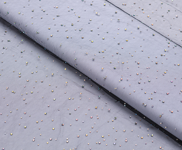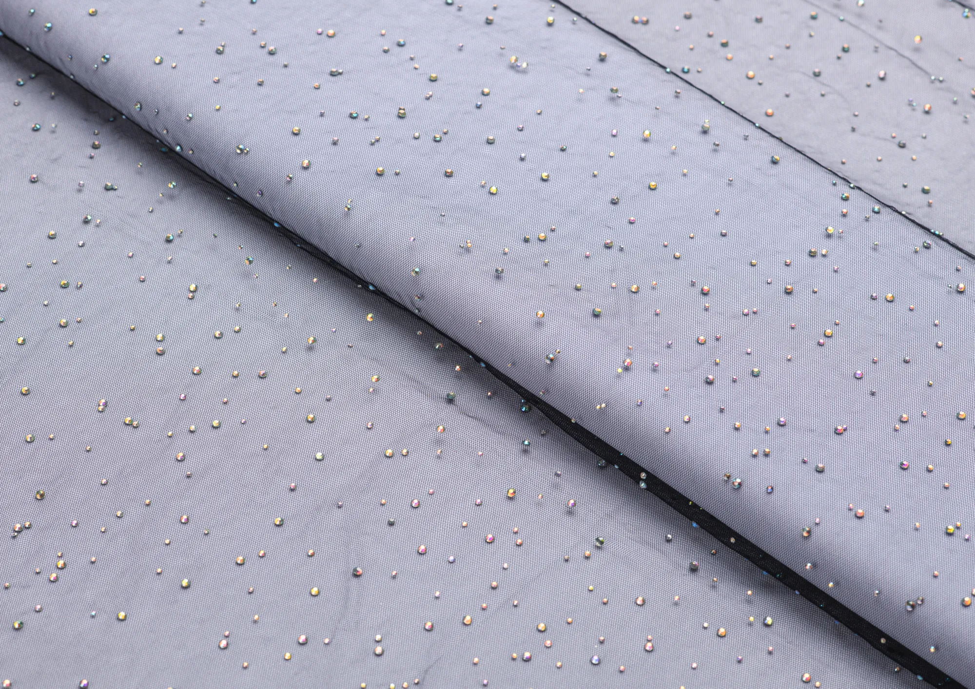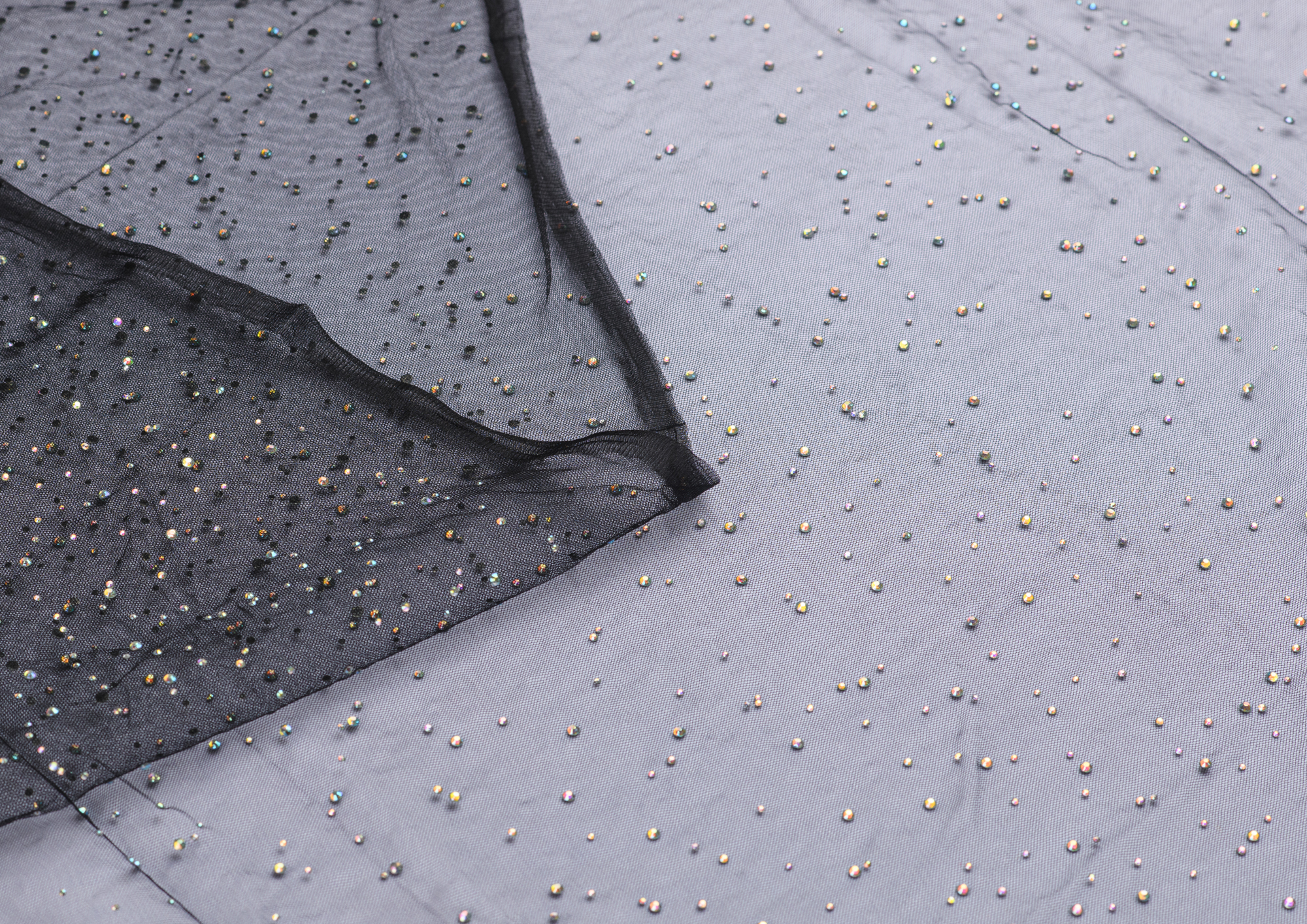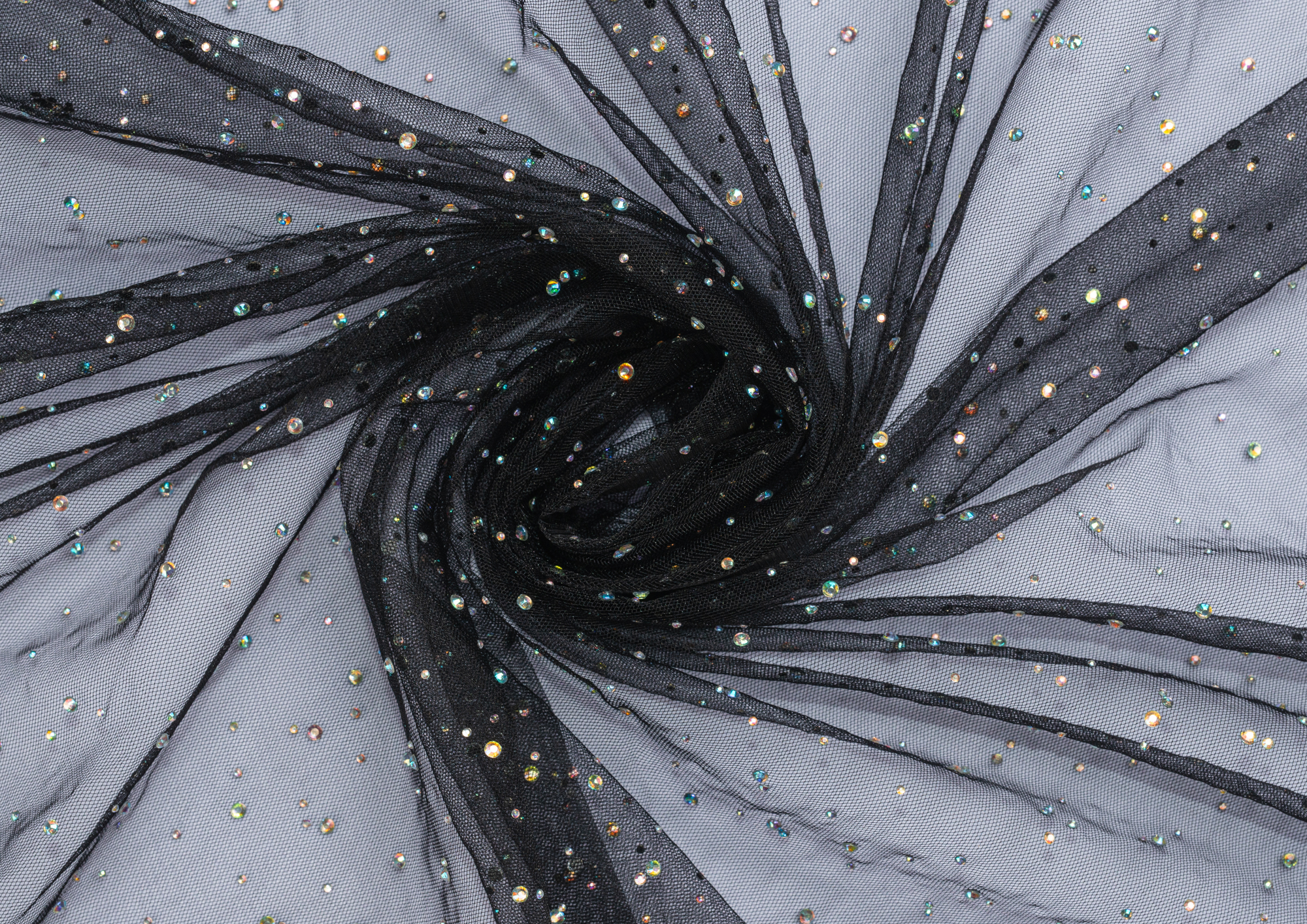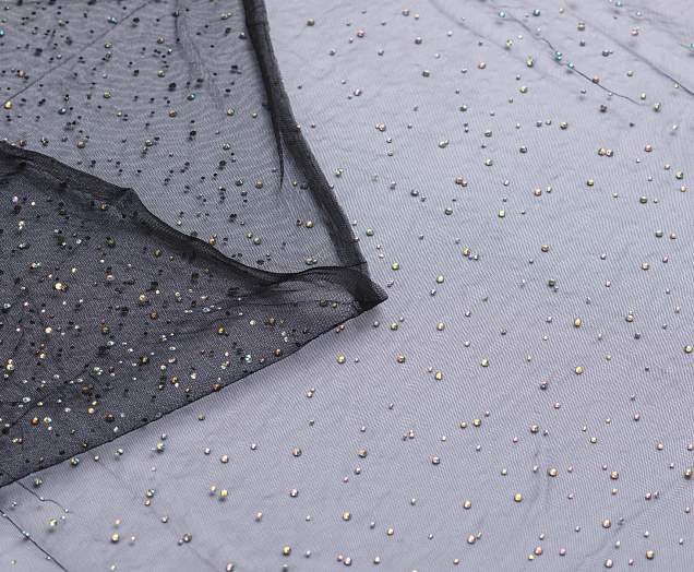 Сетка со стразами - мягкое полотно, которое великолепно тянется, приятна для тела.  Используется для пошива женской одежды, купальников или нижнего белья. За счет хорошей пластичности и растяжения используют на водолазки, лонгслив сетка и боди сетка.