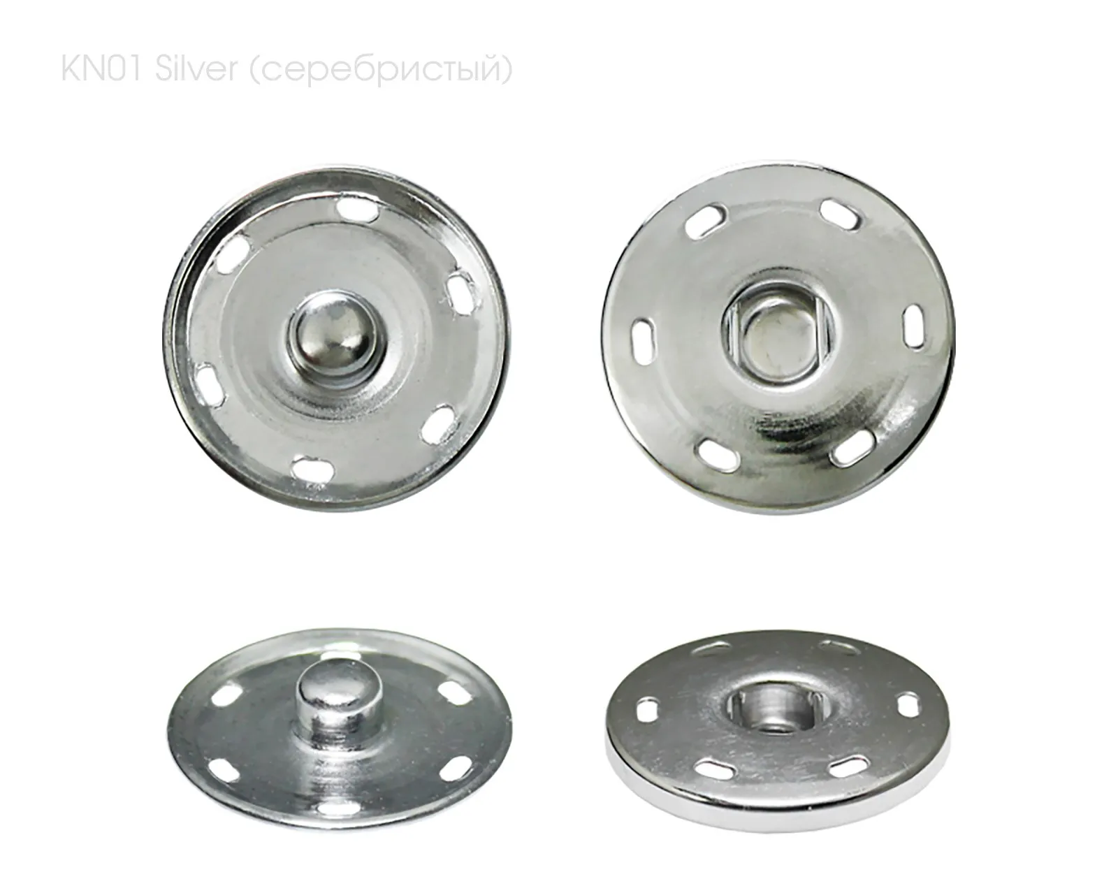 Круглые пришивные металлические кнопки подходят для пришивания к мужской и женской одежде и аксессуарам. Застежка легко пришивается и удобна в использовании.