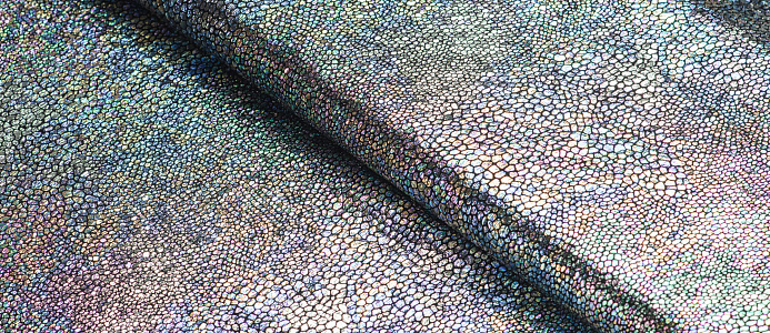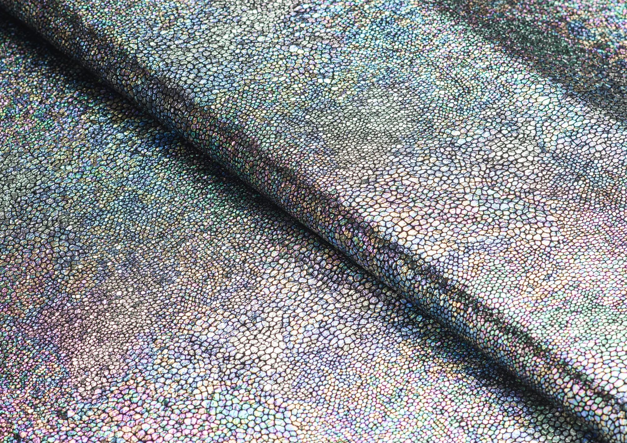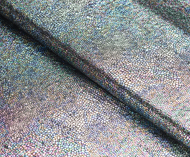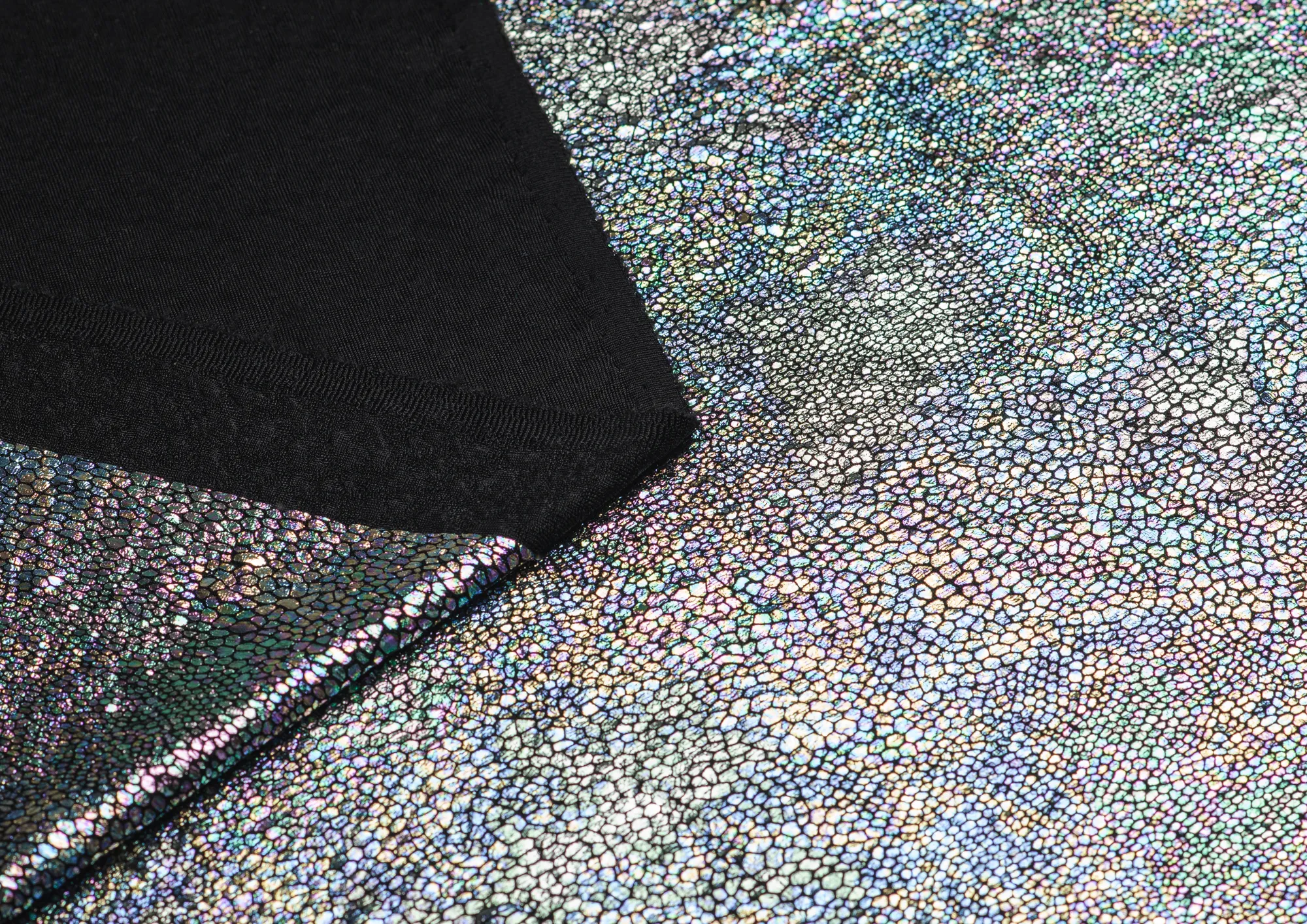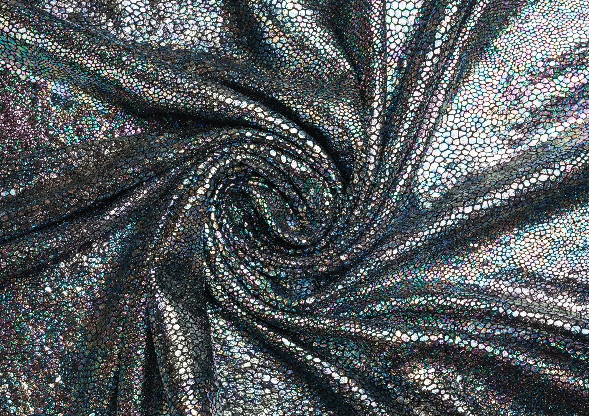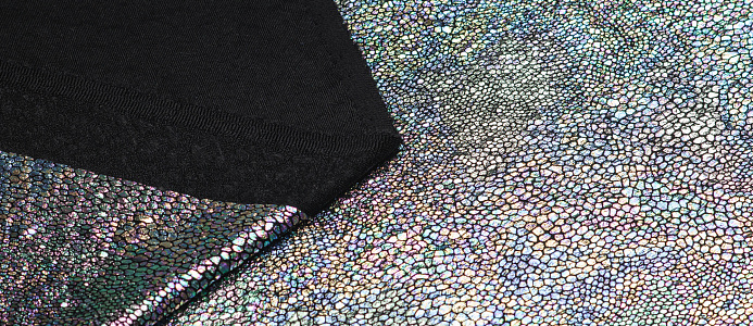 Ткань сияющая, эластичная и прочная. Удобен в носке, достаточно устойчив к образованию складок. Великолепный блеск добавляет нотку роскоши и праздника, поэтому подходит для создания вечерних и театральных костюмов, женской одежды и аксесуаров.