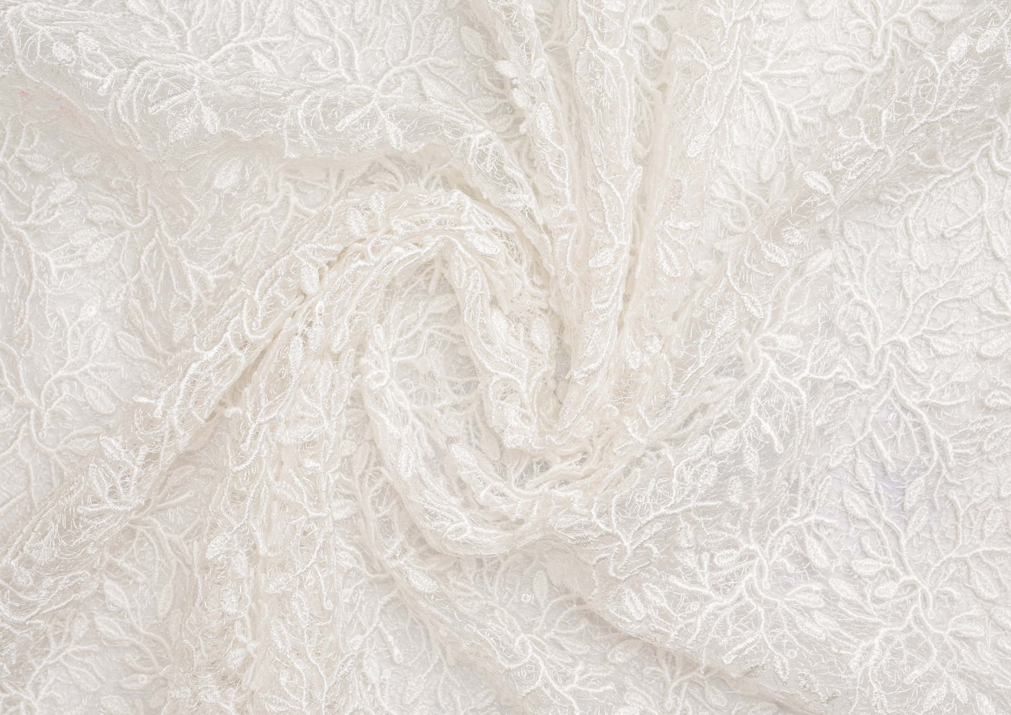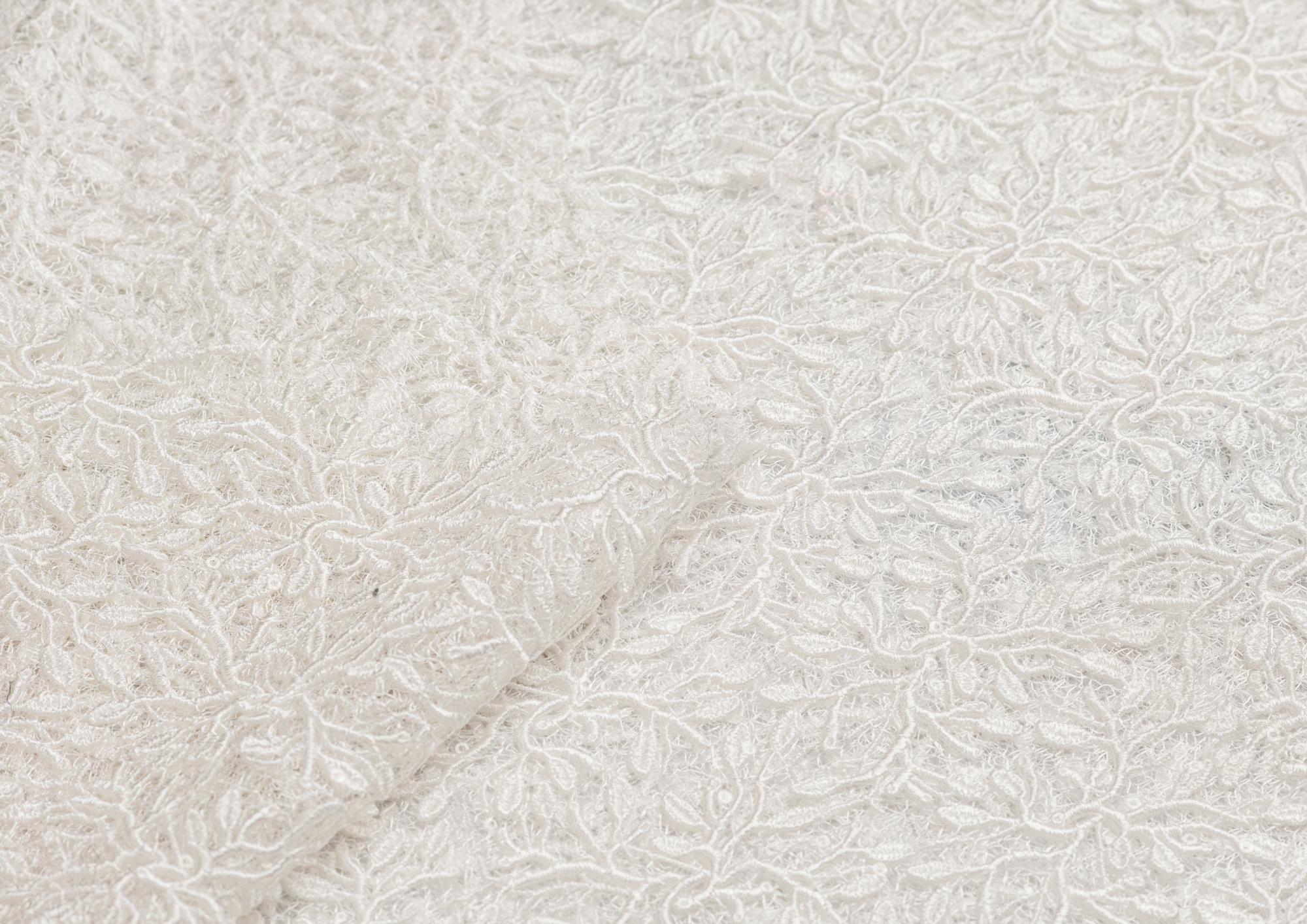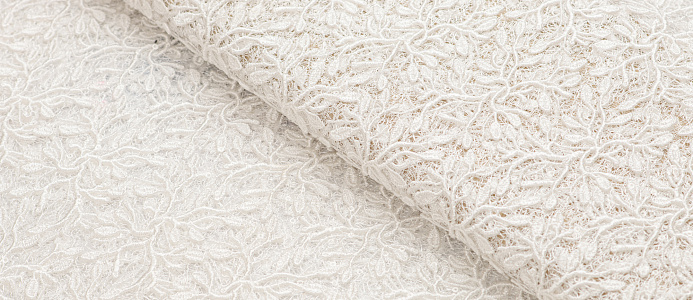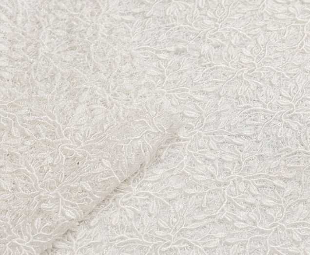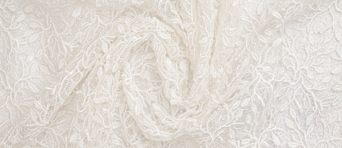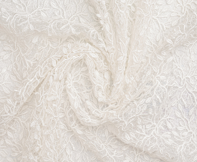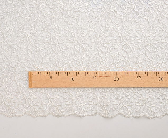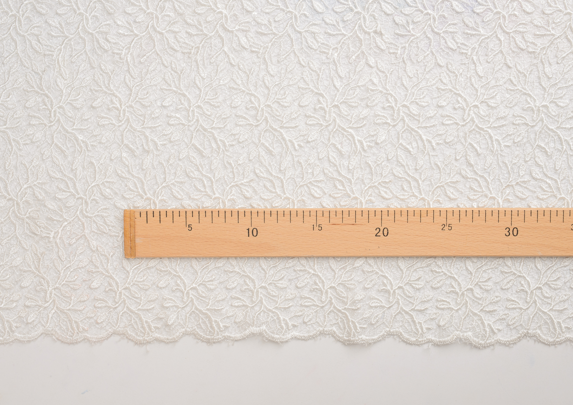 Кружевоное полотно расшито мелкими прозрачными пайетками . Кружево имеет 3D  эффект , красивые фестоны идут вдоль обоих кромок. Под изделие необходим подклад .  Изделия из кружева всегда смотряться нарядно . Отлично подойдет для пошива театрального, вечерего, свадебного платья, костюма .