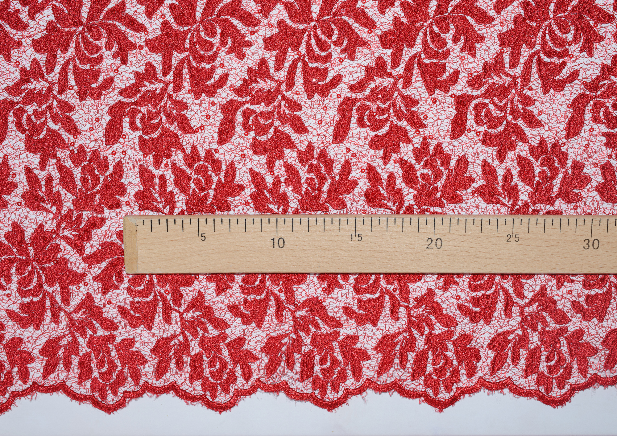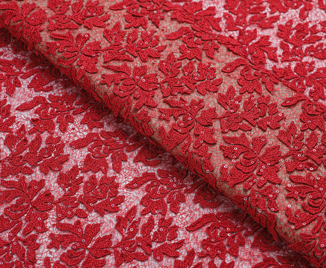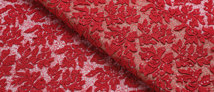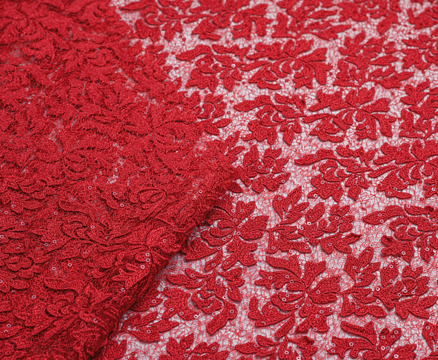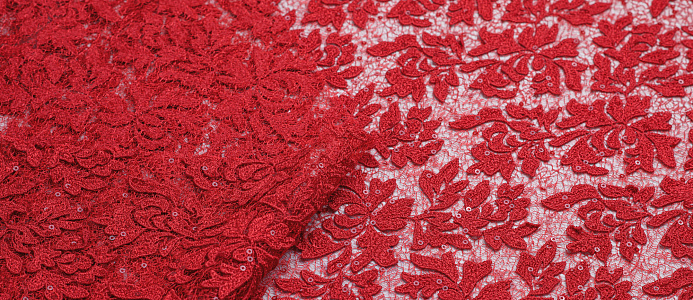 Ткань кружево мелкая пайетка Лилу цв. красный