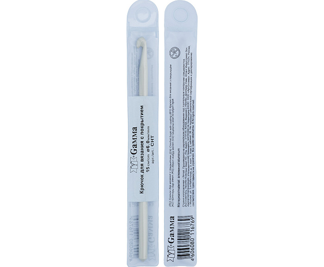 Крючок изготовлен из алюминия, с тефлоновым покрытием для лучшего скольжения пряжи.