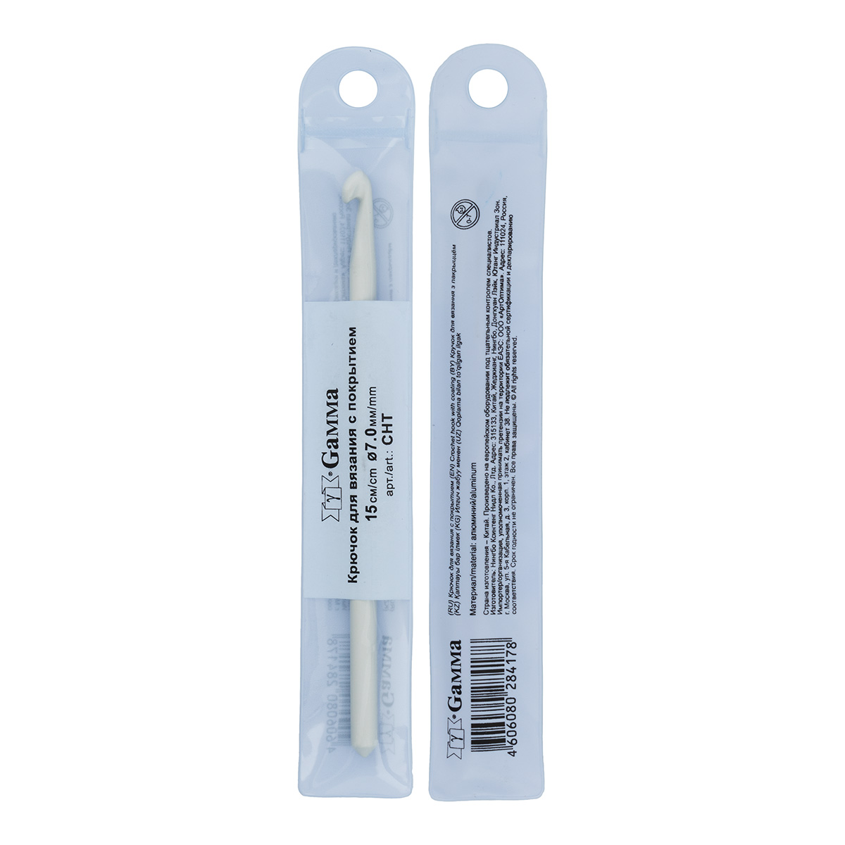 Крючок изготовлен из алюминия, с тефлоновым покрытием для лучшего скольжения пряжи.