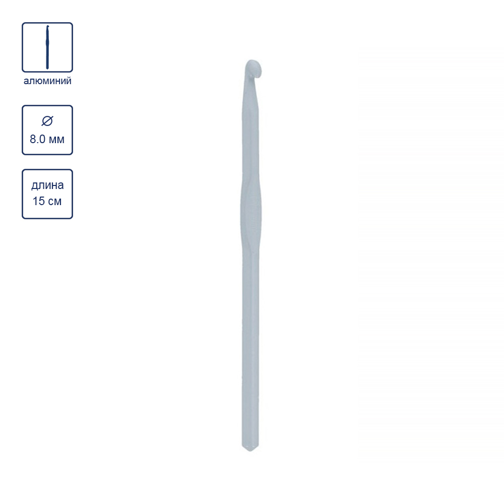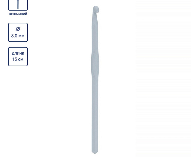 Крючок изготовлен из алюминия, с тефлоновым покрытием для лучшего скольжения пряжи.