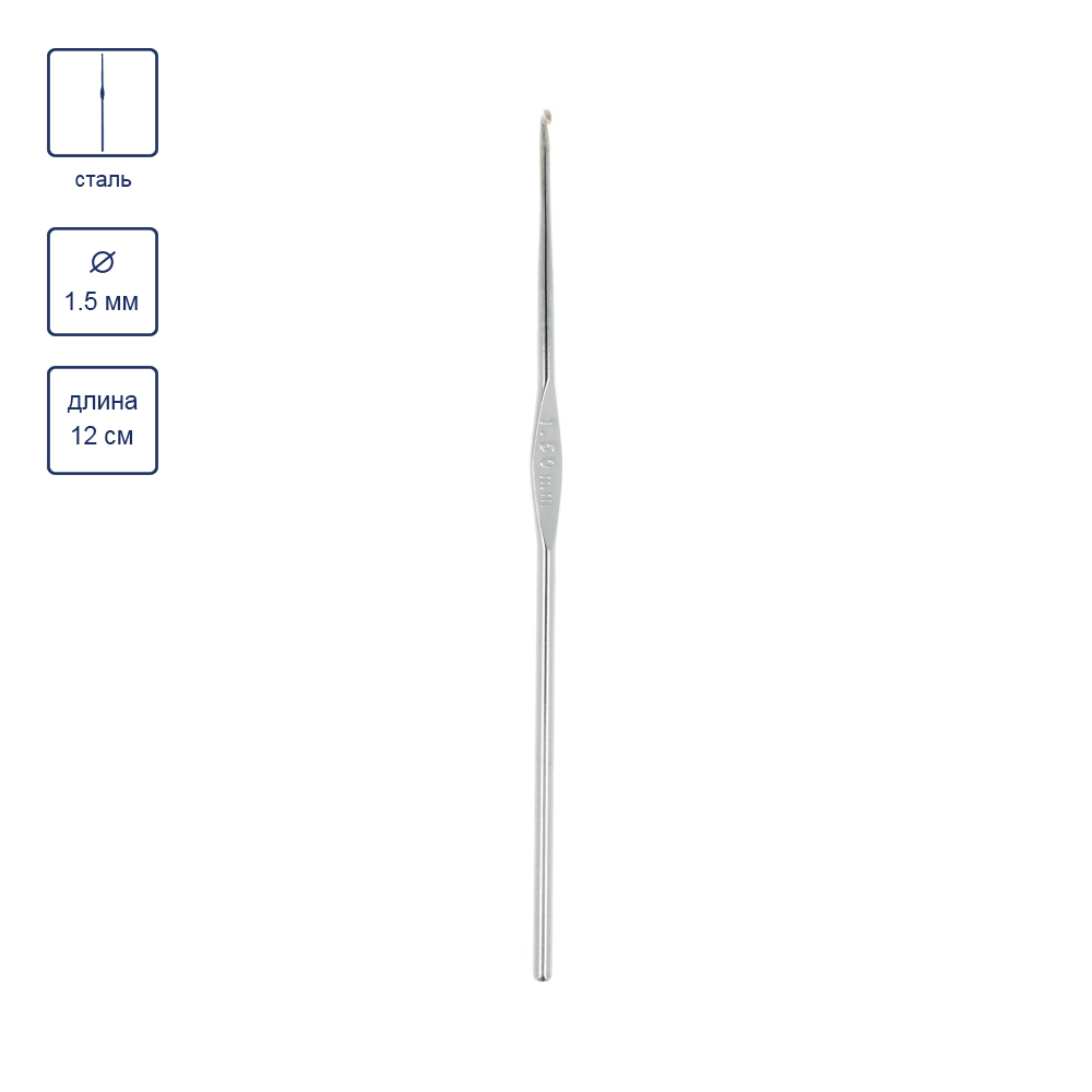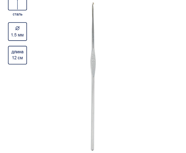 Крючки металлические "Gamma" MCH сталь d 1.5 мм 12 см 12 шт в блистере для вязания ажура тонкой нитью.