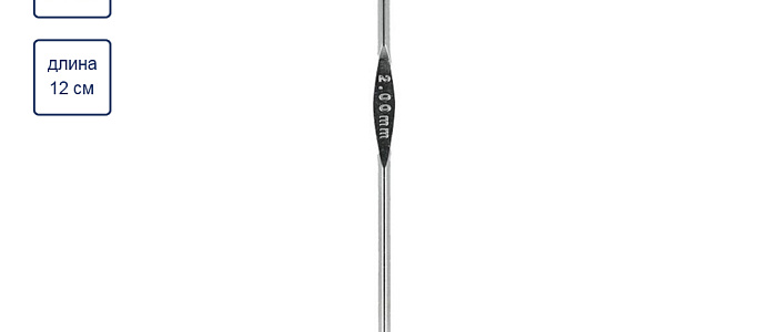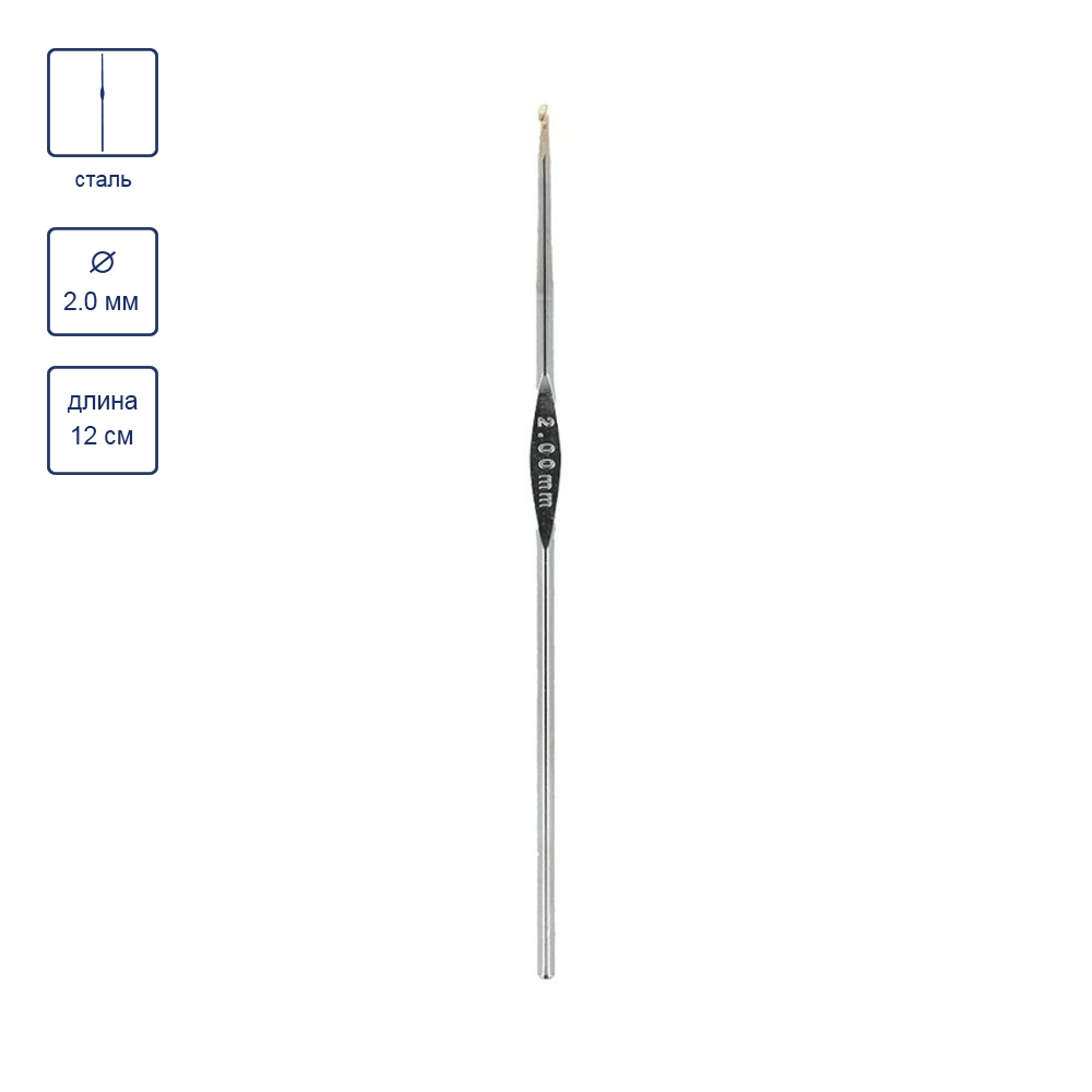 Крючки металлические "Gamma" MCH сталь d 2.0 мм 12 см 12 шт в блистере для вязания ажура тонкой нитью.