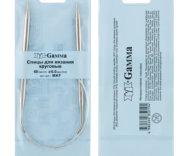 Спицы круговые "GAMMA" MKF сделаны из высокопрочной стали. Марка стали AISI 201, обладает высокой прочностью. При изготовлении AISI 201 применяются новейшие технологии, благодаря чему удается получить сбалансированный химический состав. Он в свою очередь повышает стойкость к коррозии. Леска состоит из металлической скрученной проволоки, с пластиковой обмоткой. Соединение лески и спицы гладкое. Спицы имеют покрытие, благодаря, которому петли хорошо скользят по поверхности спиц. Круговые спицы бывают разных длин, чтобы соответствовать размеру изделия, которое вы вяжете. Вы можете использовать их, чтобы создавать плотные или открытые узоры в зависимости от вашей техники вязания. Круговые спицы могут быть очень удобными, особенно при работе с большими проектами, так как они позволяют равномерно распределять вес изделия на кабель и не требуют соединения в конце каждого ряда, как при использовании обычных спиц.