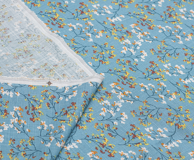 Ткань плательная Лен цв. серо-голубой