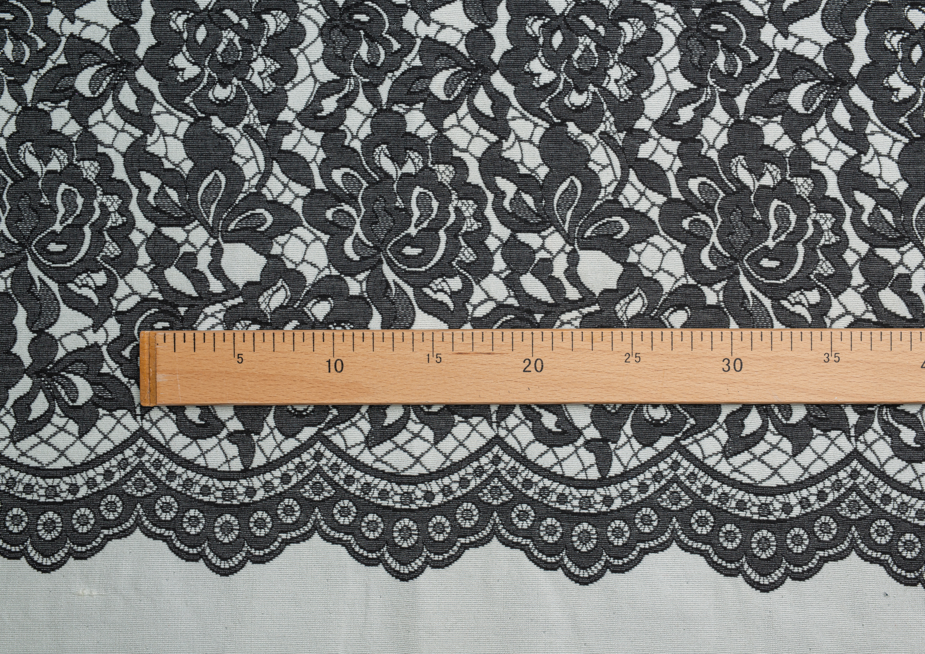 Режем ткань от 30 смс шагом в 10 см. Тесьму и кружево режем от 1 метра
