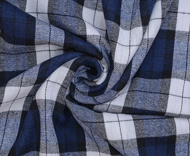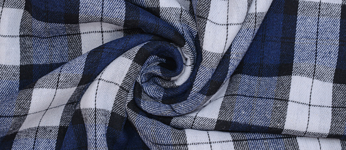 Ткань Фланель Рубашечная Клетка № 4 цв. белый/синий