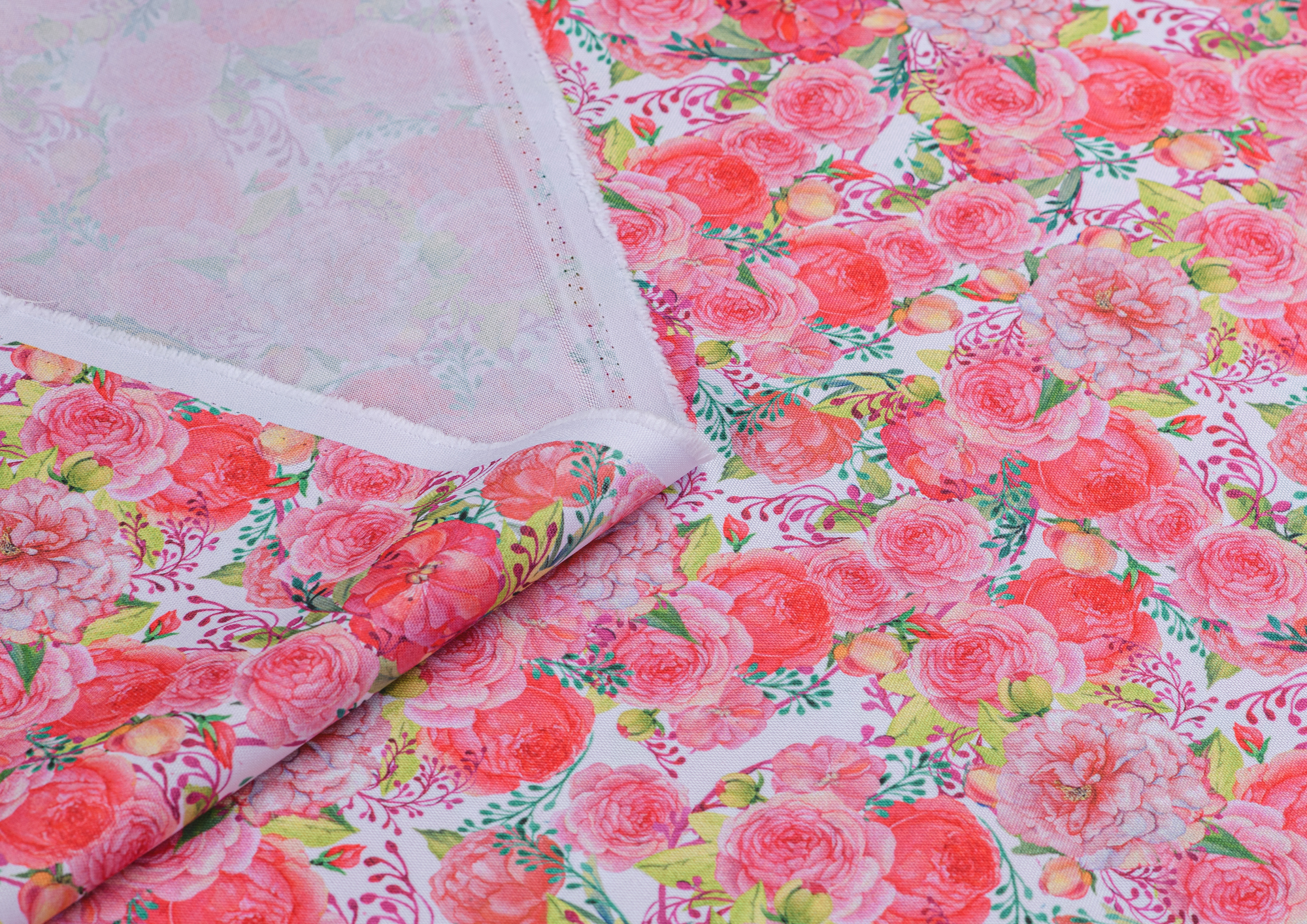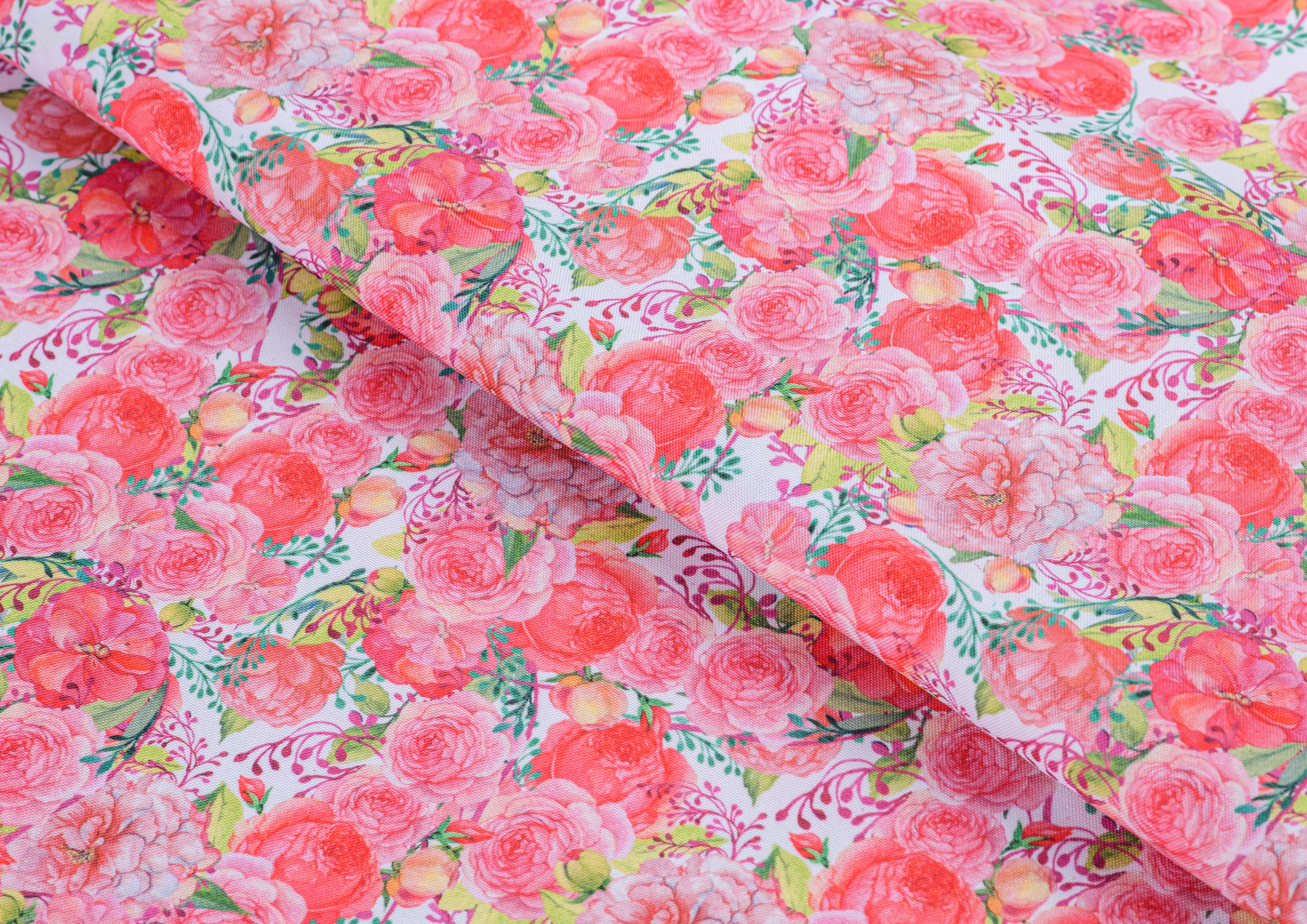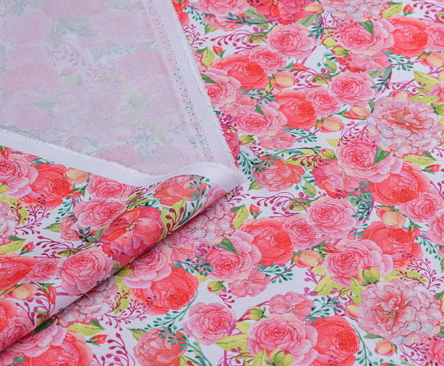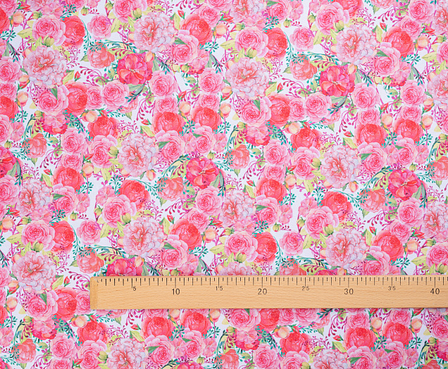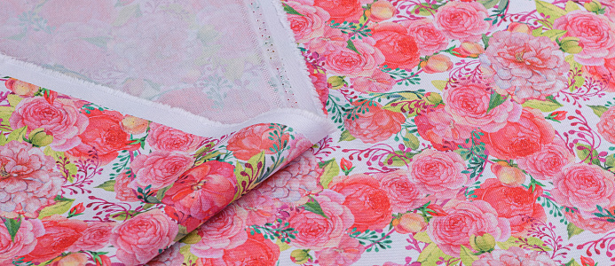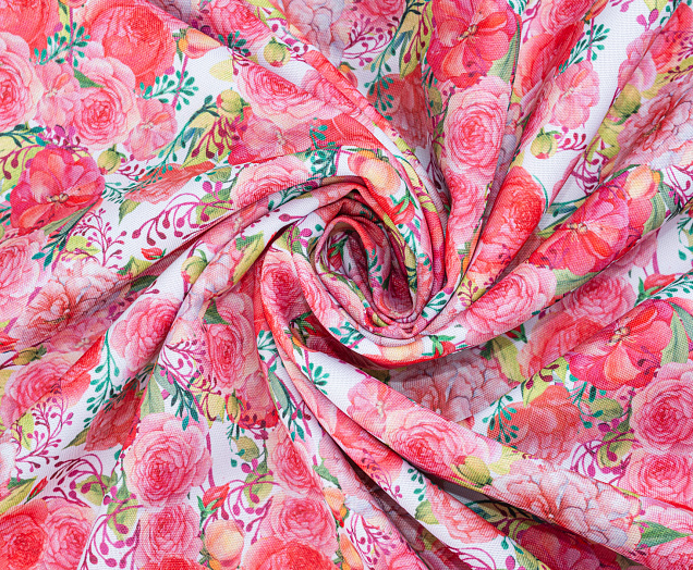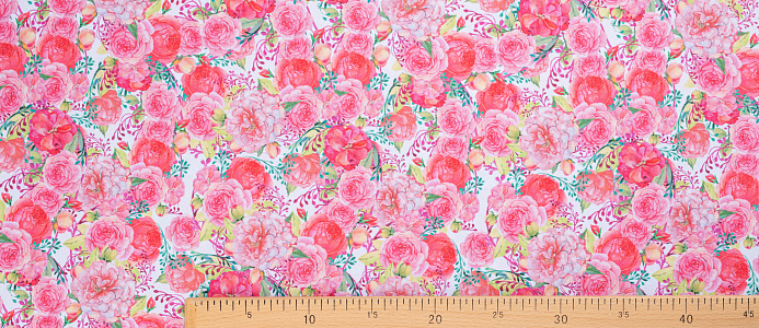 Ткань Габардин принт Нежно-розовые розочки