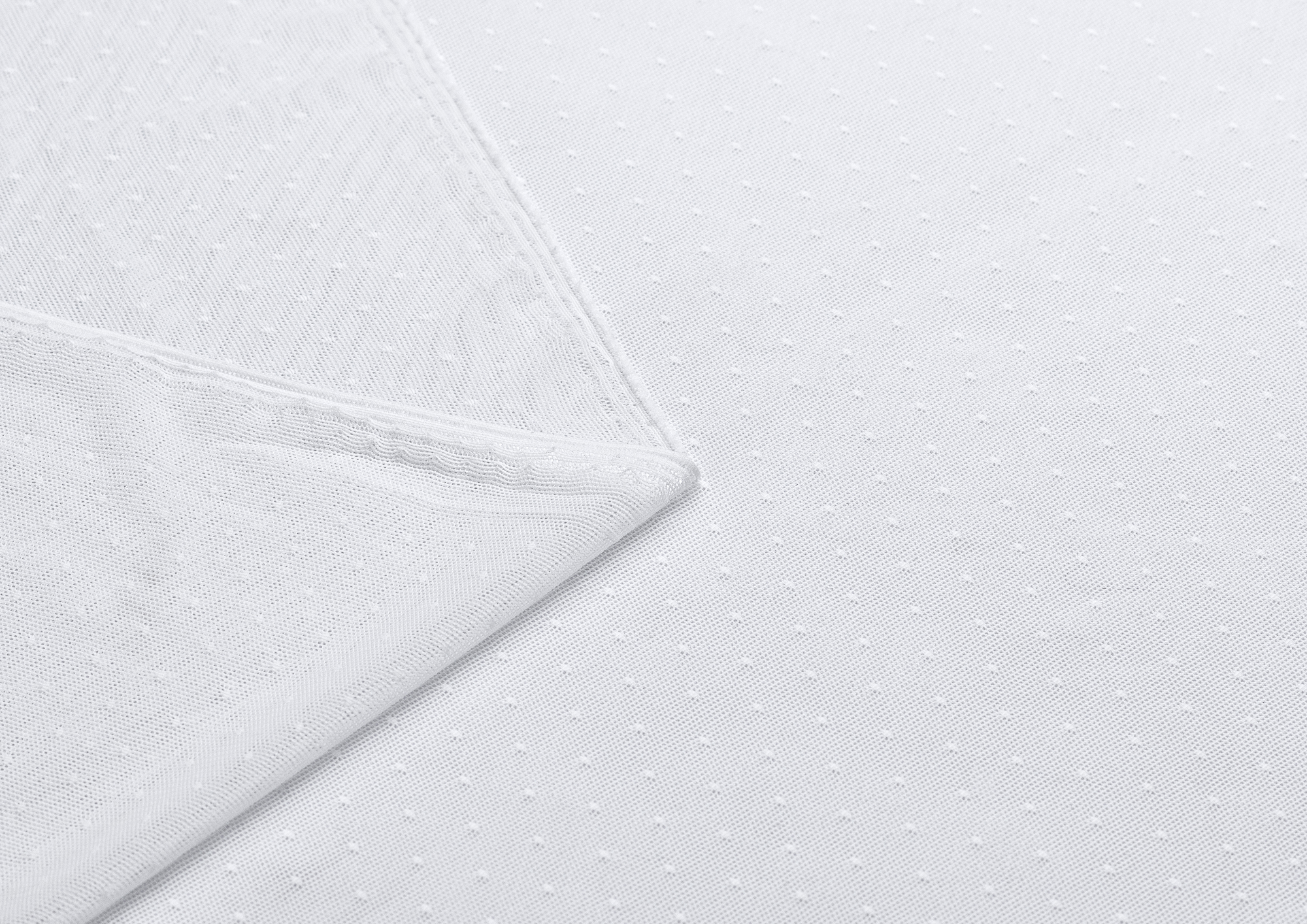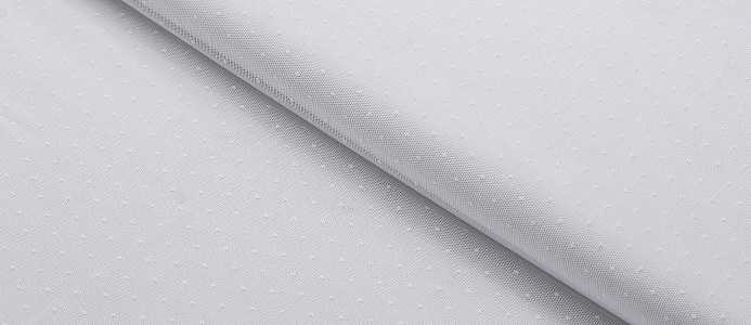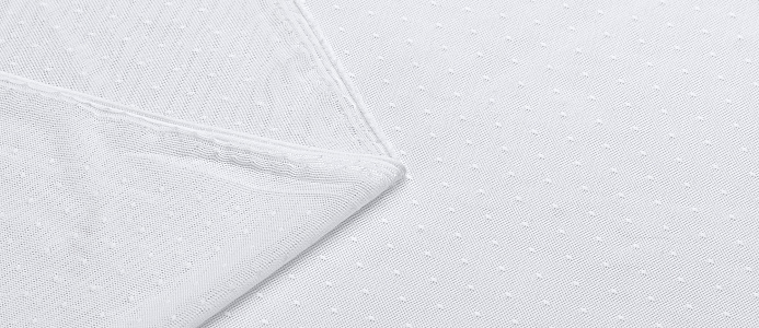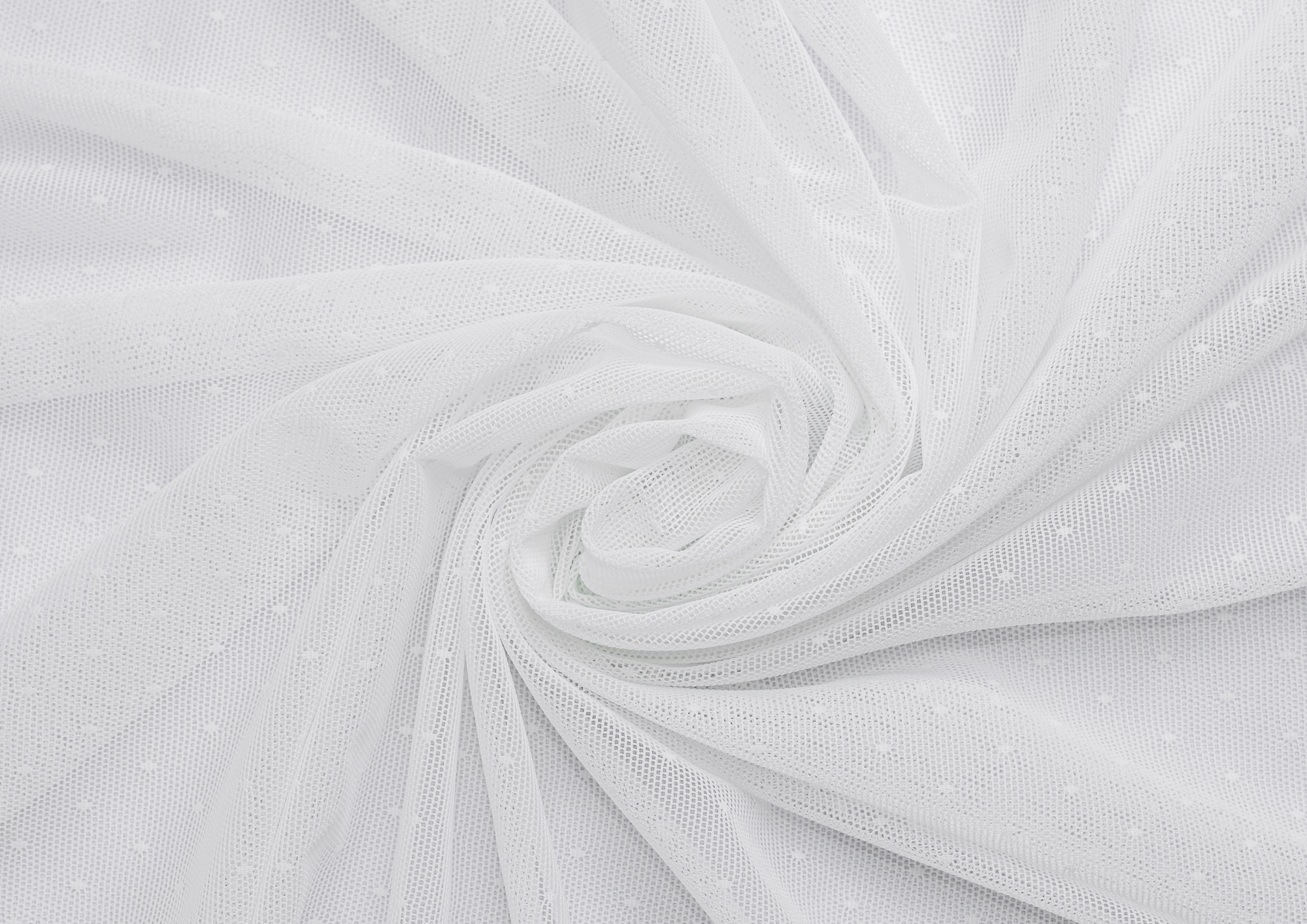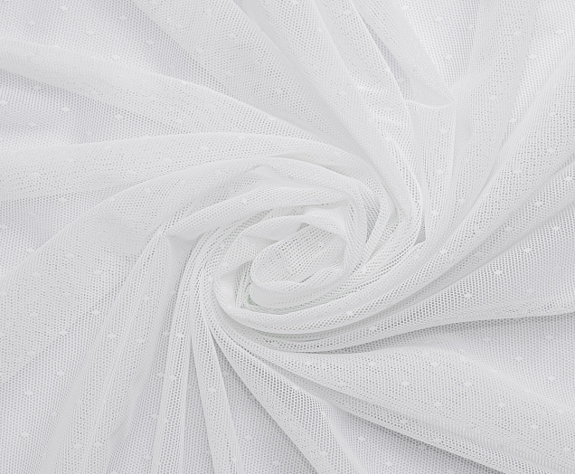 Тонкая эластичная сетка. Мягкая, приятная на ощупь. Сетка прекрасно драпируется. Горох d 2 мм. расположен равномерно по всему полотну, а друг от друга на расстоянии 10 мм. Сетчатая ткань используется для рукоделия, пошива нижнего белья, нарядной одежды и аксессуаров.