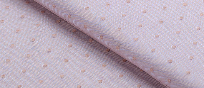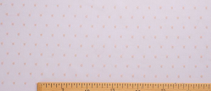 Тонкая эластичная сетка. Мягкая, приятная на ощупь. Сетка прекрасно драпируется. Горох d 4 мм. расположен равномерно по всему полотну. Сетчатая ткань используется для рукоделия, пошива нижнего белья, нарядной одежды и аксессуаров.