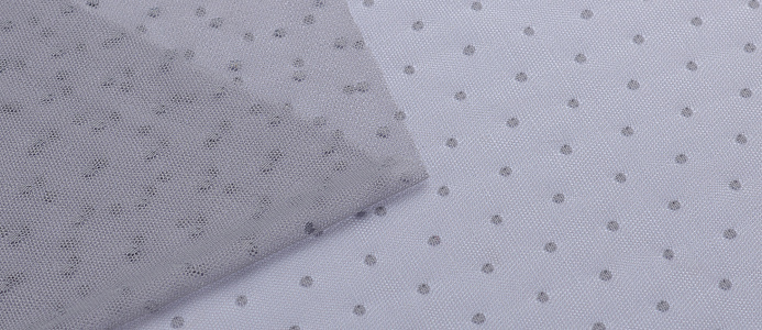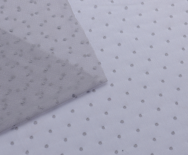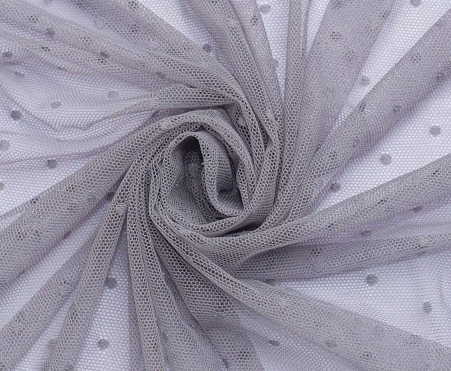 Тонкая эластичная сетка. Мягкая, приятная на ощупь. Сетка прекрасно драпируется. Горох d 4 мм. расположен равномерно по всему полотну. Сетчатая ткань используется для рукоделия, пошива нижнего белья, нарядной одежды и аксессуаров.