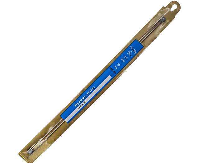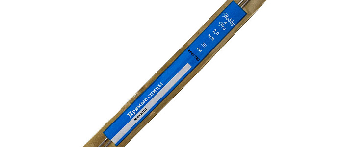 Прямые спицы стандартной длины 35 см. Изготовлены из металлического сплава. Хорошо скользят, подходят для работы с тонкой пряжей – грубой шерстяной, из немерсеризованного хлопка, акриловой.