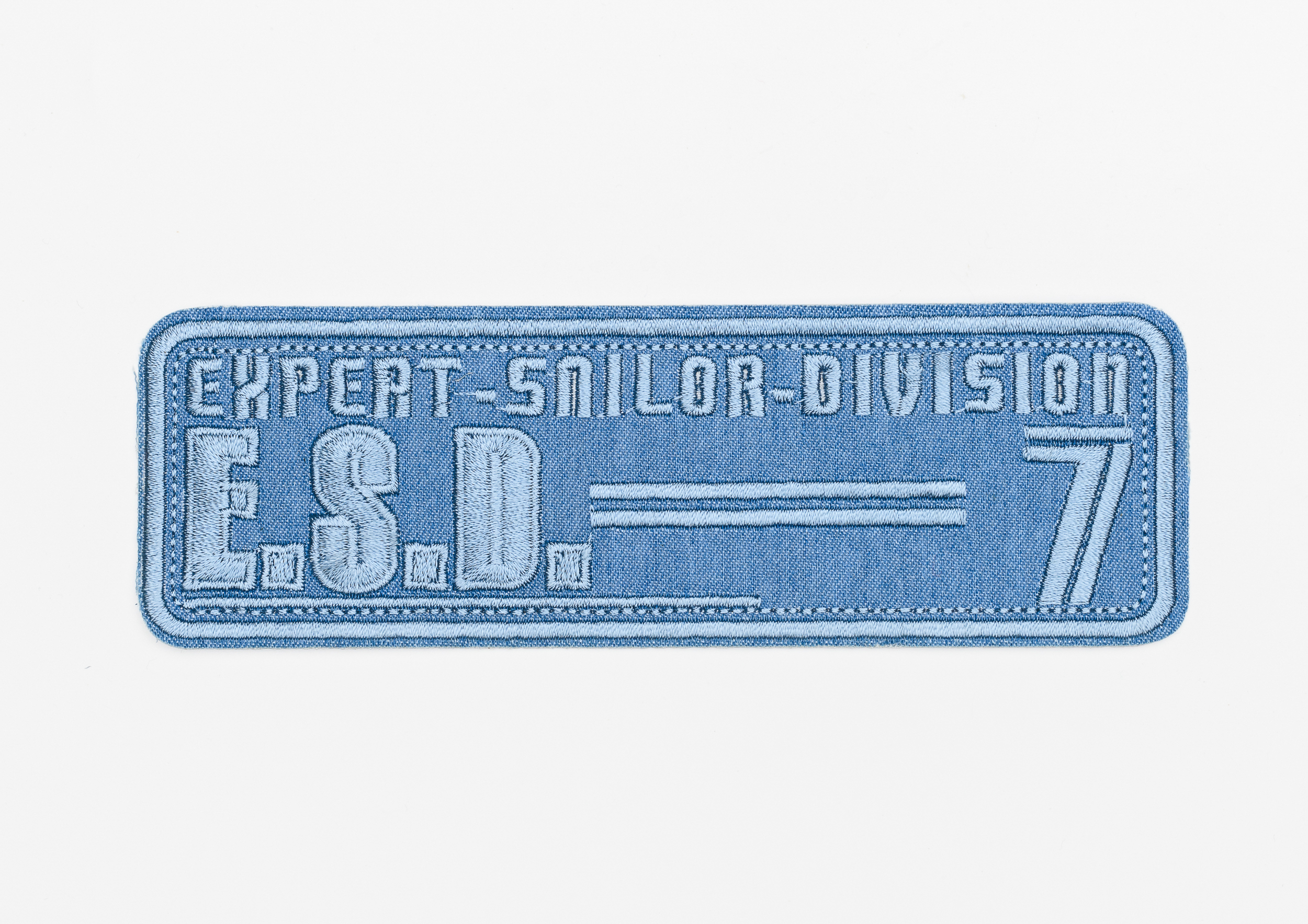 Джинсовая термоаппликация, крепится с помощью утюга.