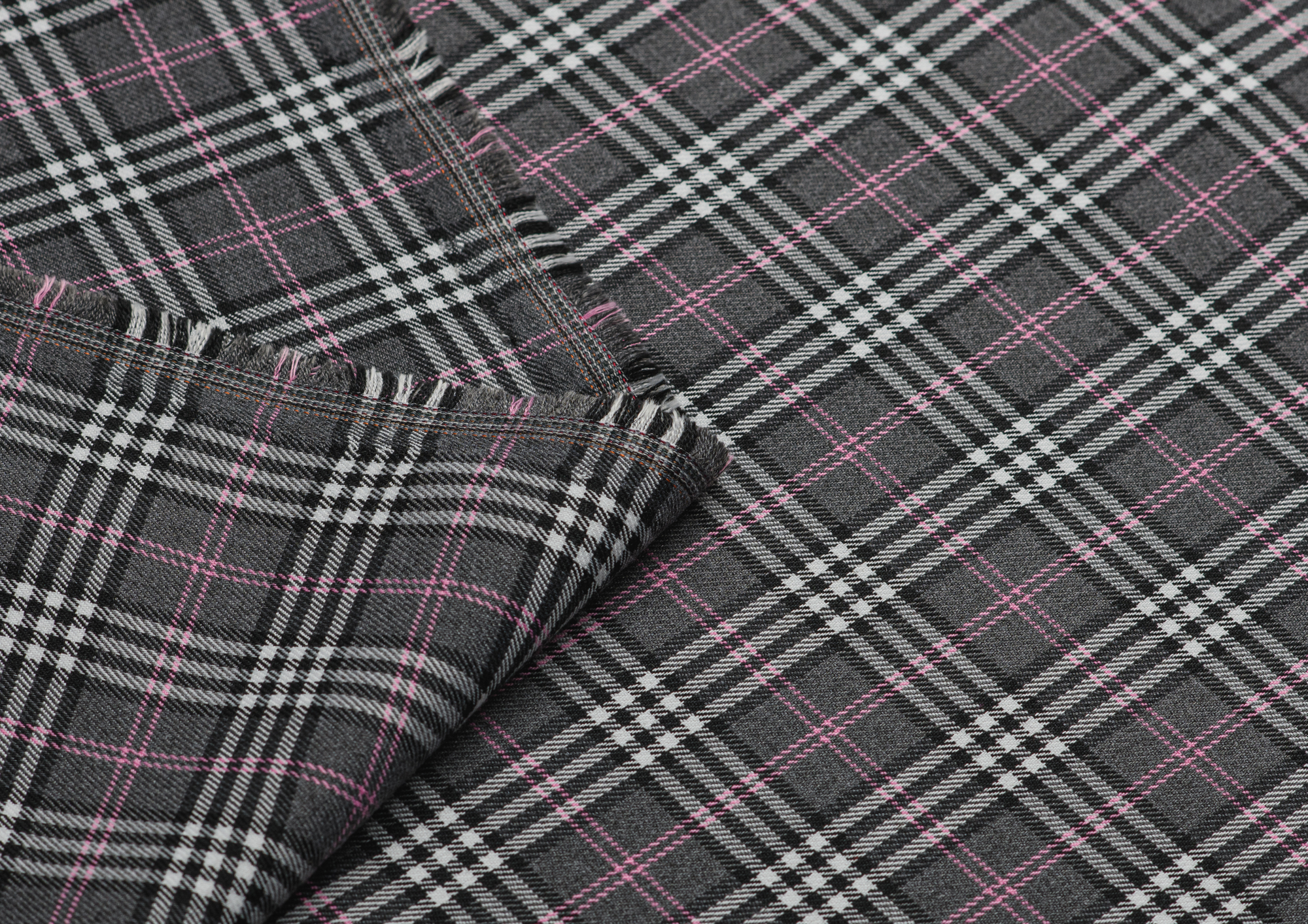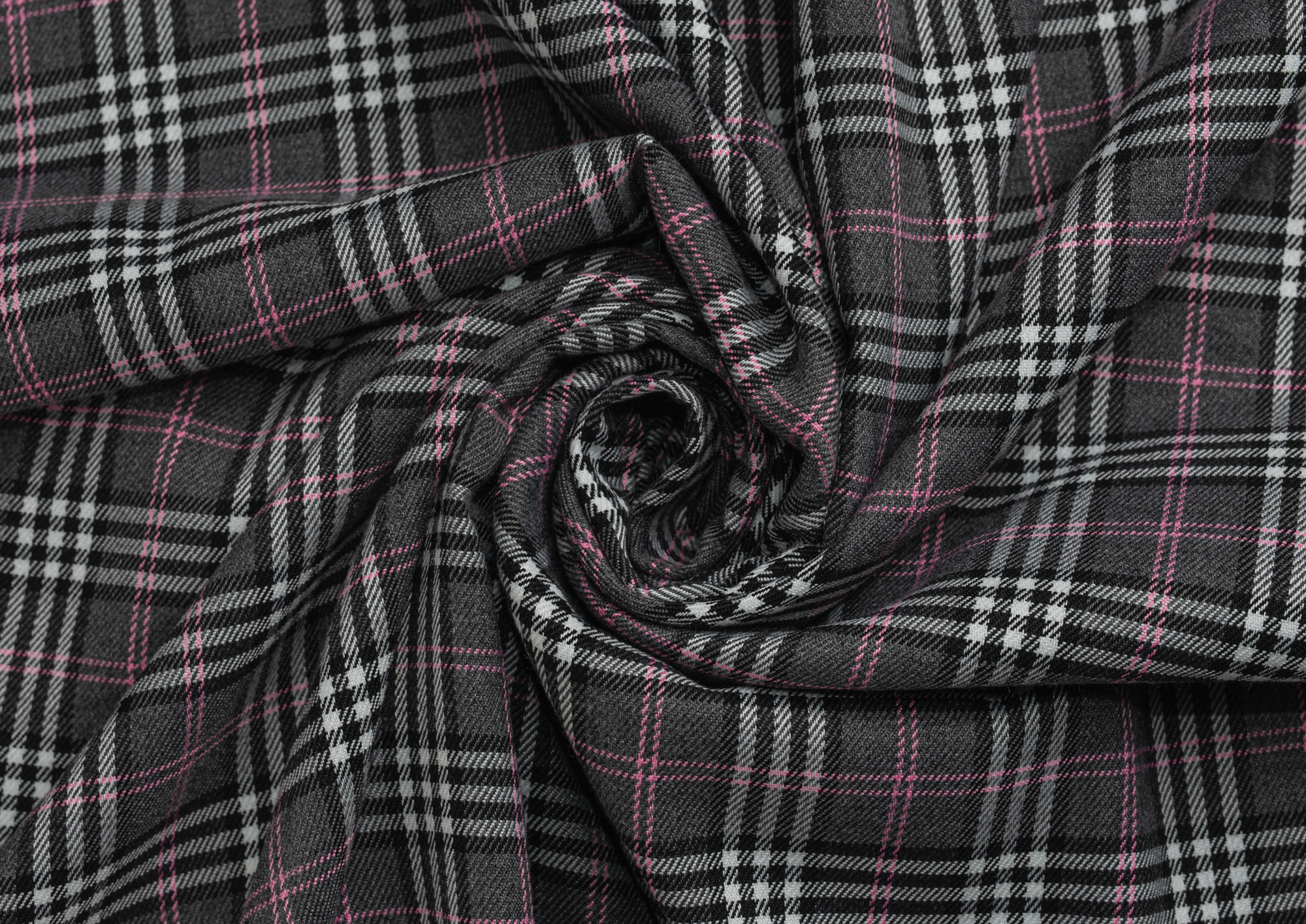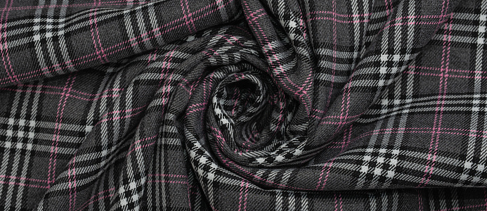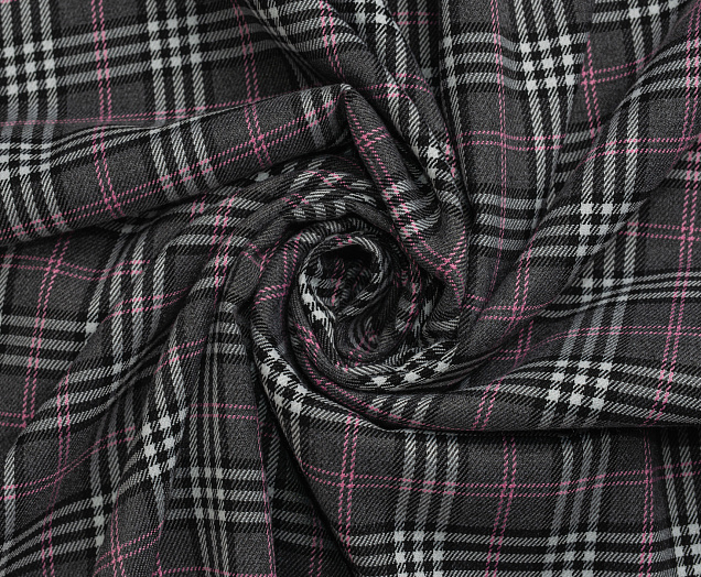 Ткань костюмная 3567 Клетка цв. белый/серый/розовый
