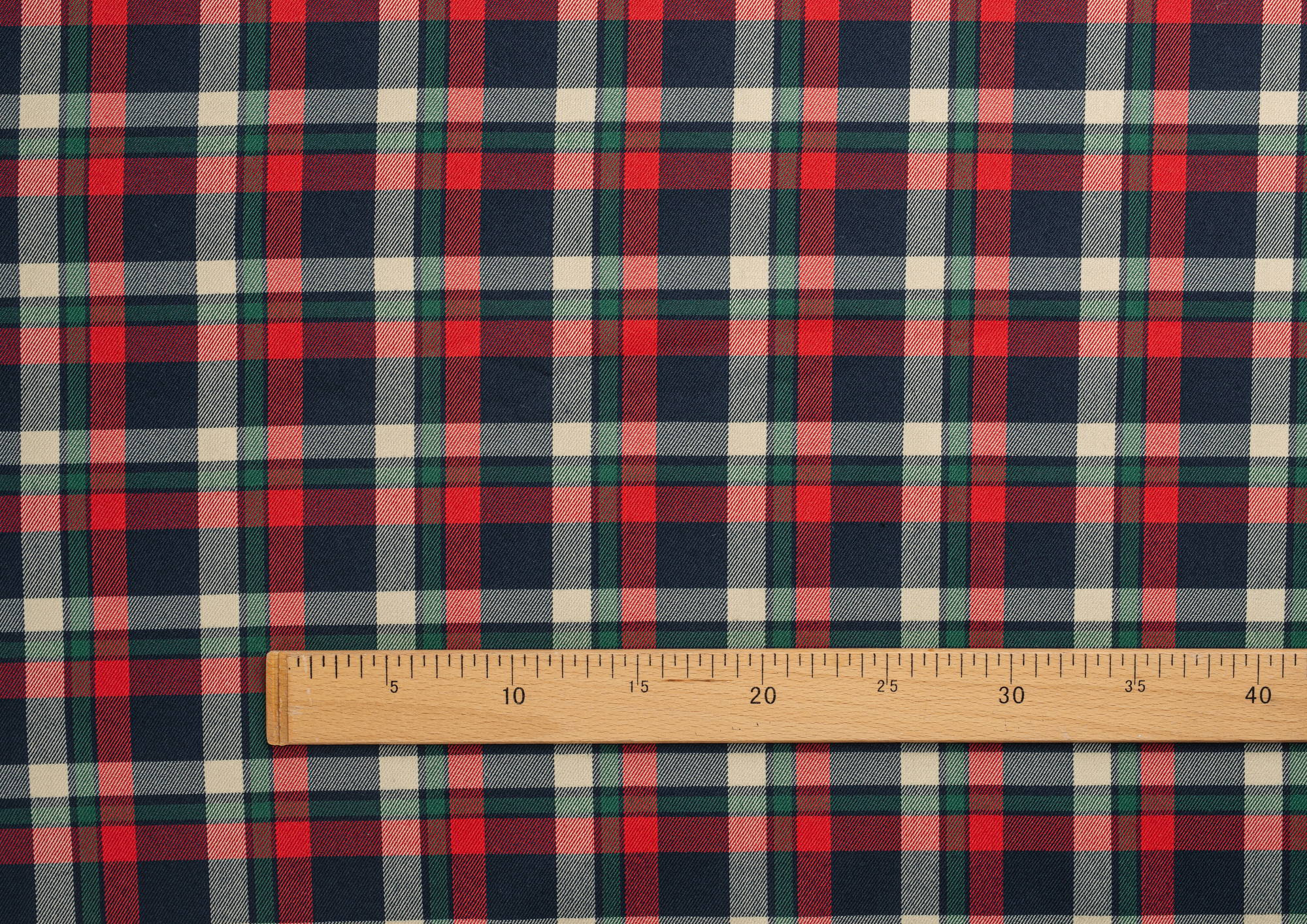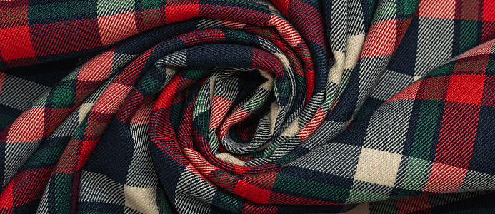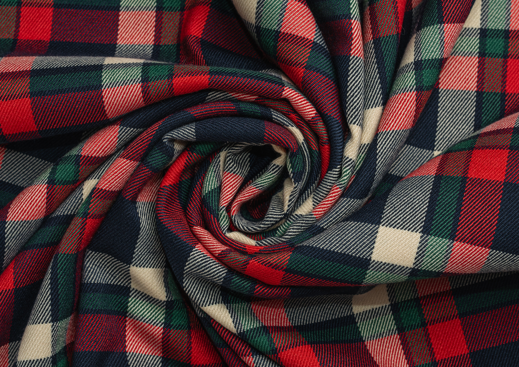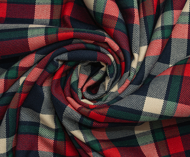 Ткань костюмная 3567 Клетка цв. белый/зеленый/красный