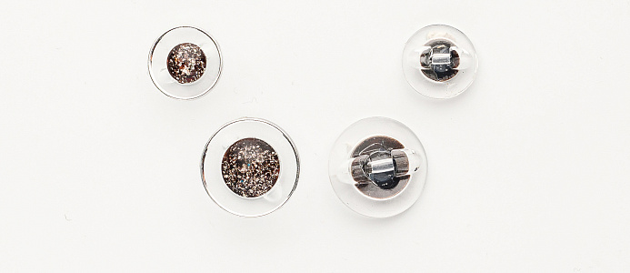 Пуговицы АК01 прозрачные ободок серебро 32L