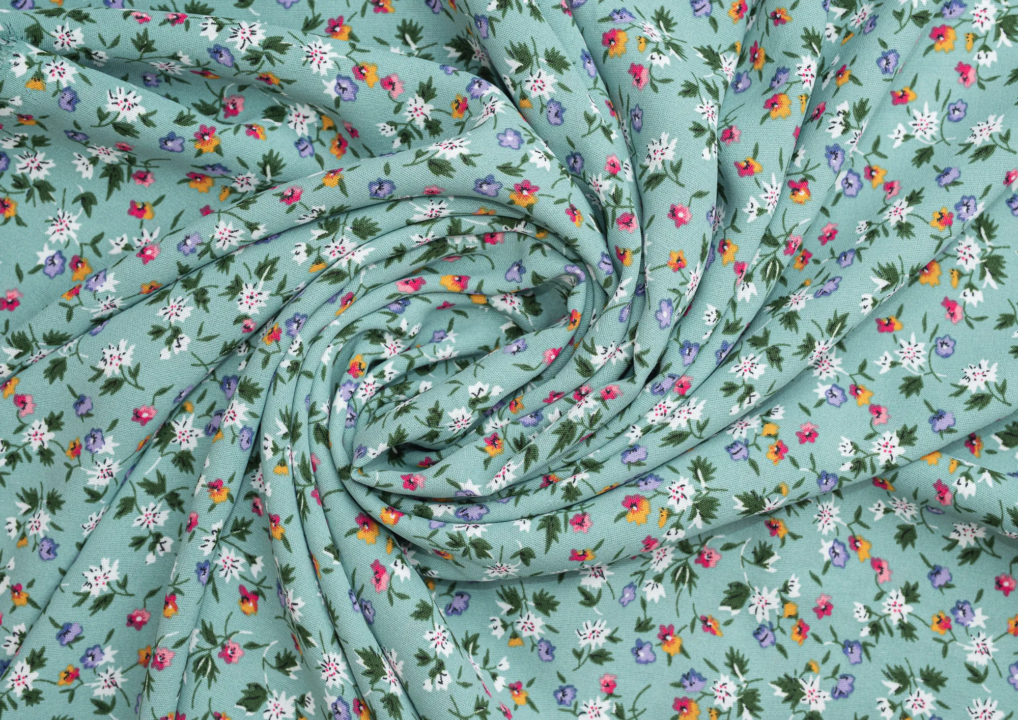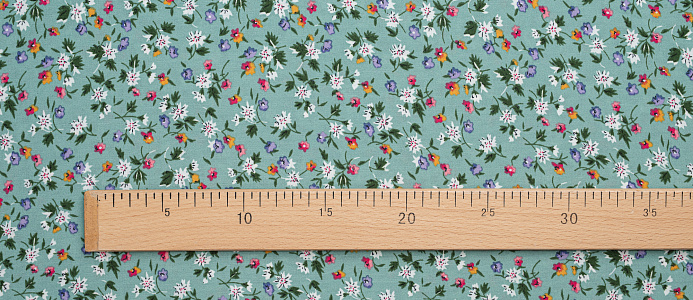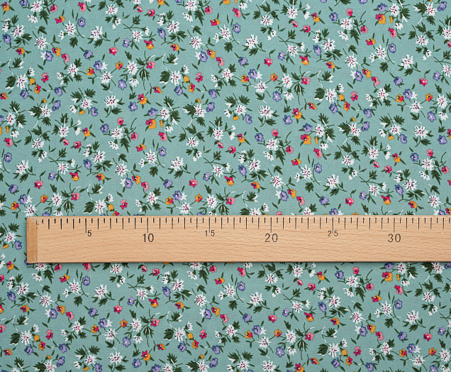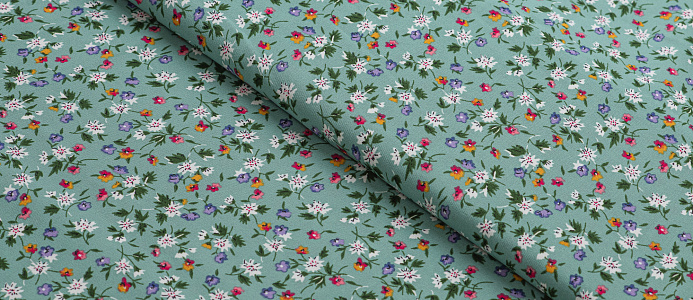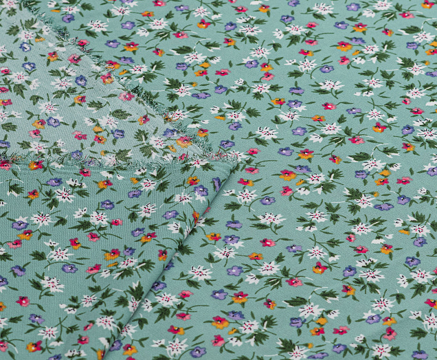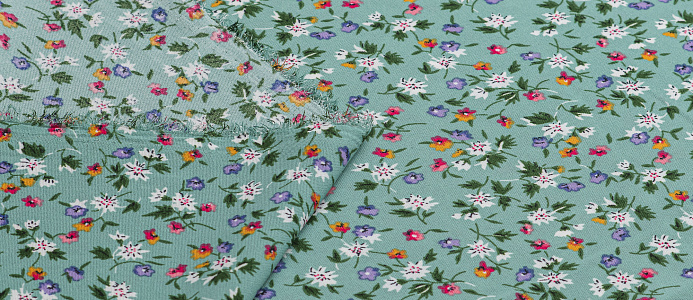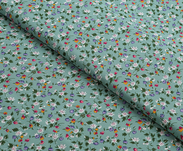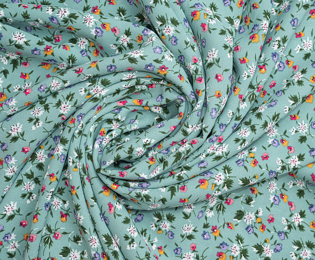 Ткань Креп Келли принт Белые цветы на зеленом