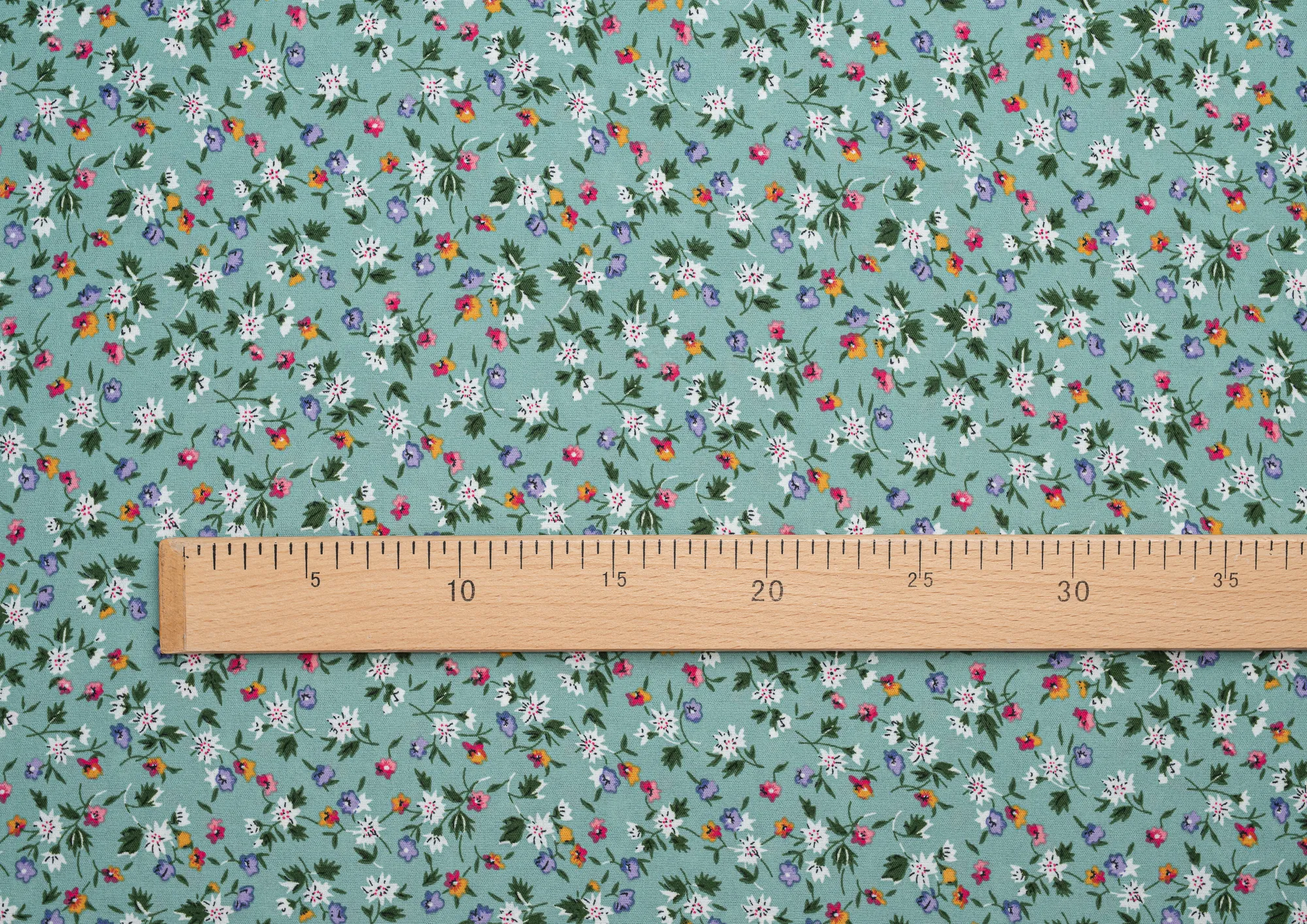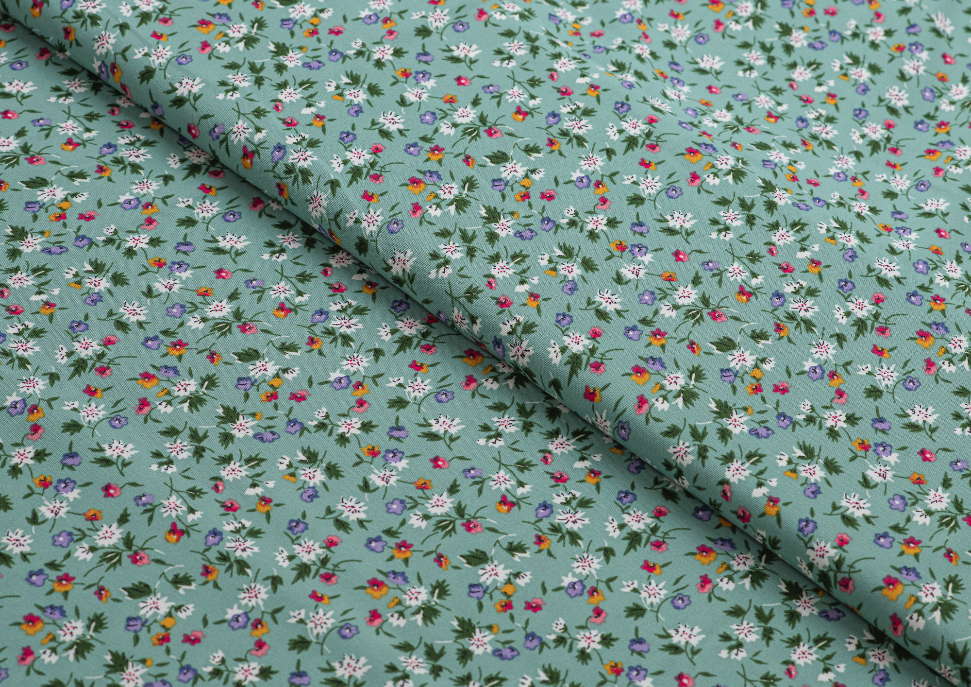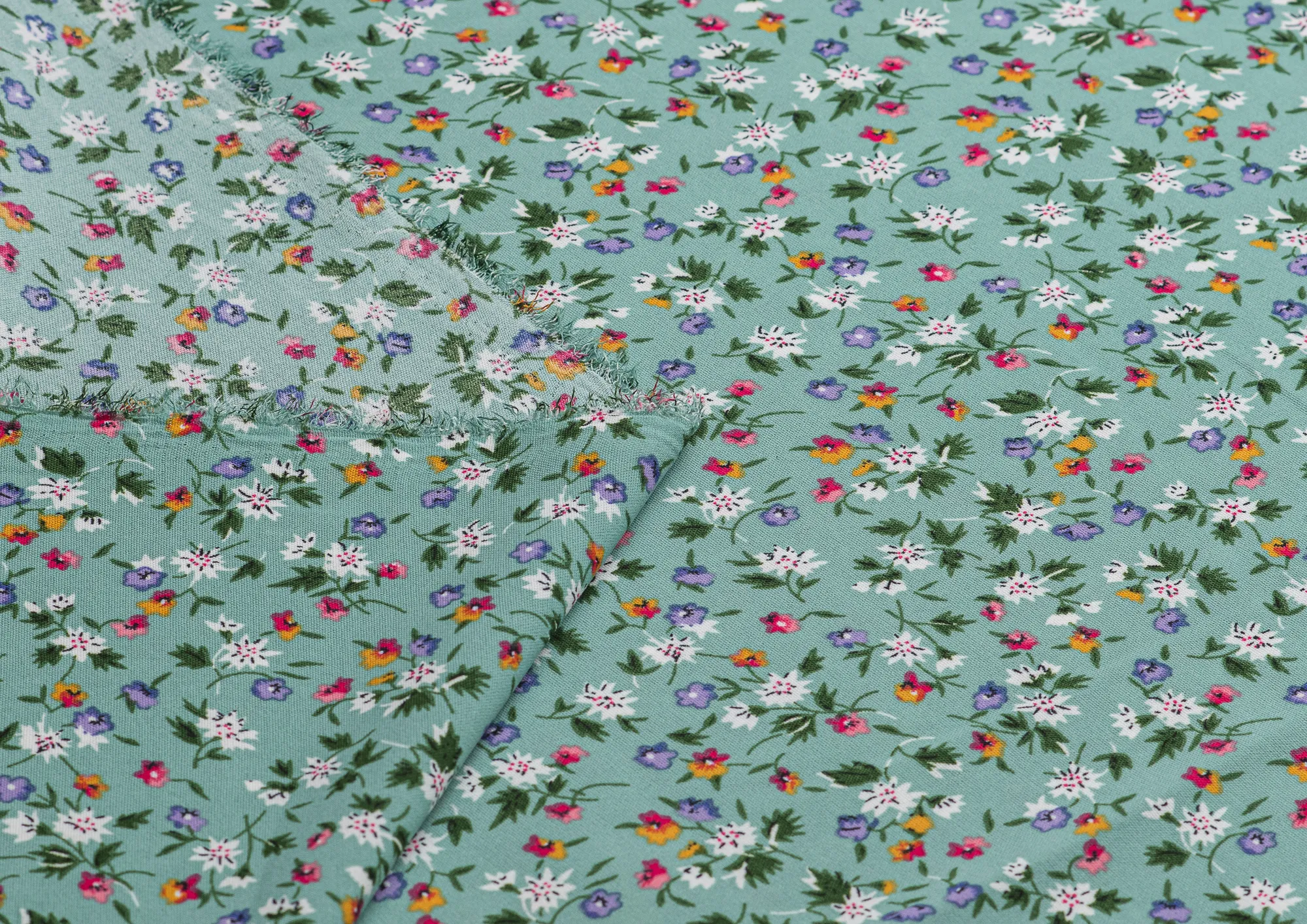 Ткань Креп Келли принт Белые цветы на зеленом
