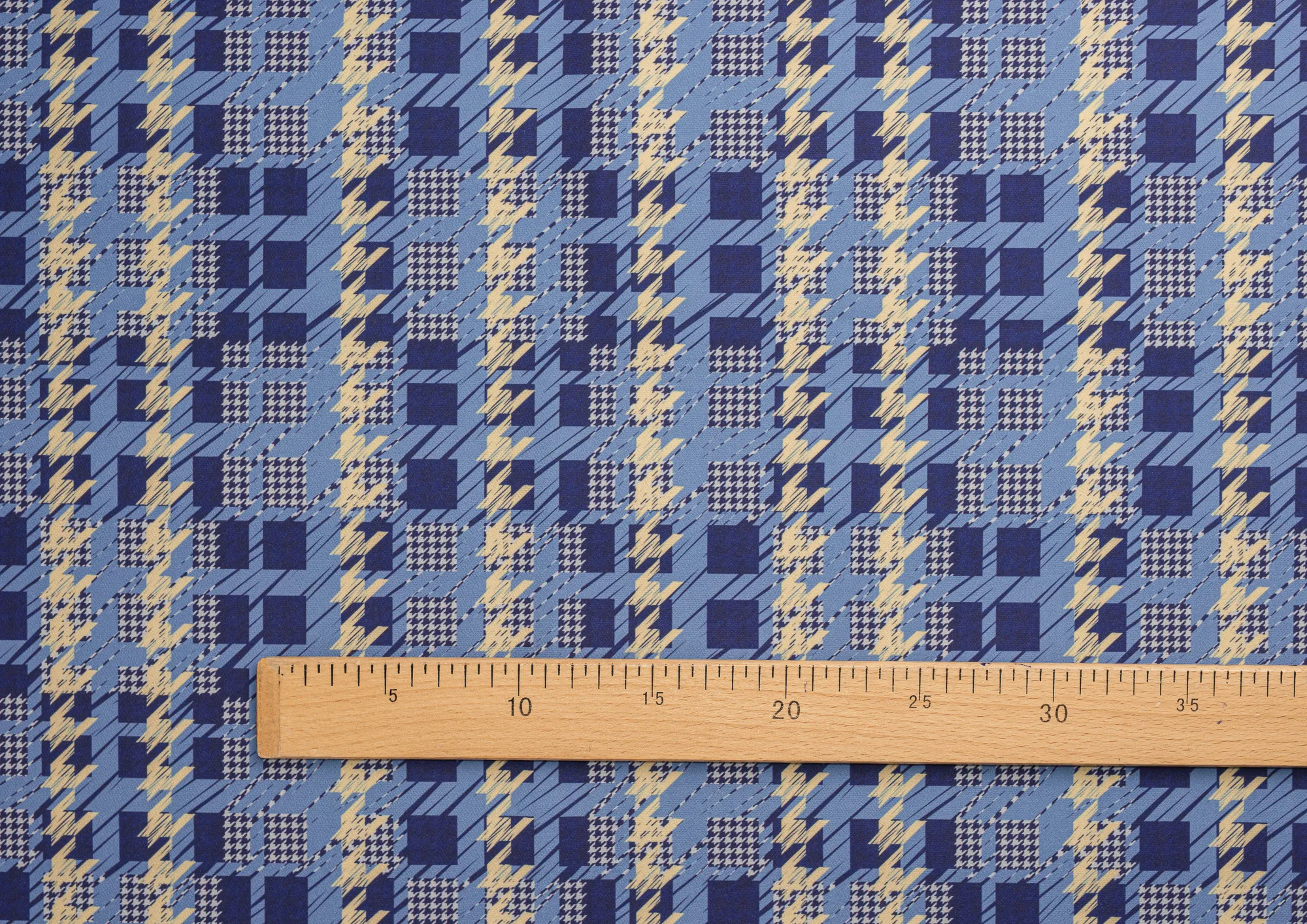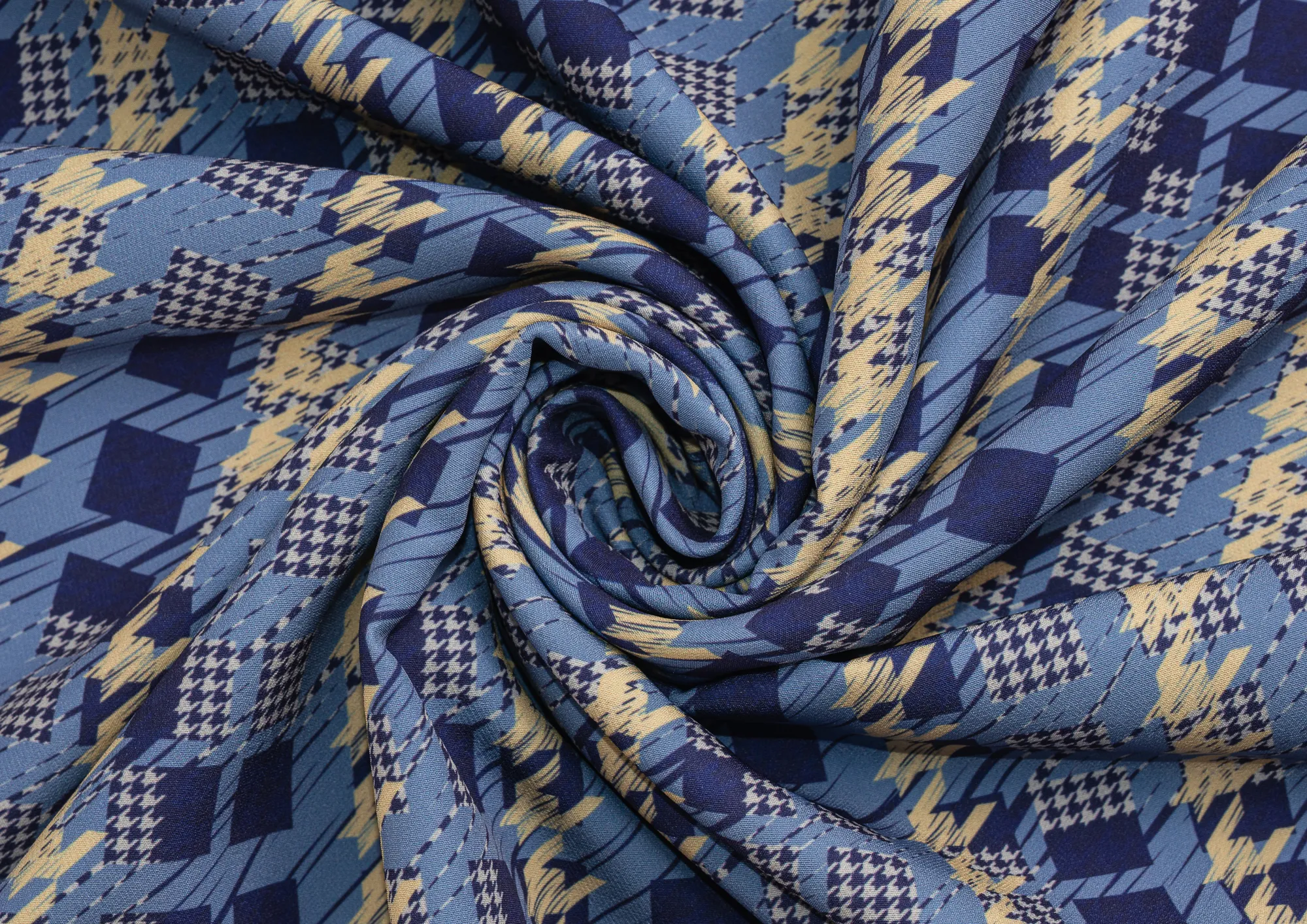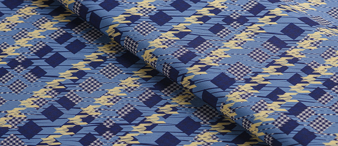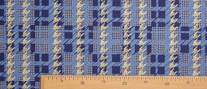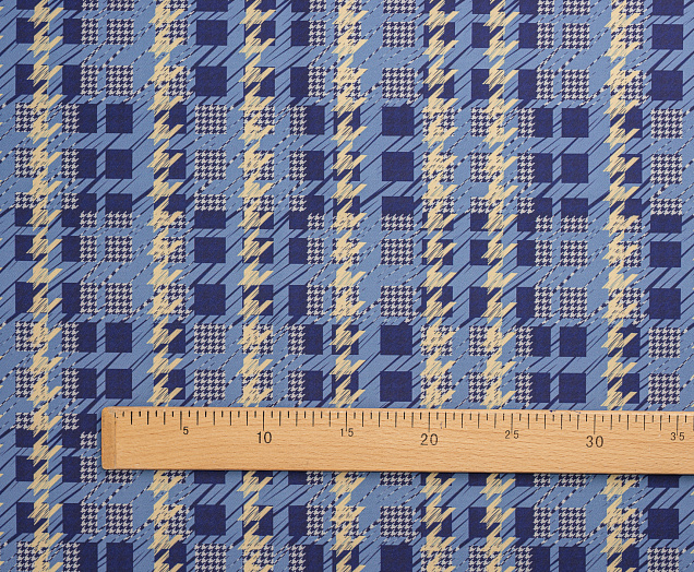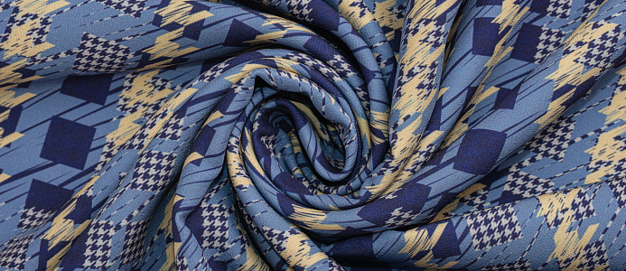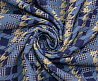 Ткань костюмная Барби Гусиная лапка принт Сине-желтая абстракция
