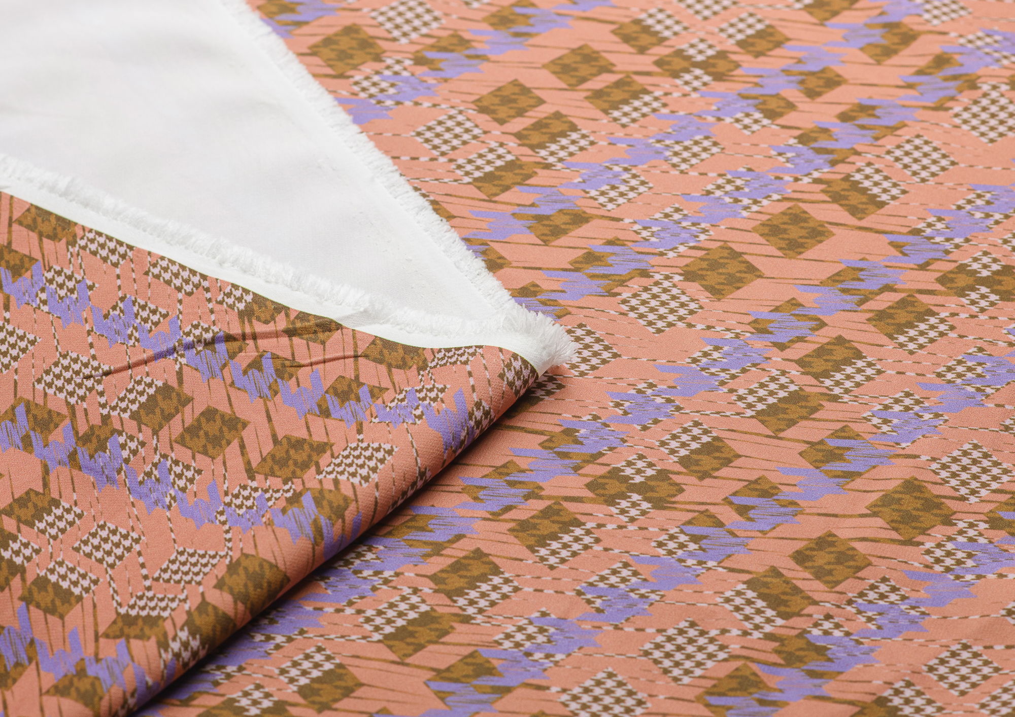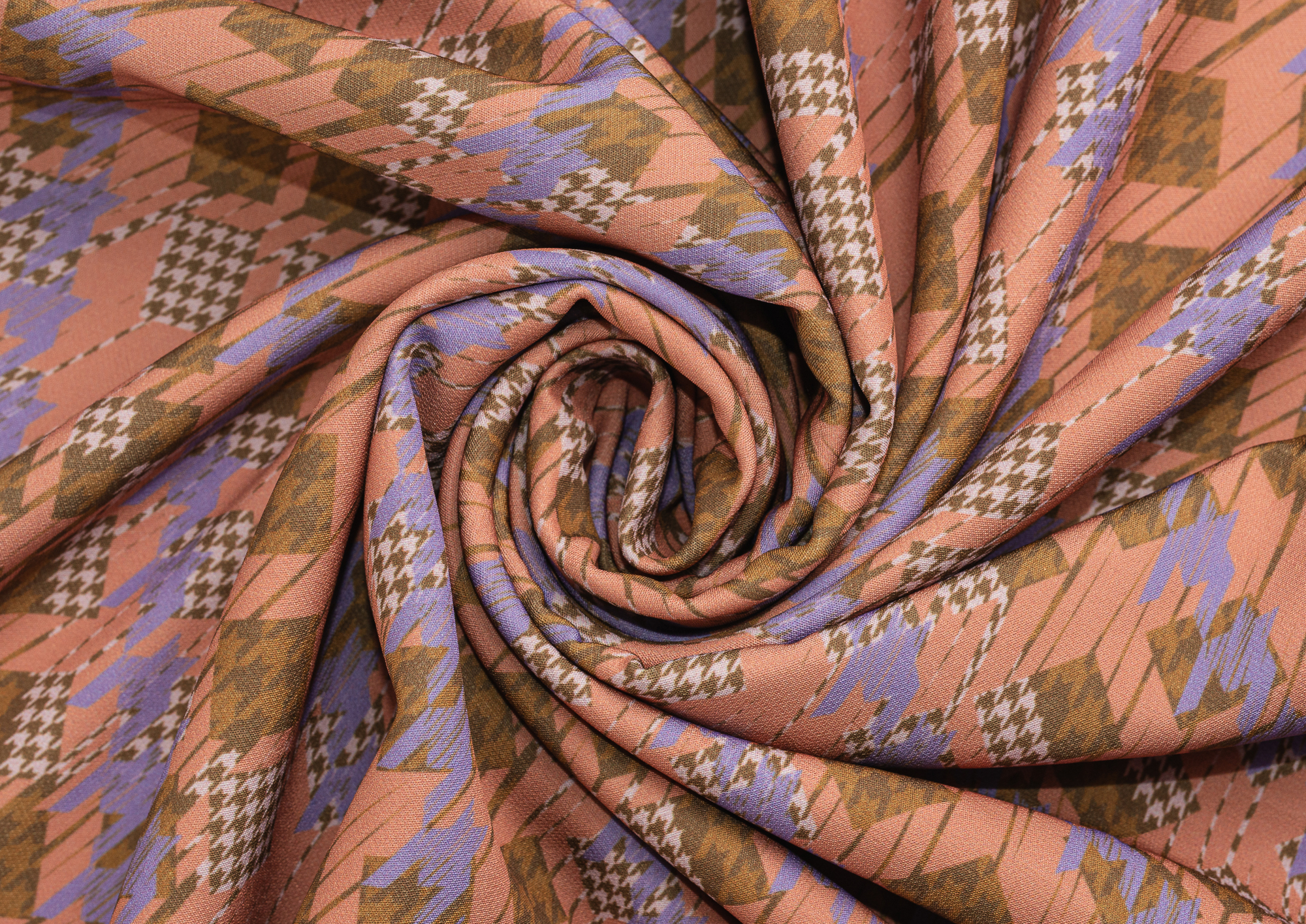 Ткань костюмная Барби Гусиная лапка принт Терракотовая абстракция