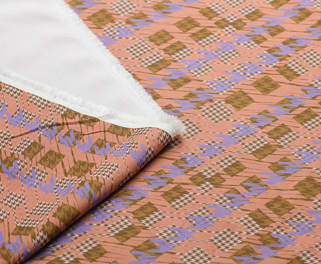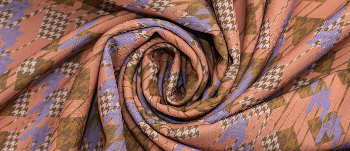 Мягкая, но плотная плательно-костюмная ткань. Поверхность гладкая. Ткань в меру эластичная, что дает определенный комфорт в носке. Яркий принт по всему полотну. Подходит для изготовления костюмов, брюк, платьев.