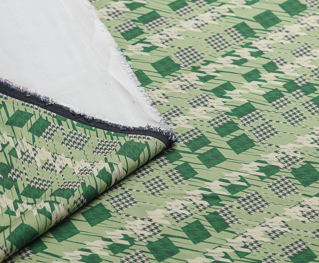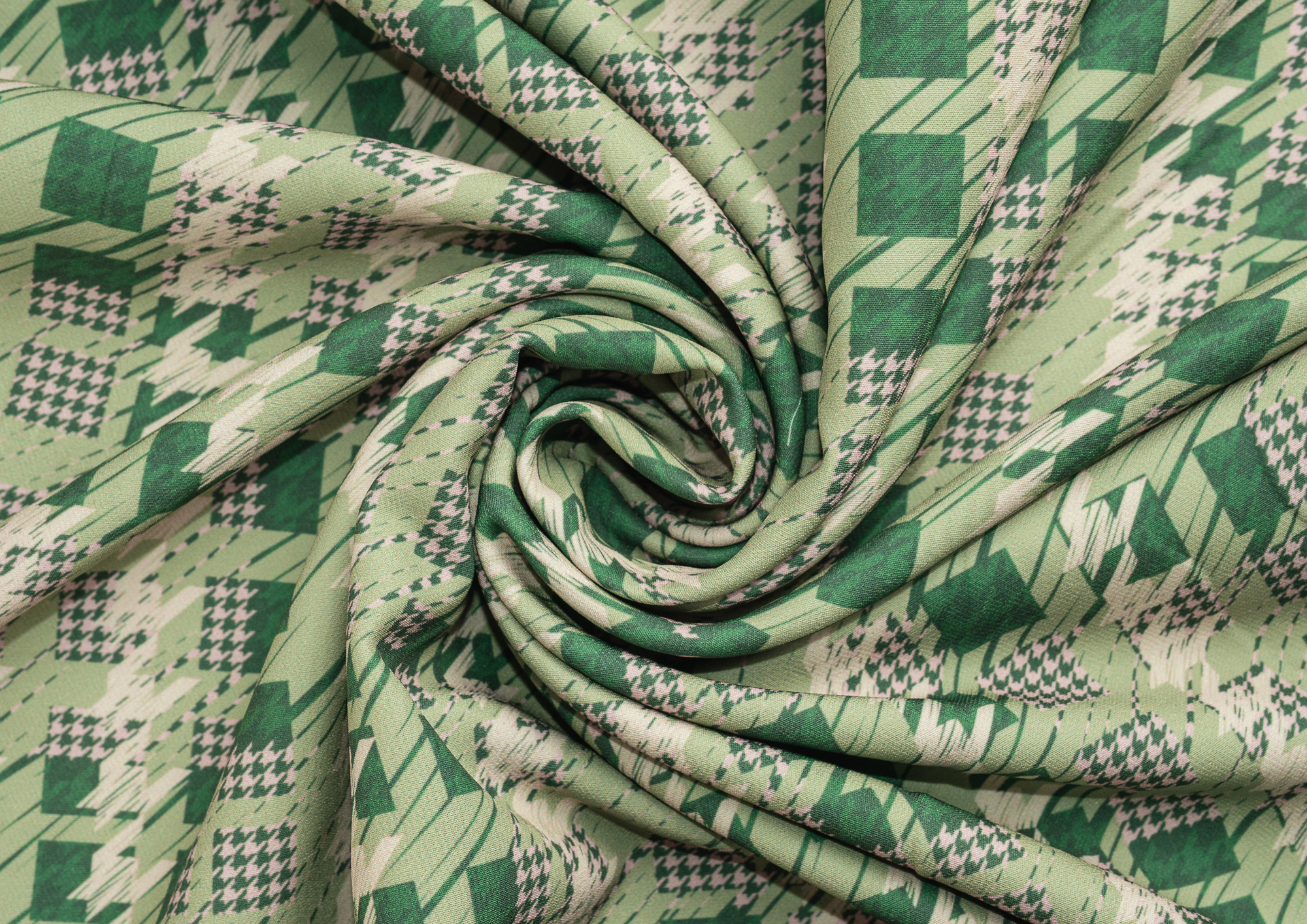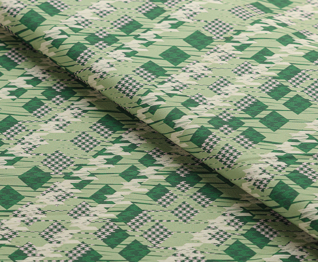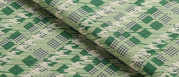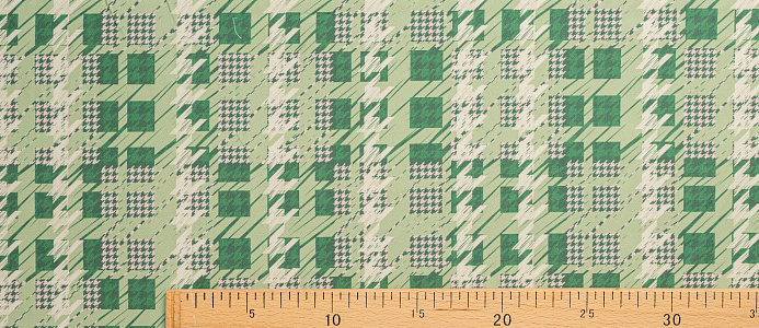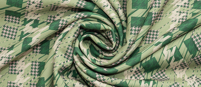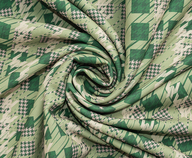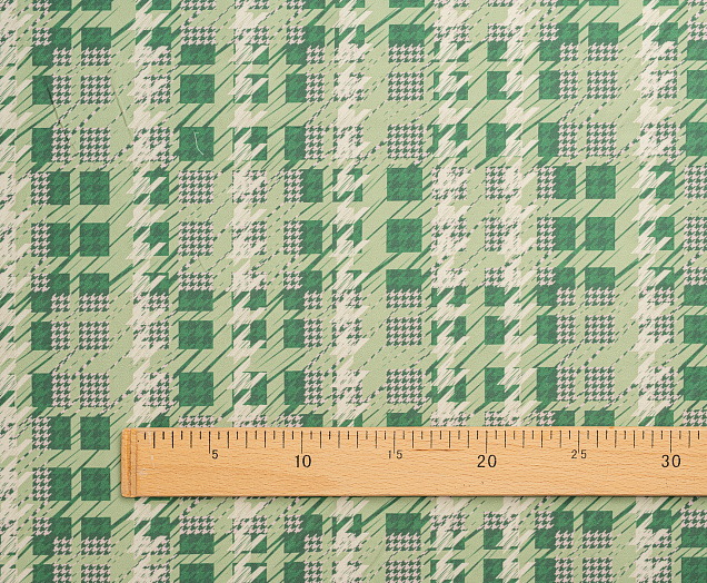 Ткань костюмная Барби Гусиная лапка принт Зеленая абстракция