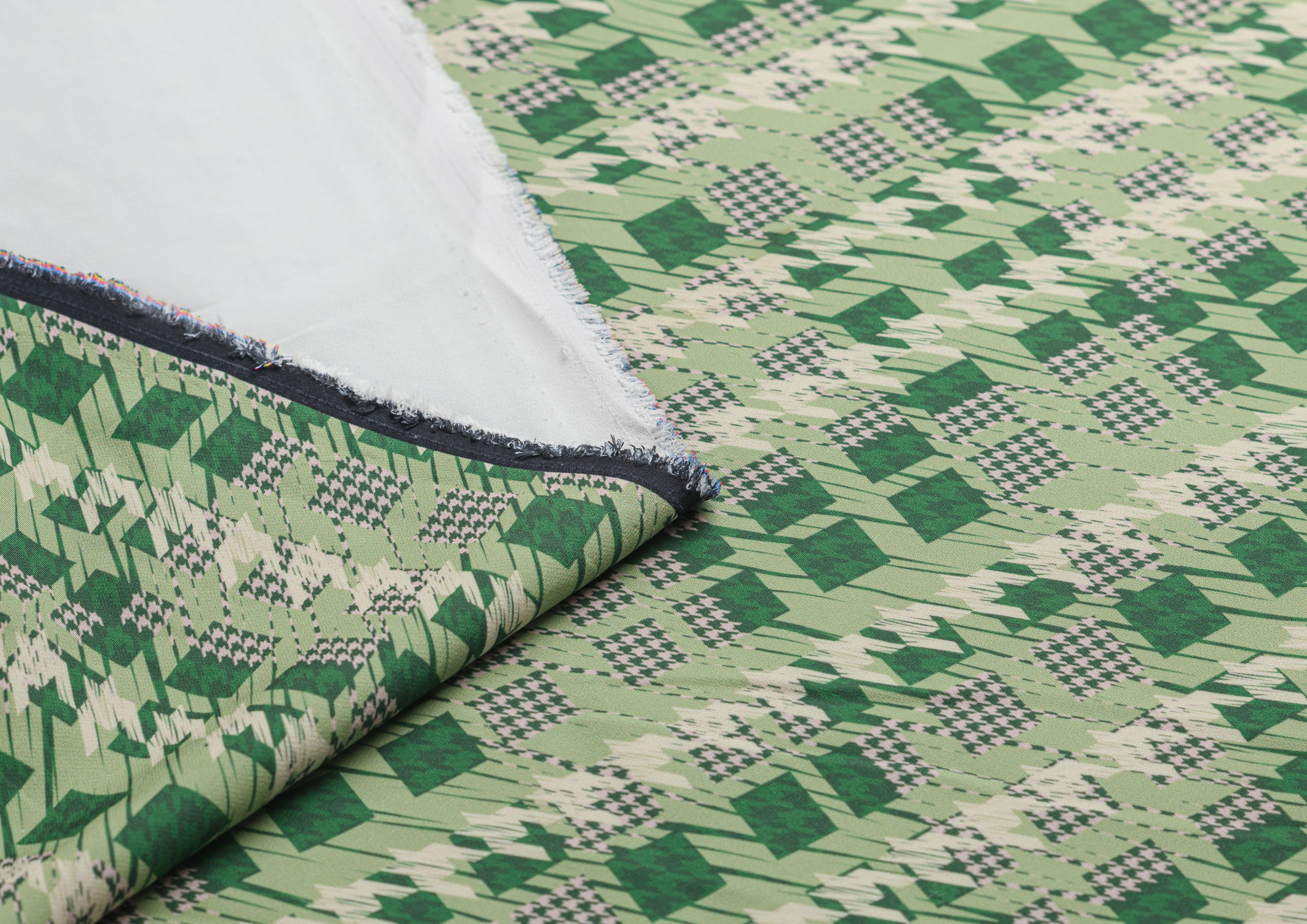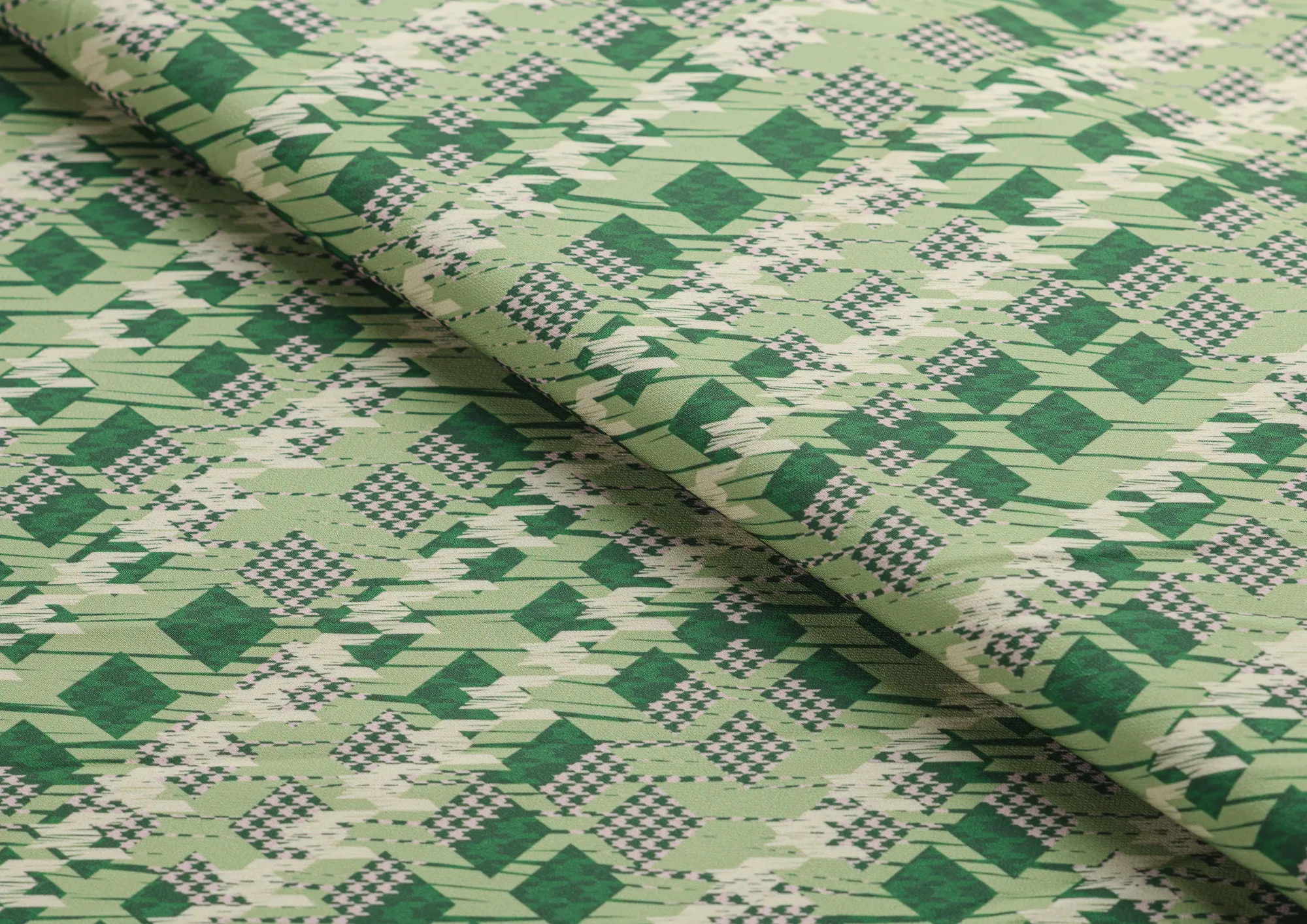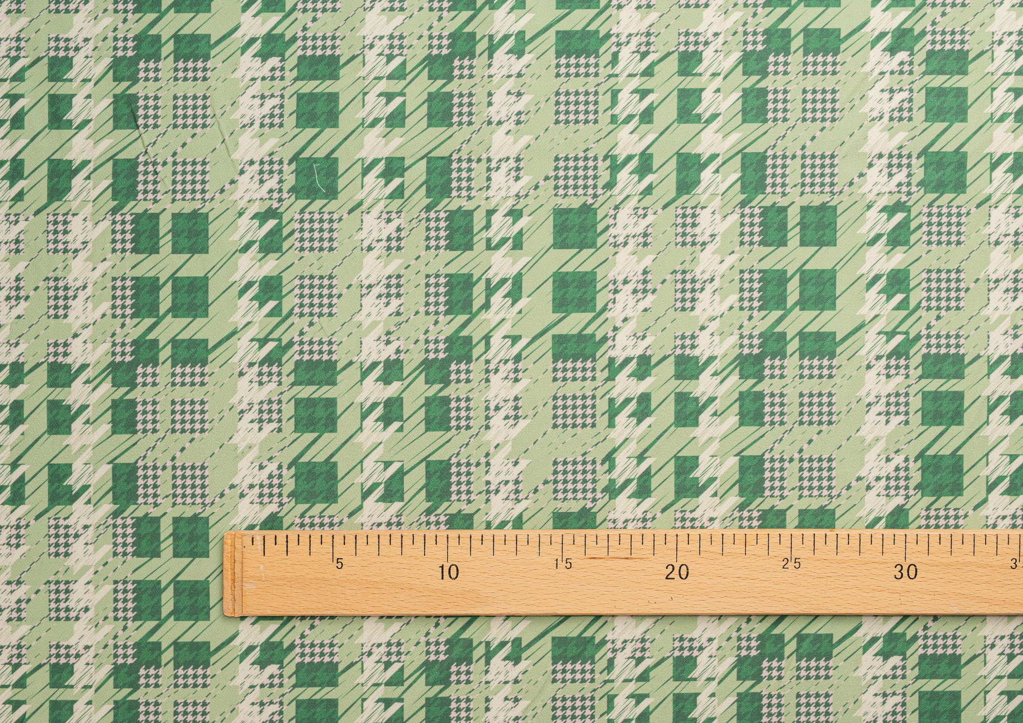 Ткань костюмная Барби Гусиная лапка принт Зеленая абстракция